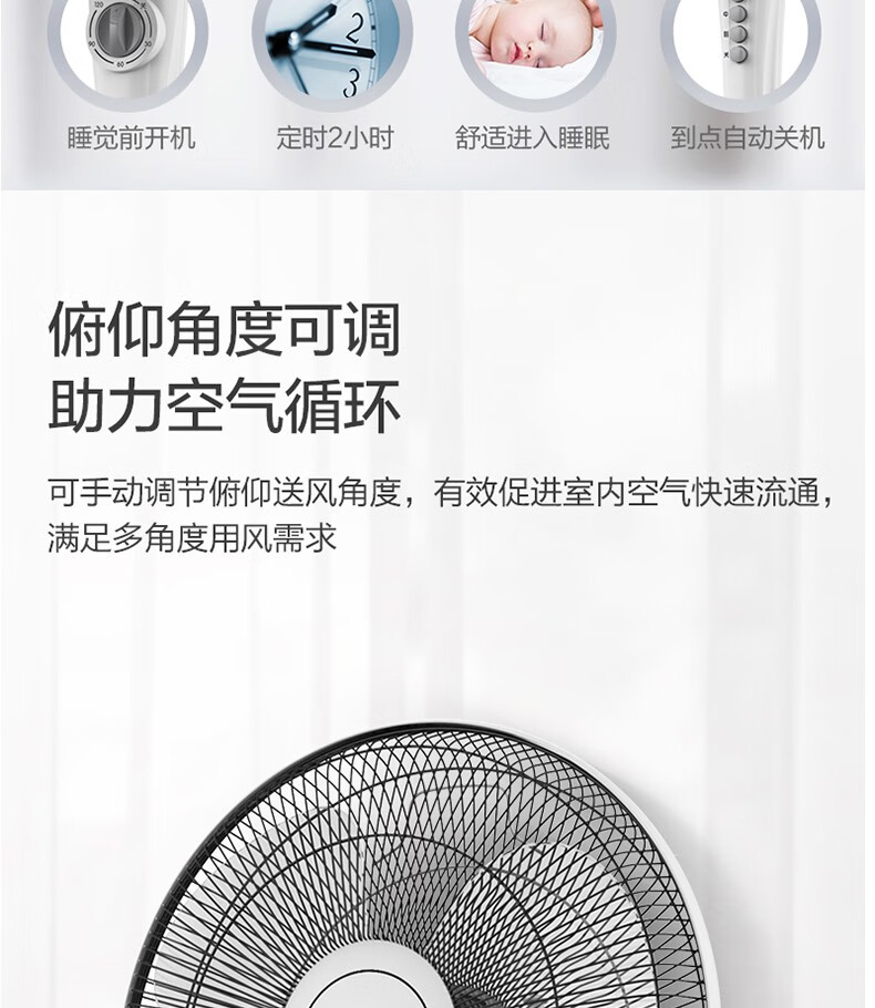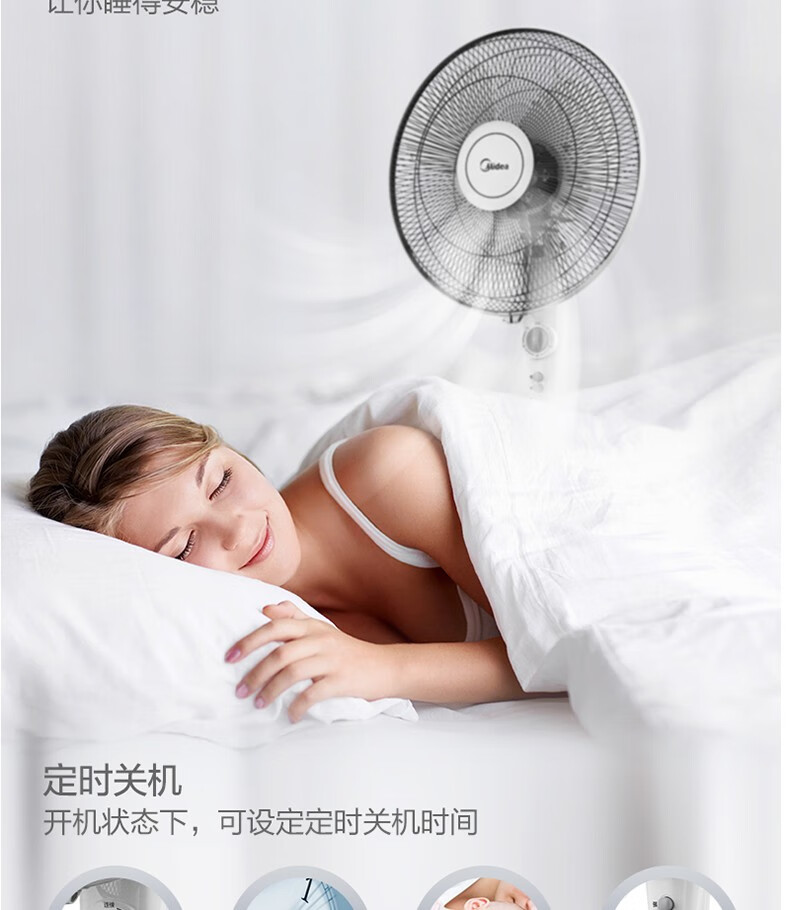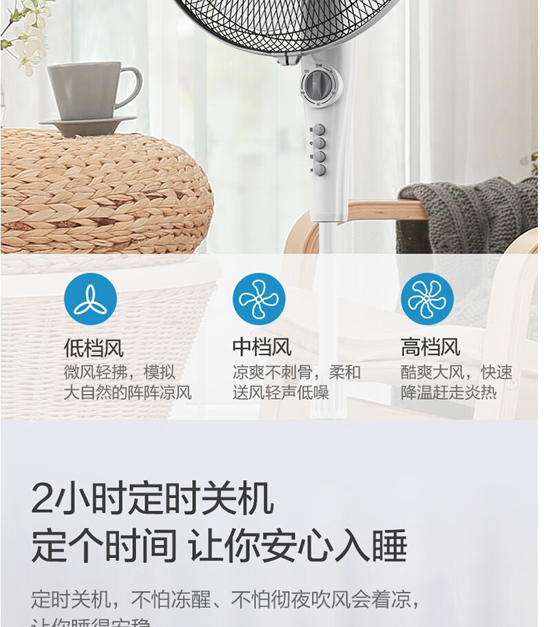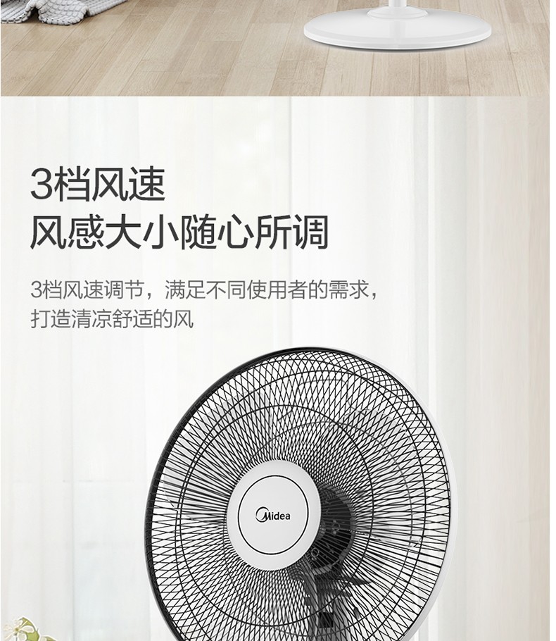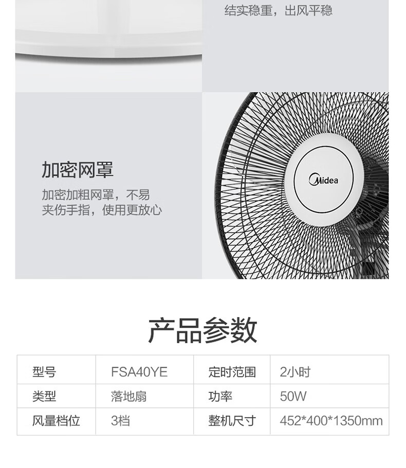 美的(Midea)FSA40YE落地扇家用三叶扇大风量电风扇电扇台立式按键旋钮宿舍客厅白色机械版 FSA40YE