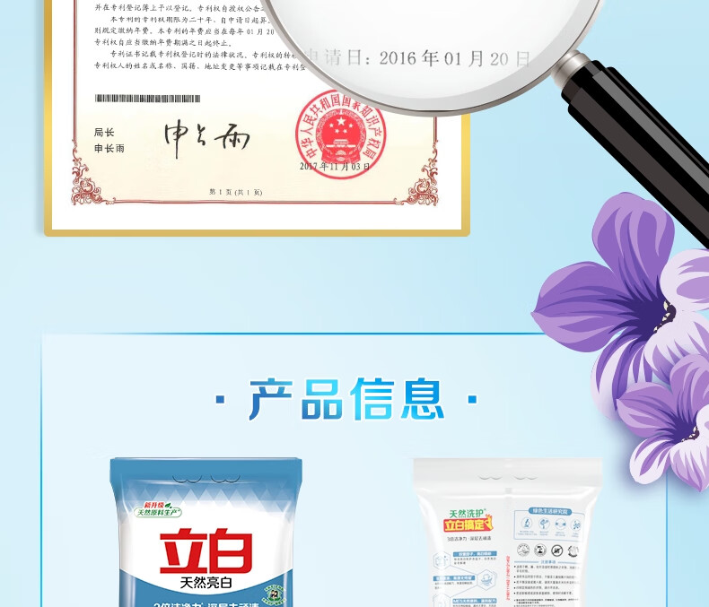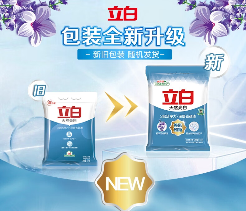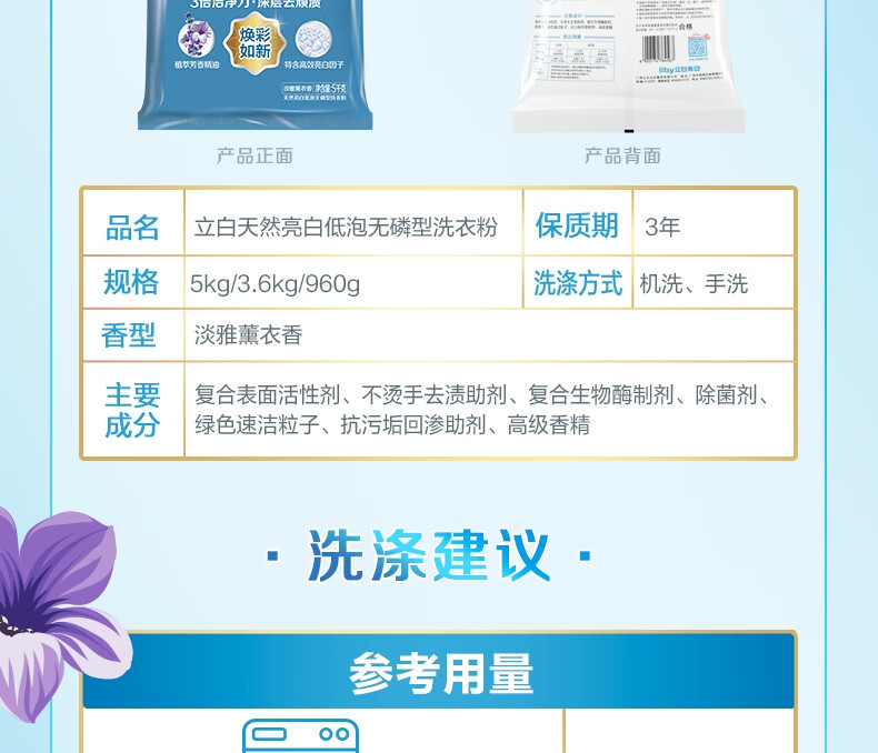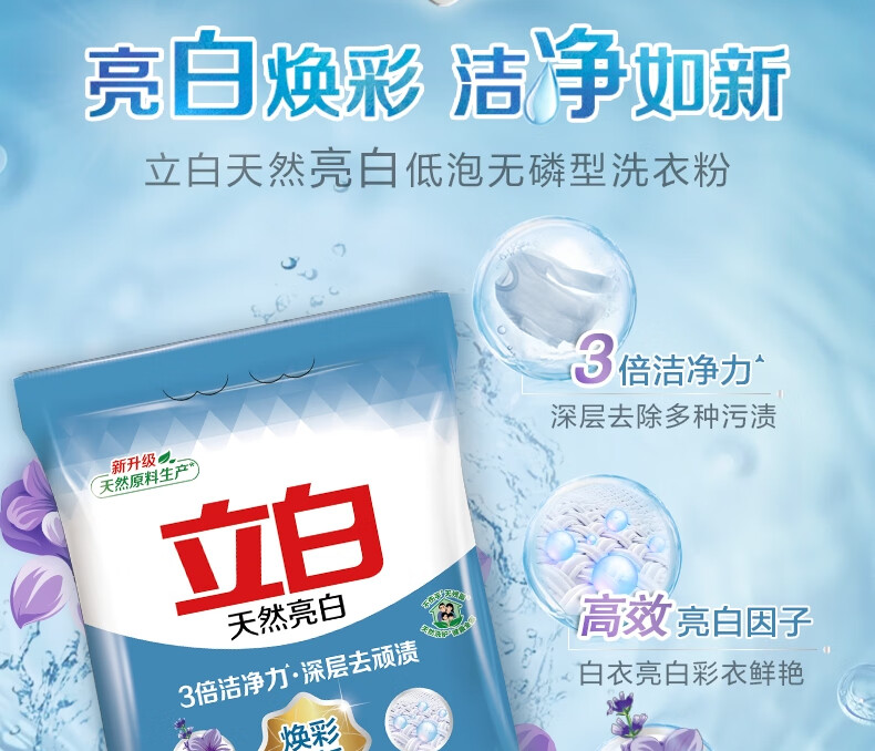 立白天然亮白无磷洗衣粉大袋5kg 家庭装 低泡易漂 工厂酒店清洁