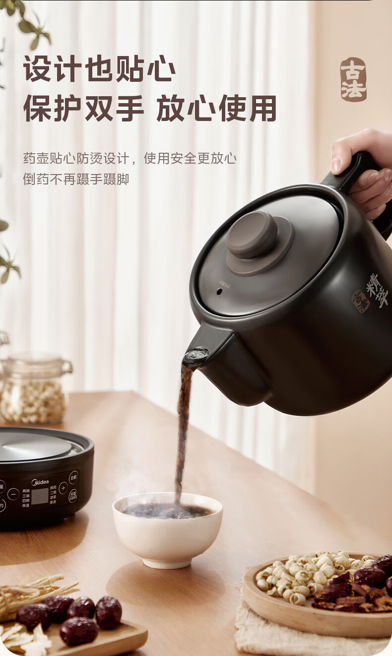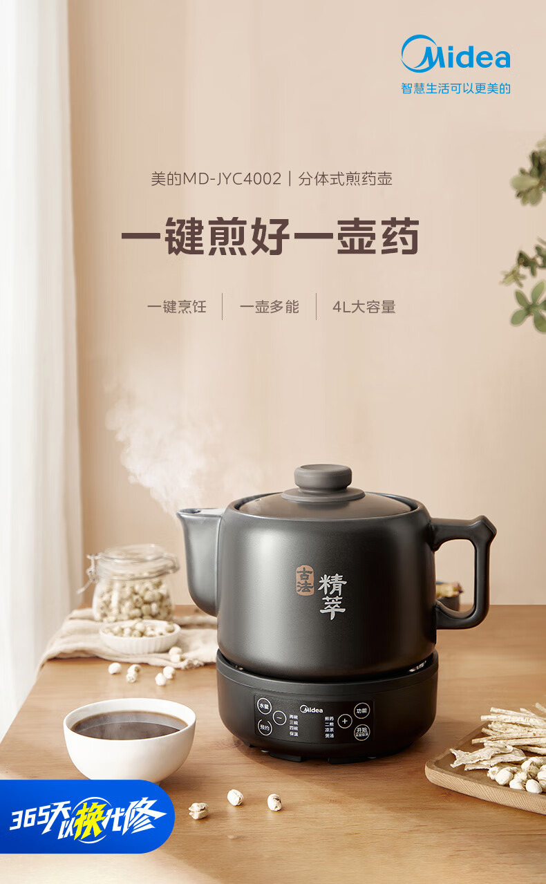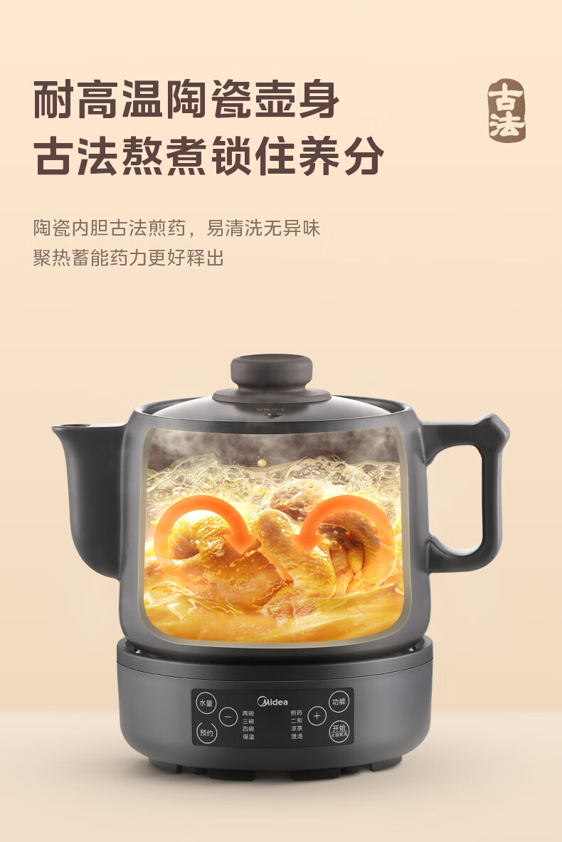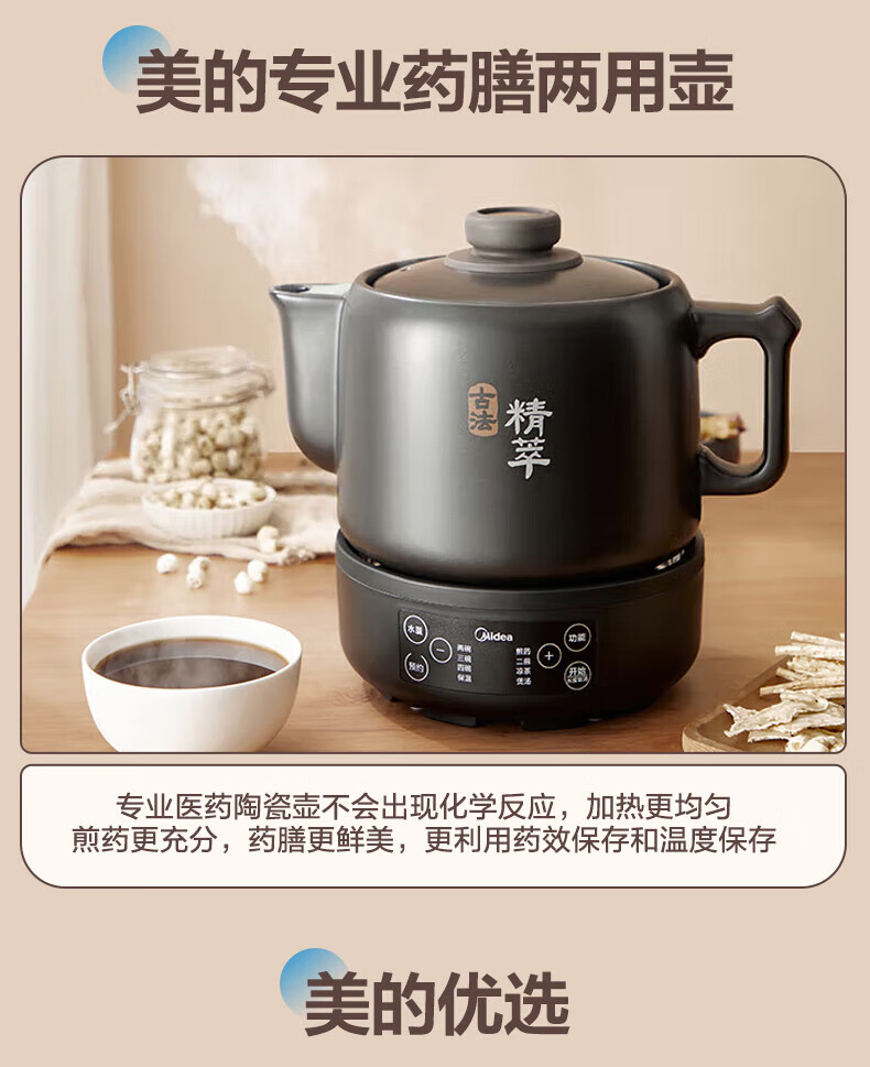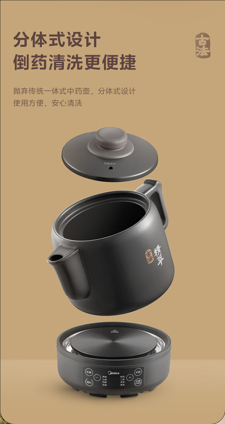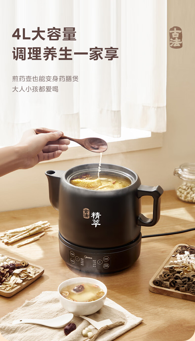 美的(Midea)煎药壶分体式4L大容量养生全自动煎药壶智能陶瓷熬中药壶熬药分体式药罐药膳中药煲锅JYC4002