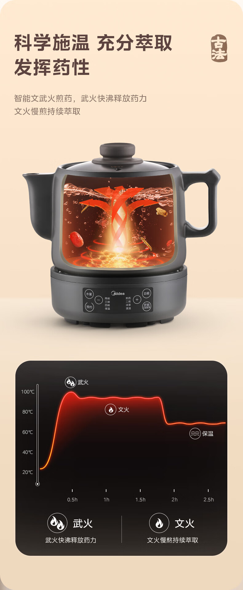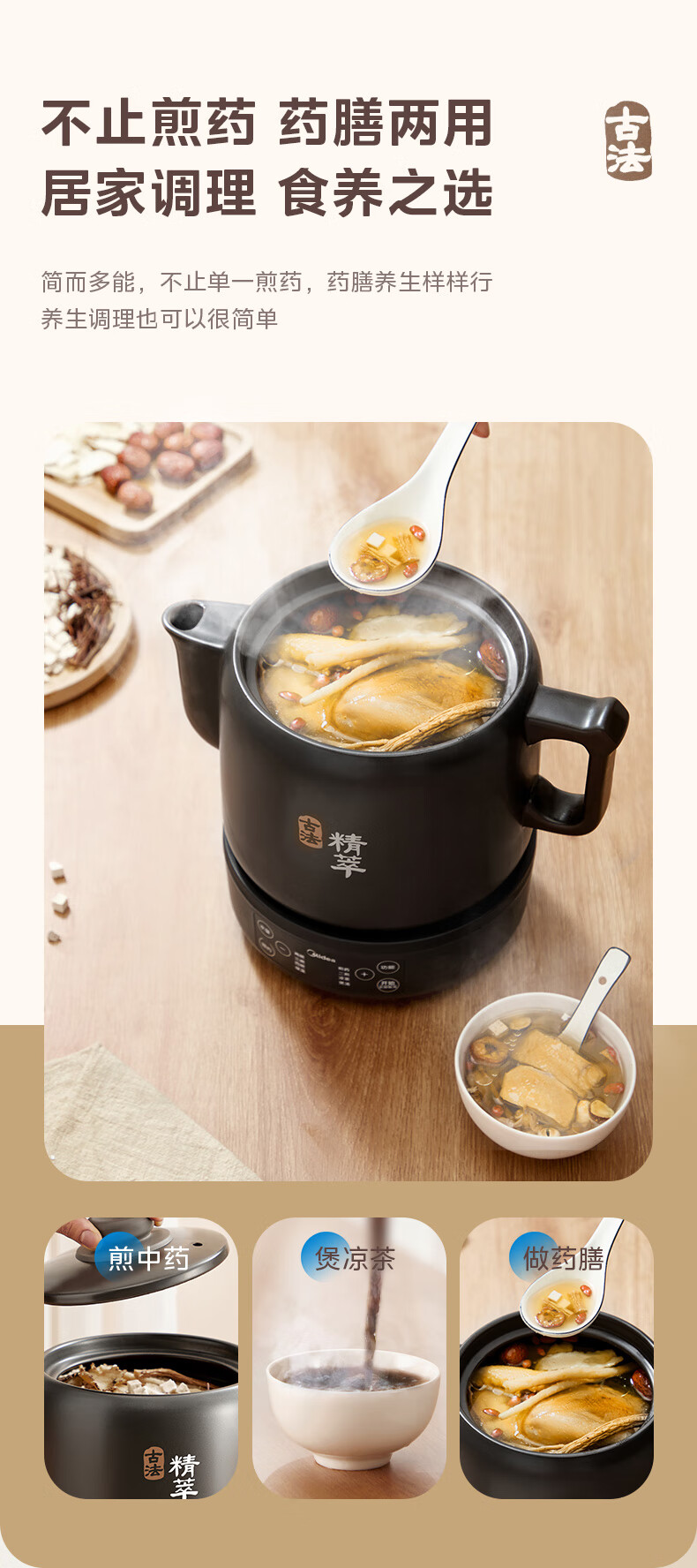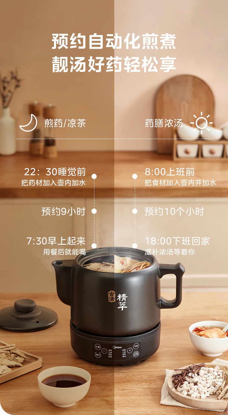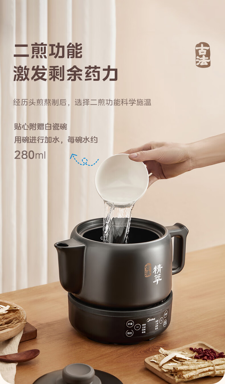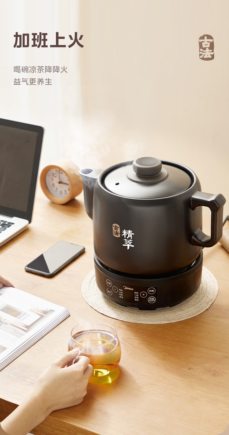 美的(Midea)煎药壶分体式4L大容量养生全自动煎药壶智能陶瓷熬中药壶熬药分体式药罐药膳中药煲锅JYC4002