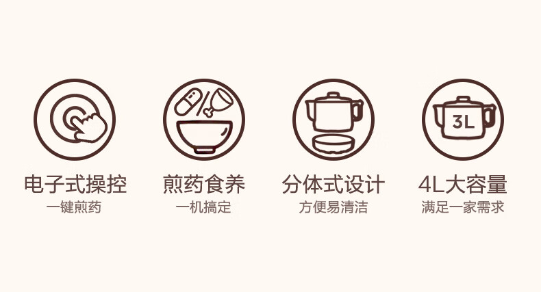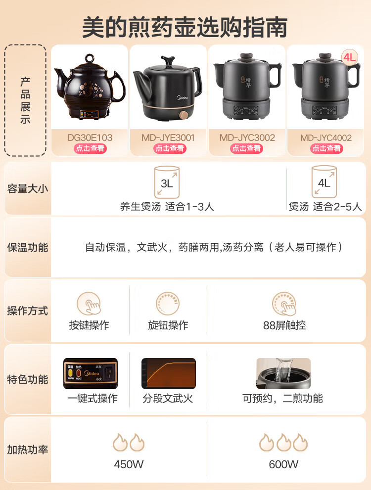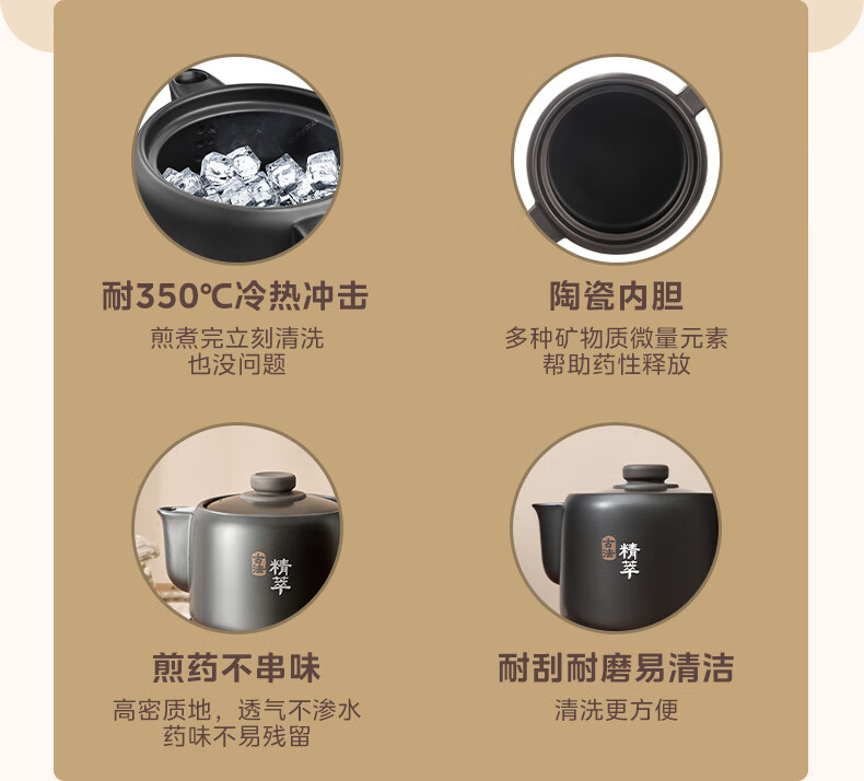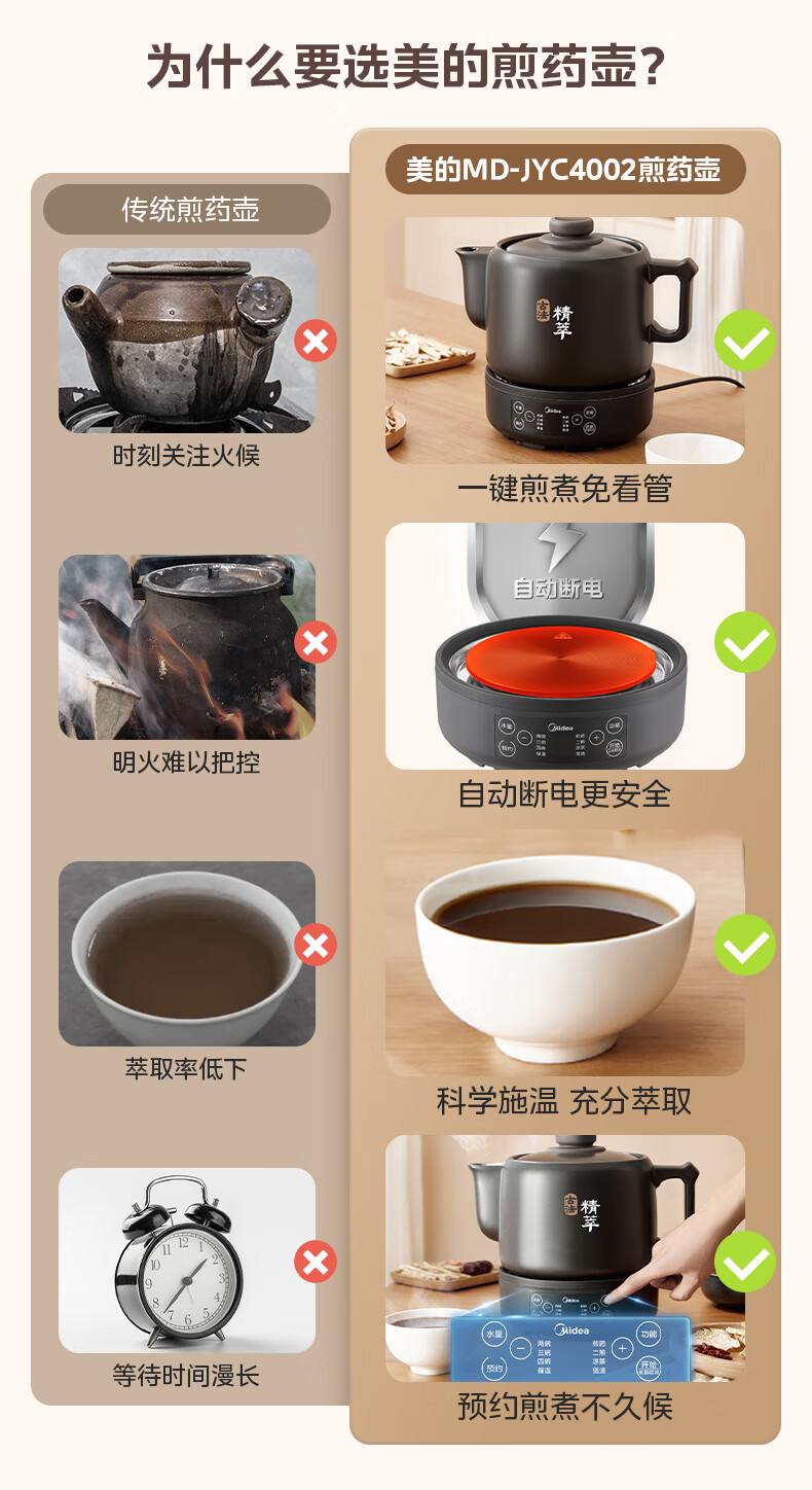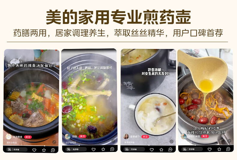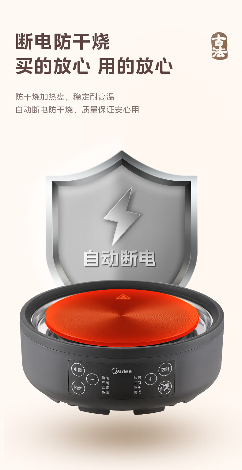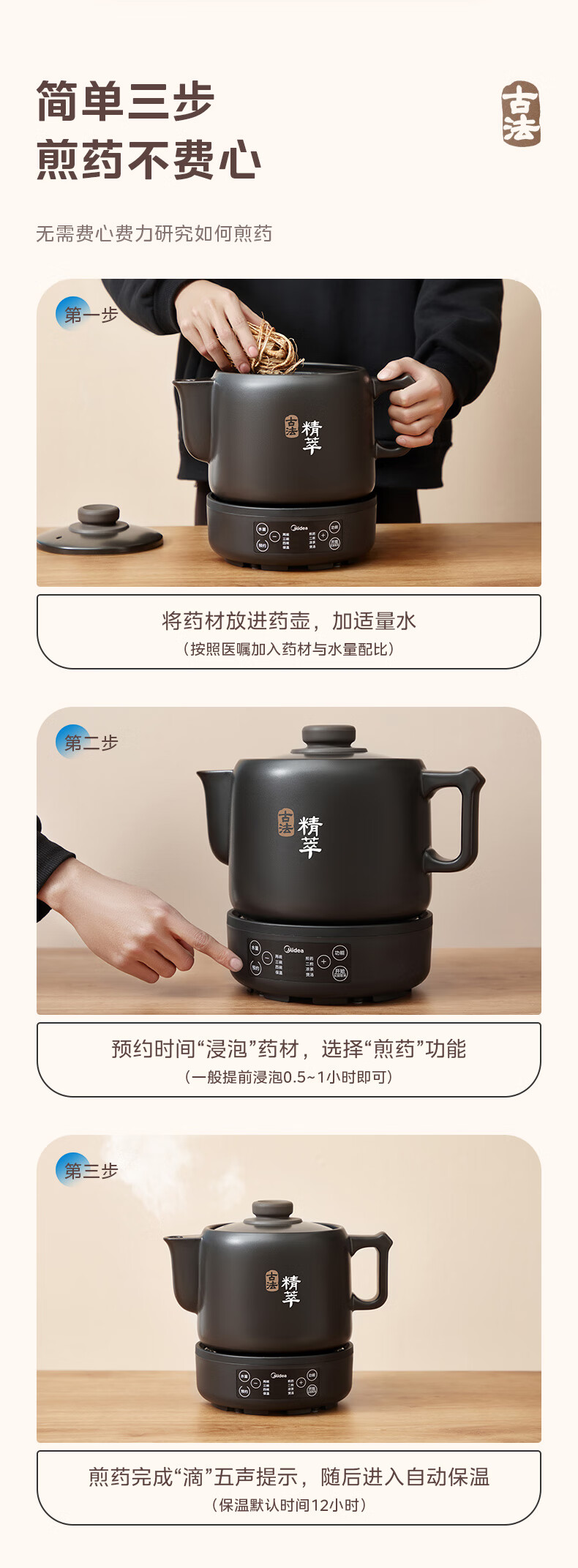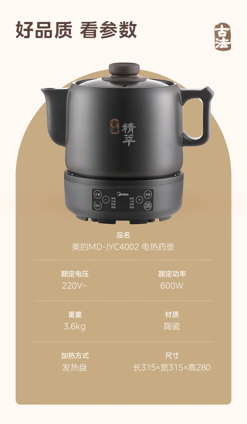 美的(Midea)煎药壶分体式4L大容量养生全自动煎药壶智能陶瓷熬中药壶熬药分体式药罐药膳中药煲锅JYC4002