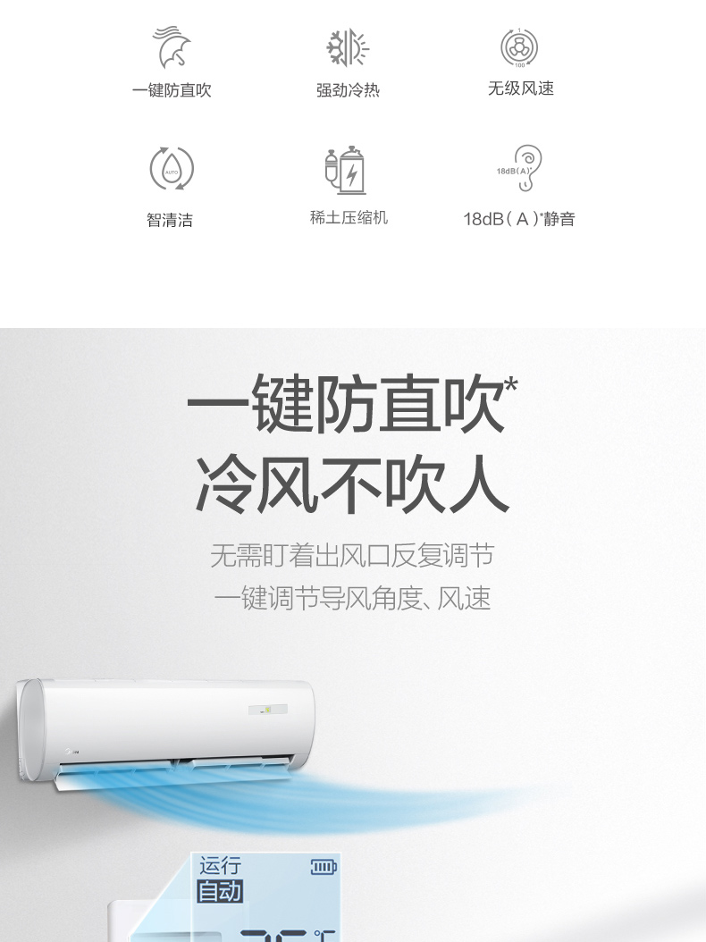 美的(Midea)新能效KFR-35GW/BDN8Y-DH400(3)A 1.5匹 智能变频冷暖 空调挂机 三级能效