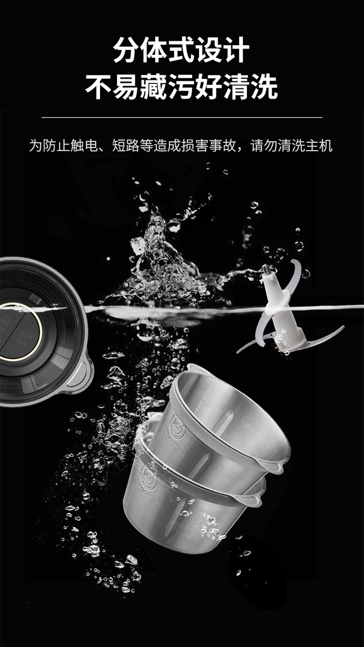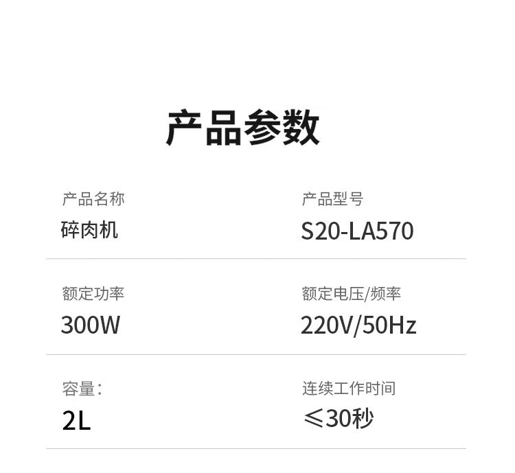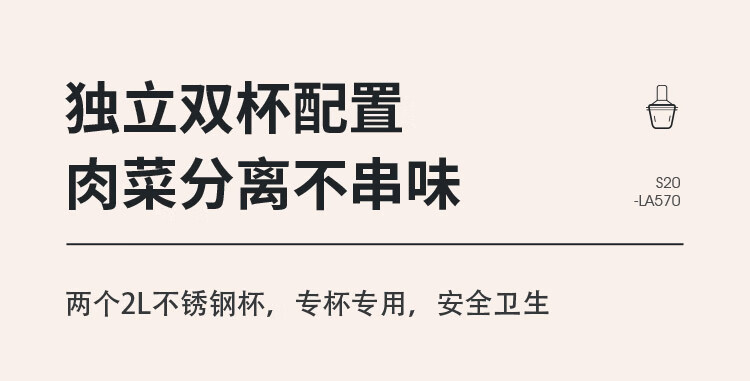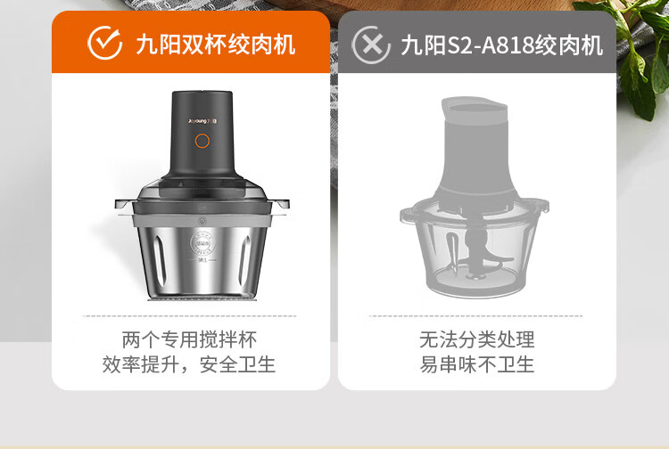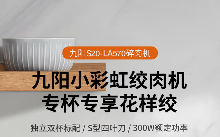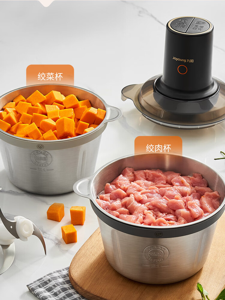 九阳(Joyoung)绞肉机家用电动多功能料理机搅拌婴儿辅食机切菜绞馅不锈钢双碗碎肉机S20-LA570