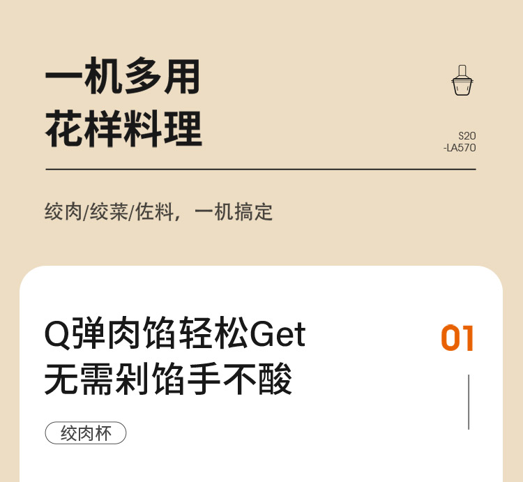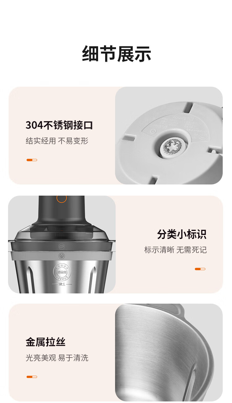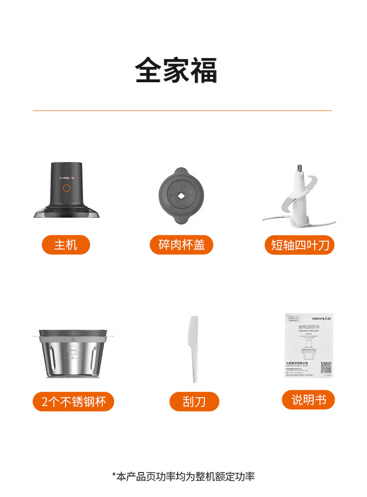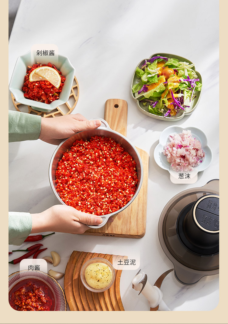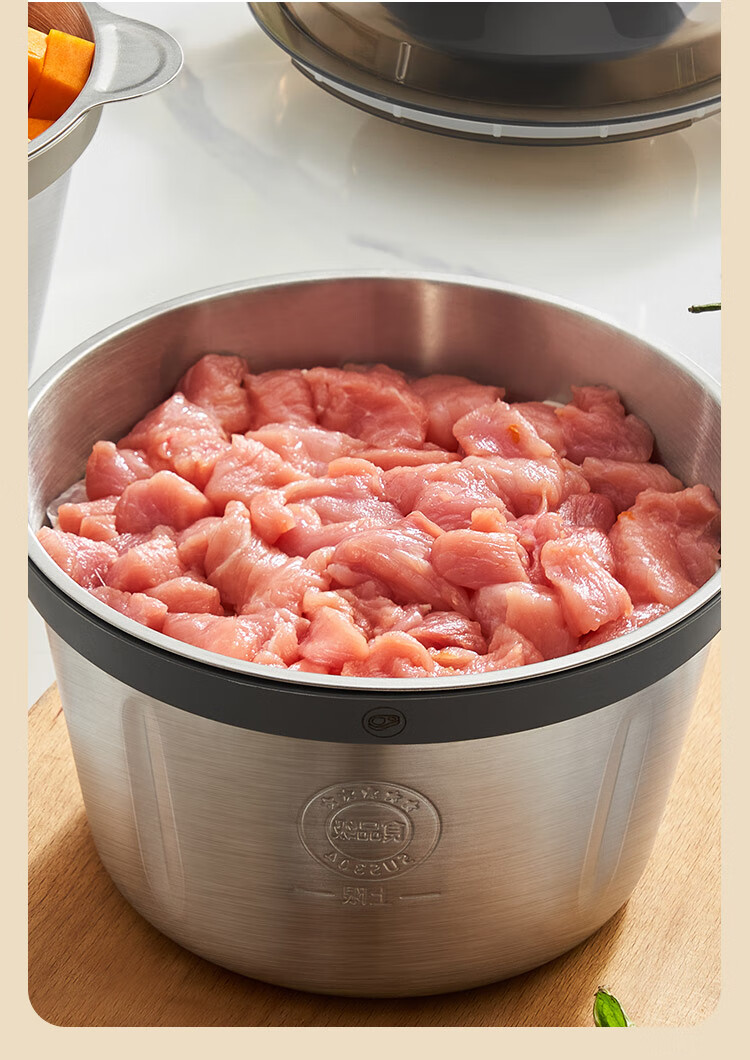 九阳(Joyoung)绞肉机家用电动多功能料理机搅拌婴儿辅食机切菜绞馅不锈钢双碗碎肉机S20-LA570
