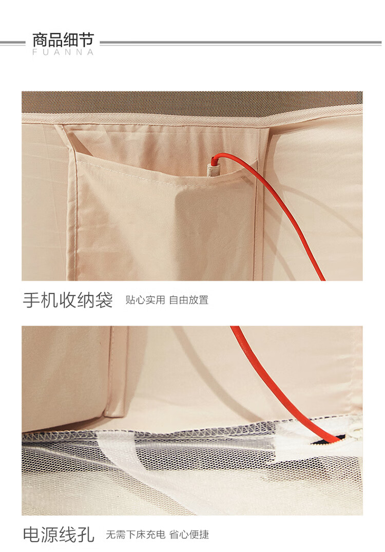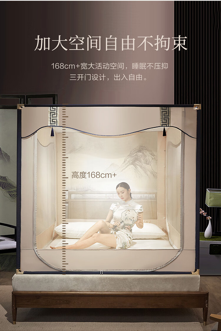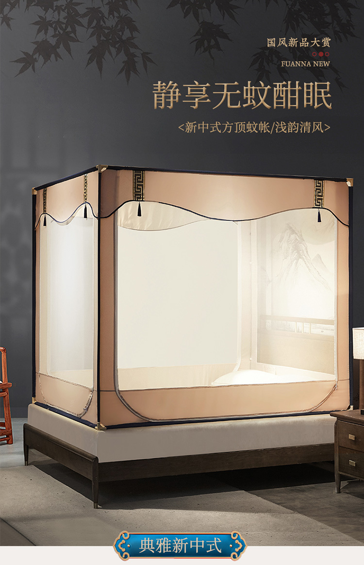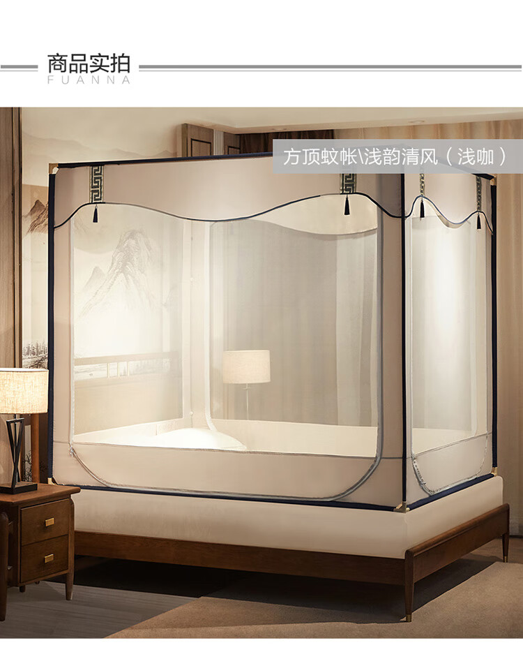 富安娜蚊帐方顶蚊帐家用1.8米床加密防蚊坐床式婴幼儿防摔全包有底蚊帐