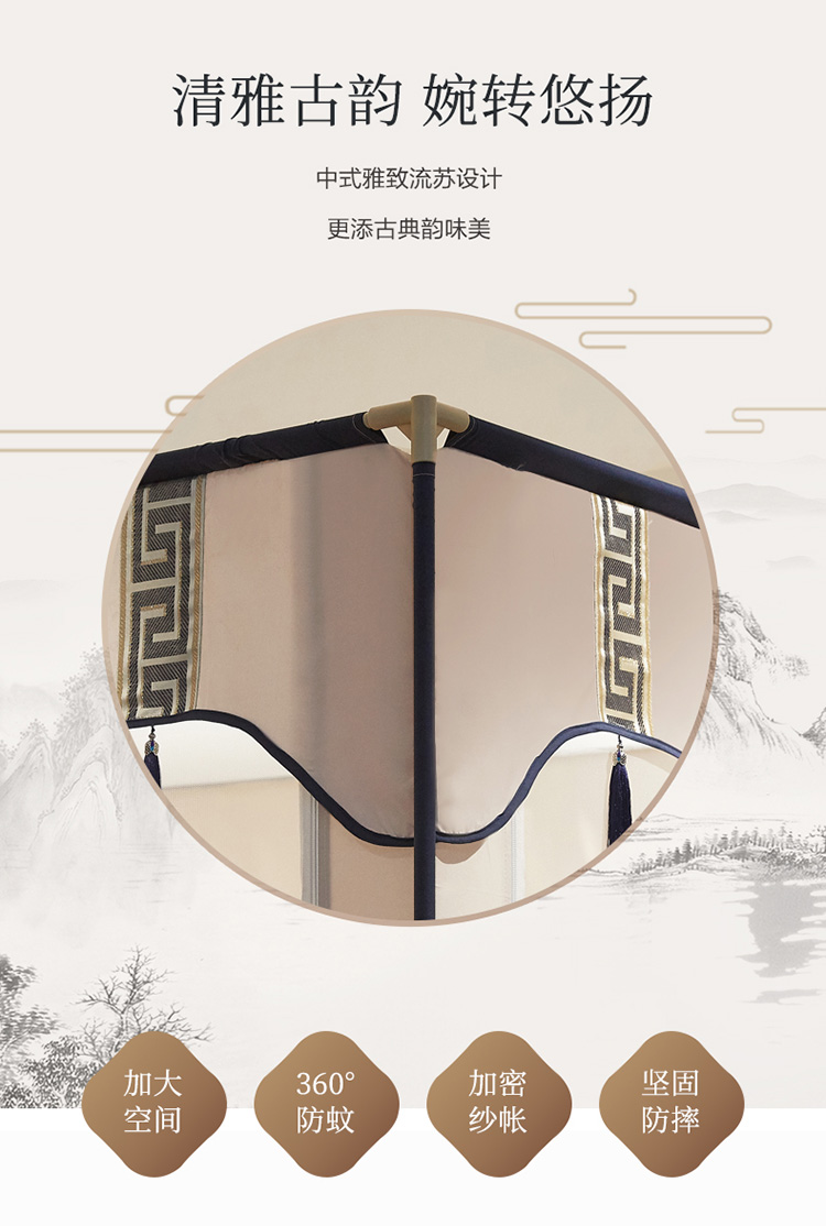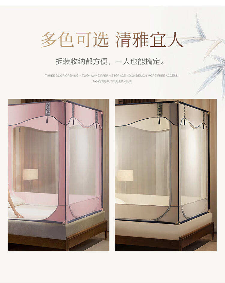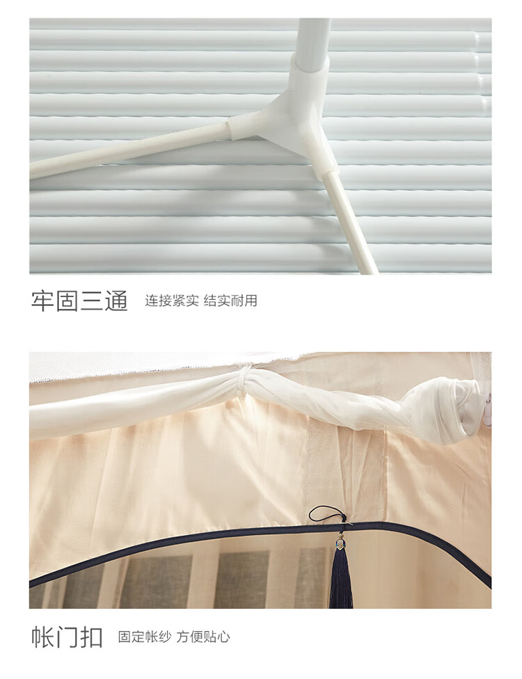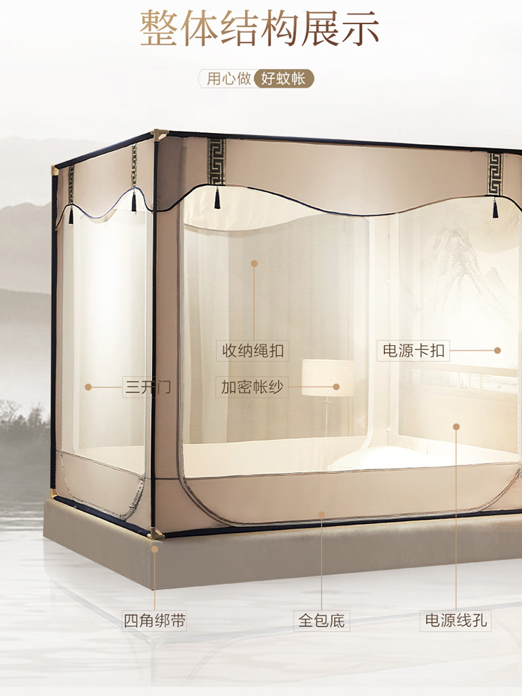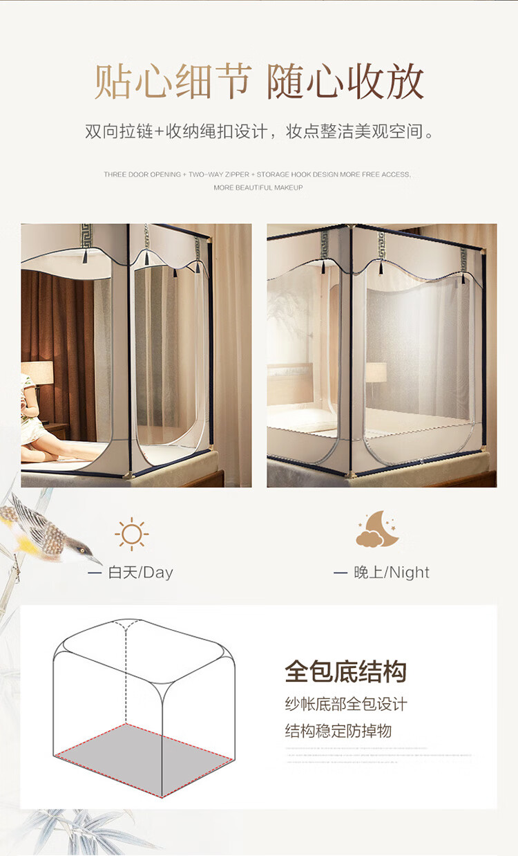 富安娜蚊帐方顶蚊帐家用1.8米床加密防蚊坐床式婴幼儿防摔全包有底蚊帐