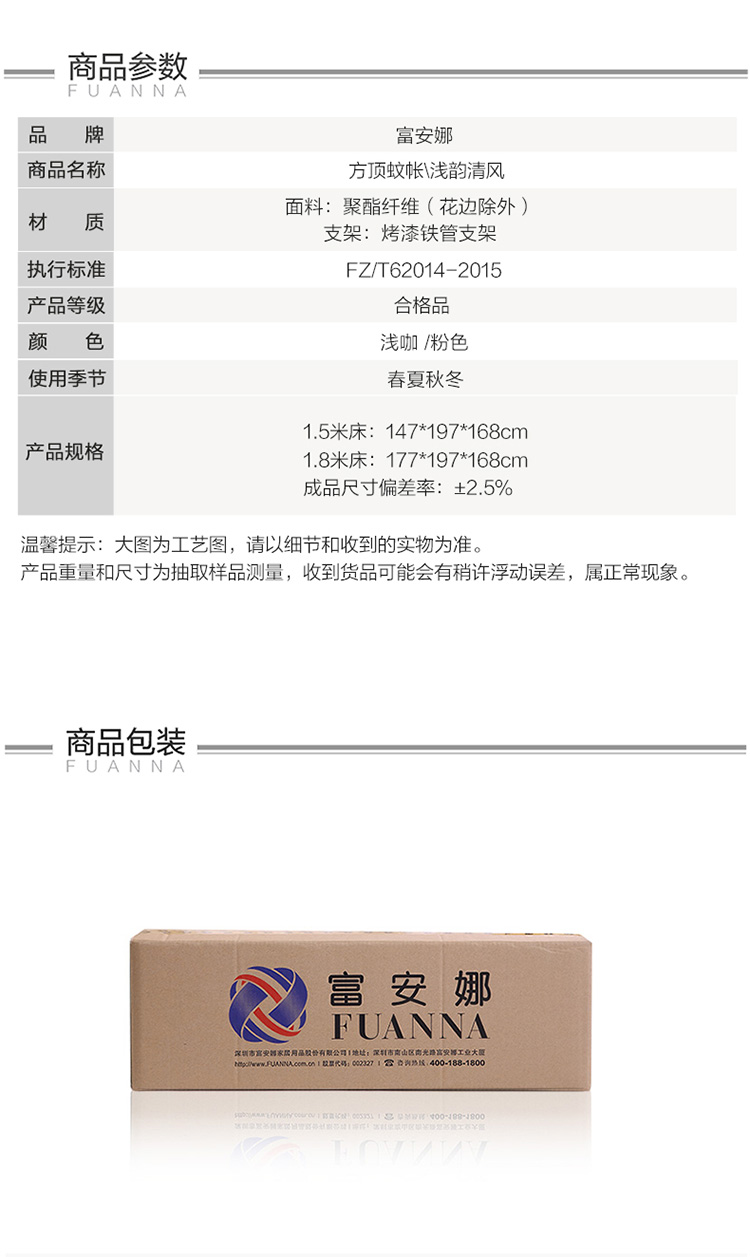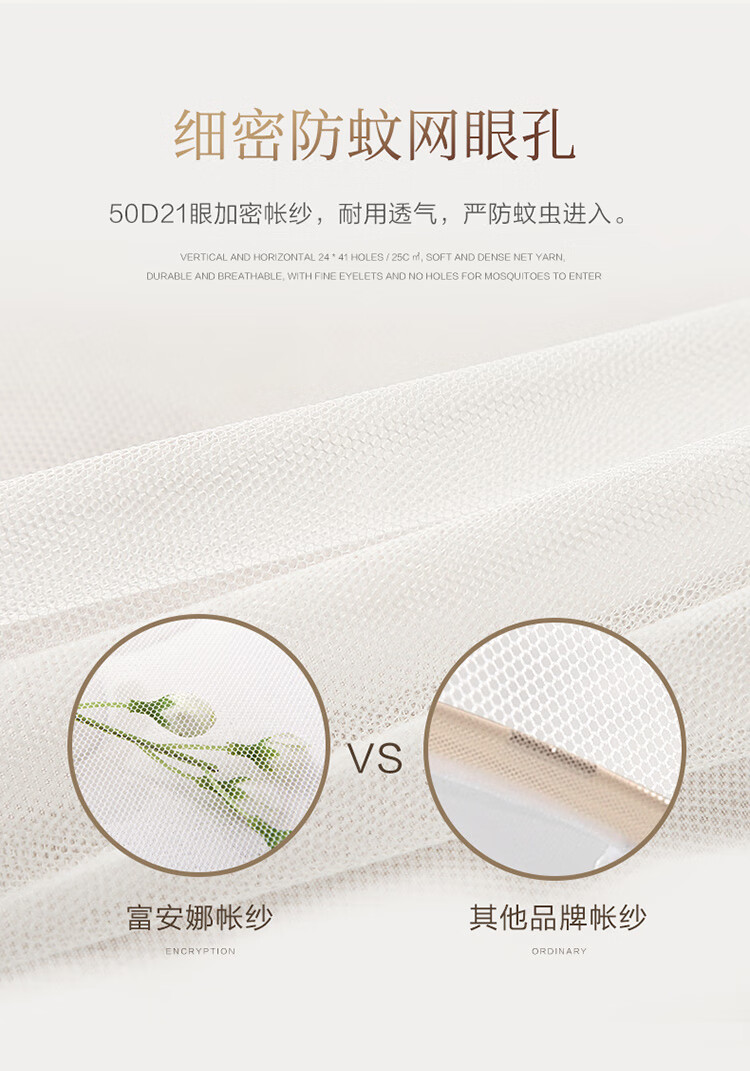 富安娜蚊帐方顶蚊帐家用1.8米...