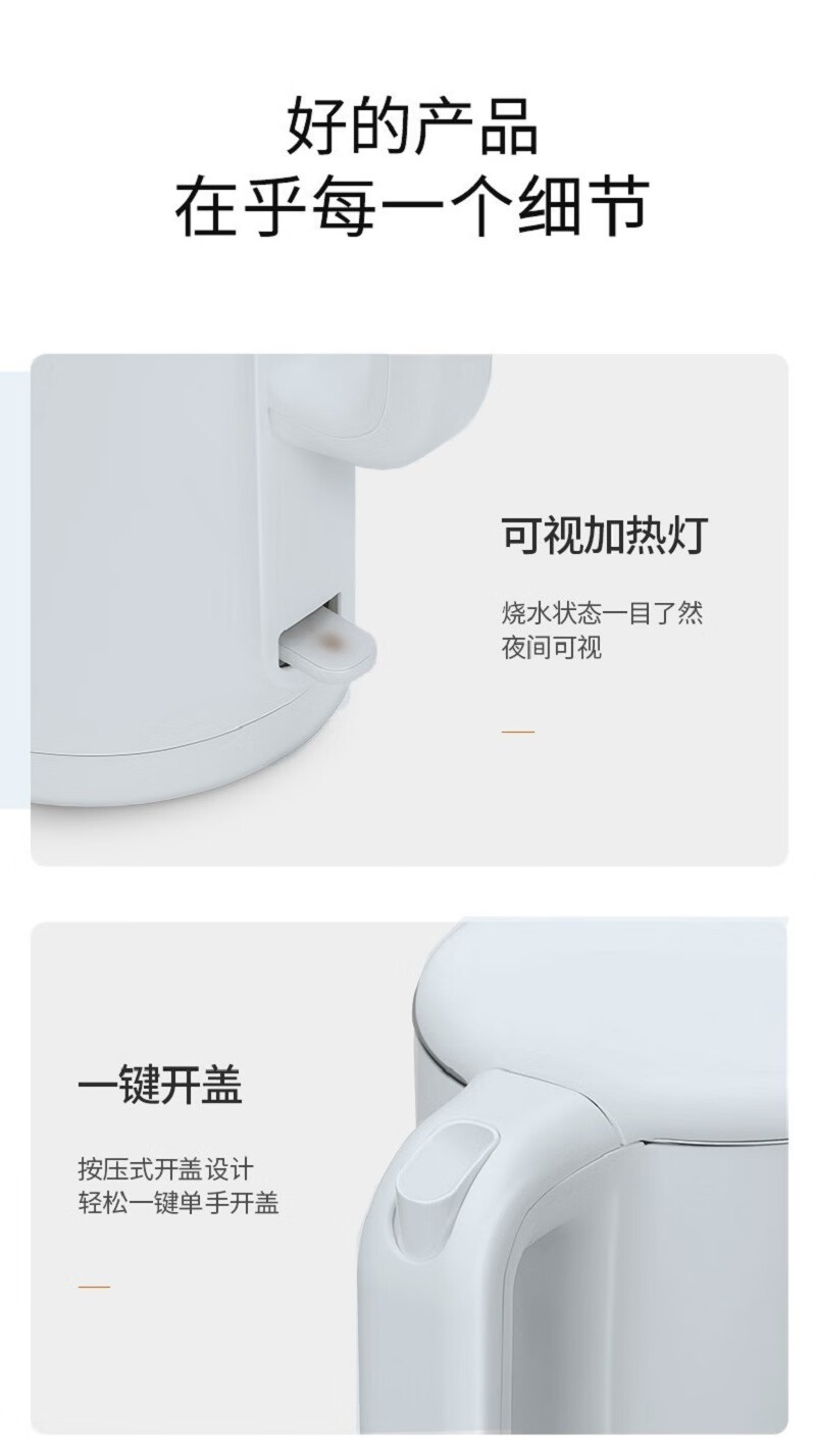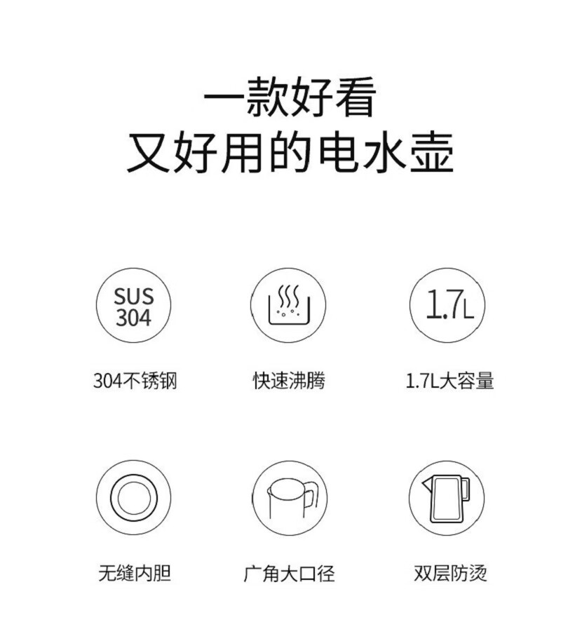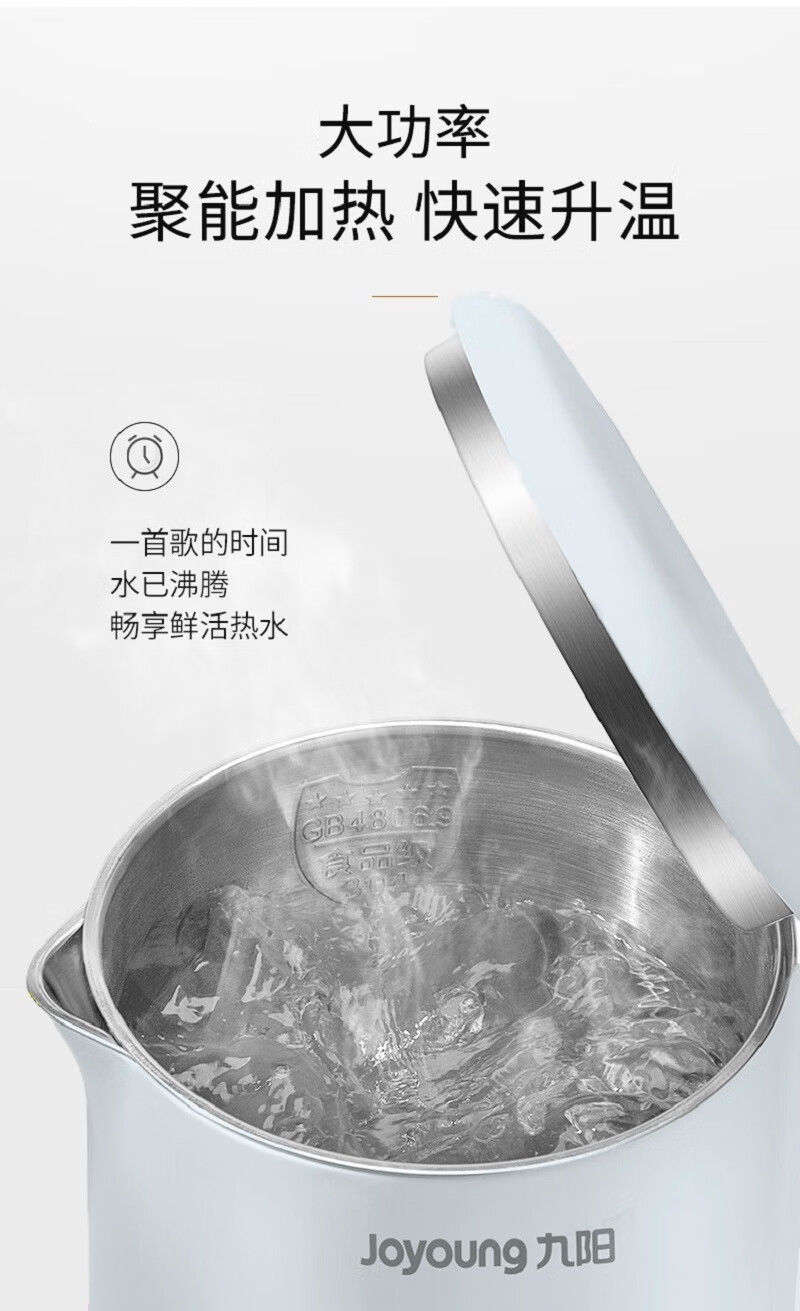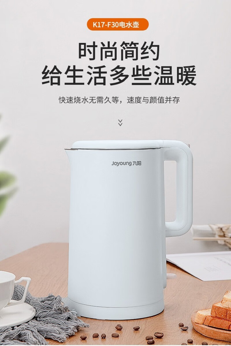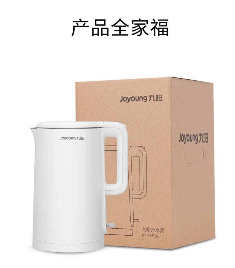 九阳(Joyoung) 电水壶1.7L大容量家用无缝内胆食品级304不锈钢内胆开水煲 K17-F30