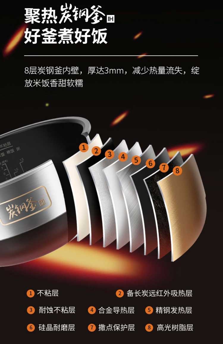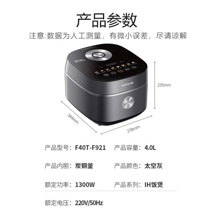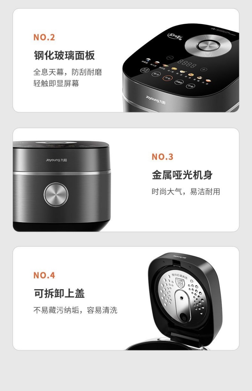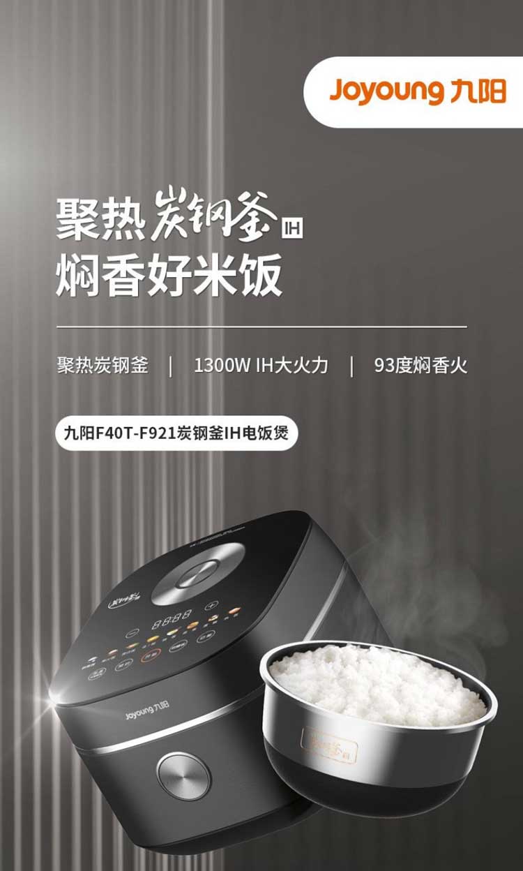 九阳(Joyoung)电饭煲家用厨房智能可预约定时全息天幕彩屏操控8层厚釜4升F40T-F921支持一件代发