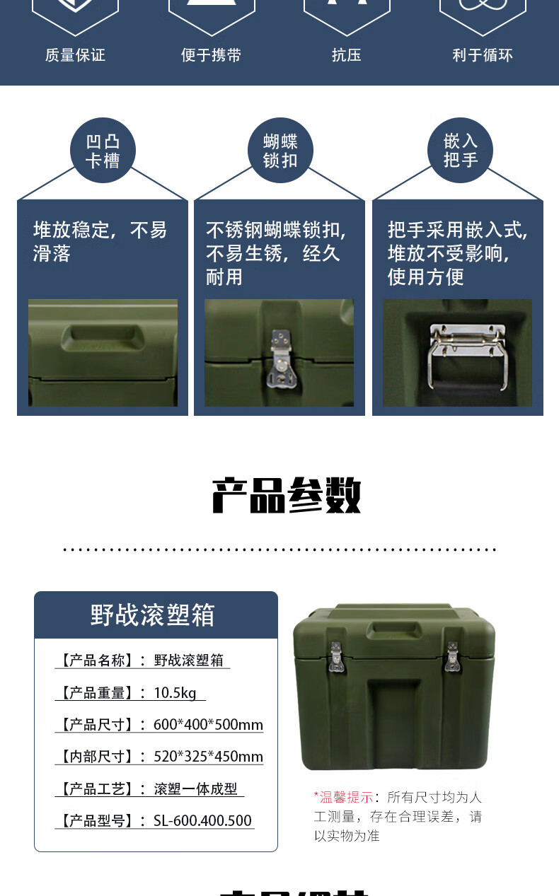 荣兵滚塑箱空投箱物资箱指挥器材箱给养单元箱野战野营军绿色多功能器材装备600mm400mm500mm