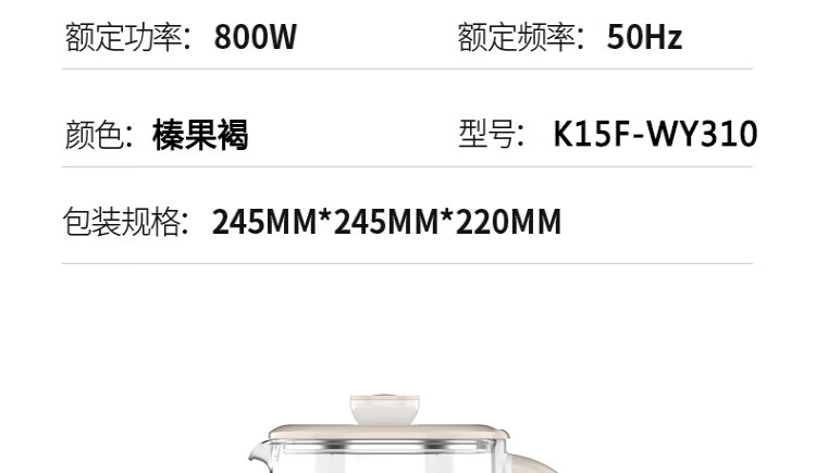 九阳(Joyoung)养生壶家用多功能全自动燕窝冲奶米粥花果汤智能可预约煮茶壶1.5L K15F-WY310支持一件代发