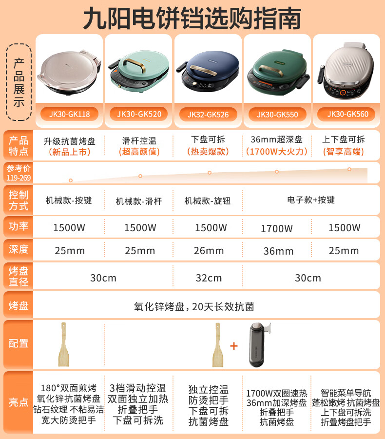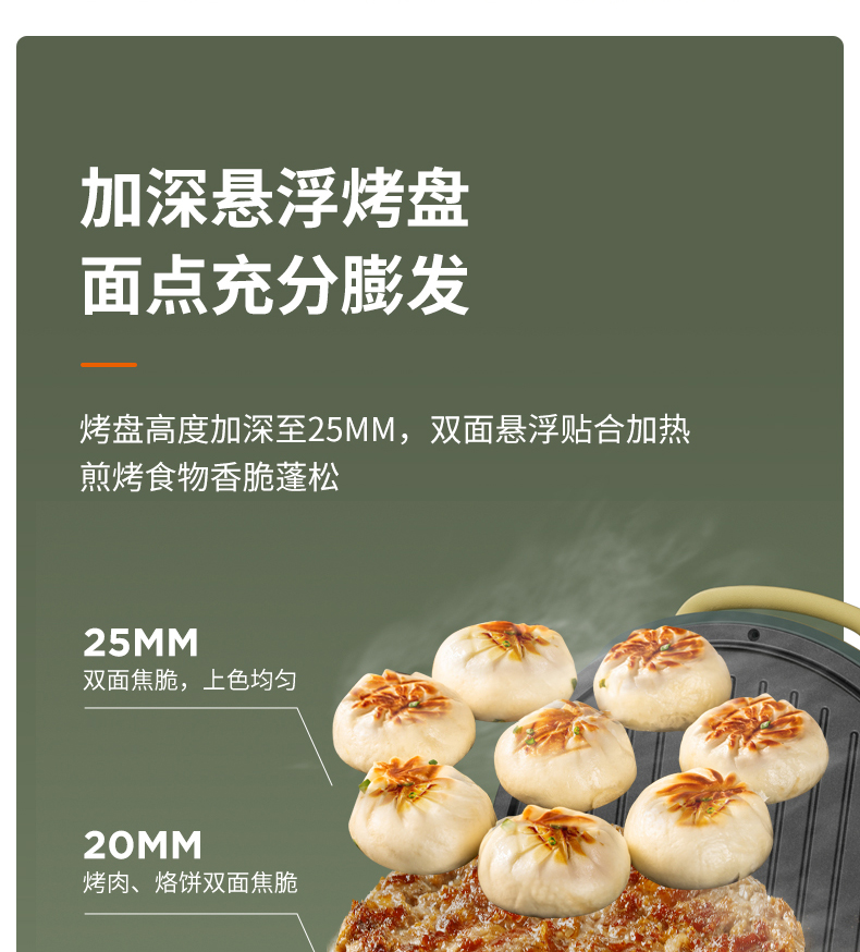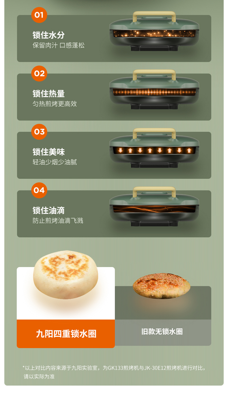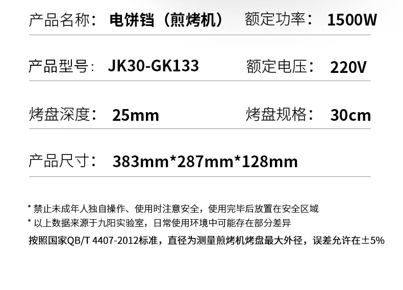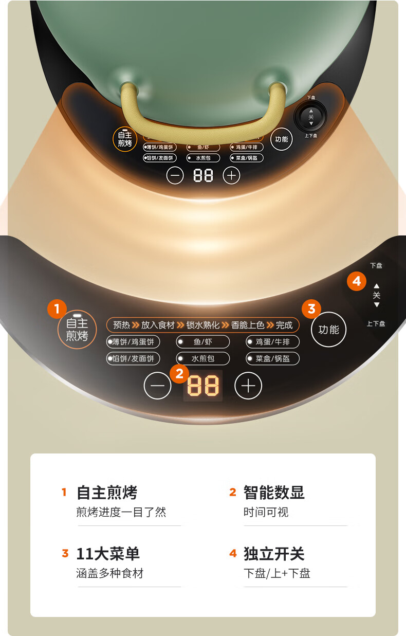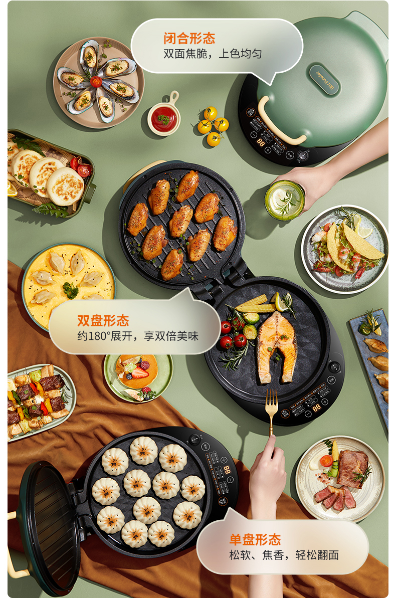 九阳(Joyoung)家用电饼铛 早餐机 大火力煎烤机 11大菜单功能 悬浮设计 JK30-GK133