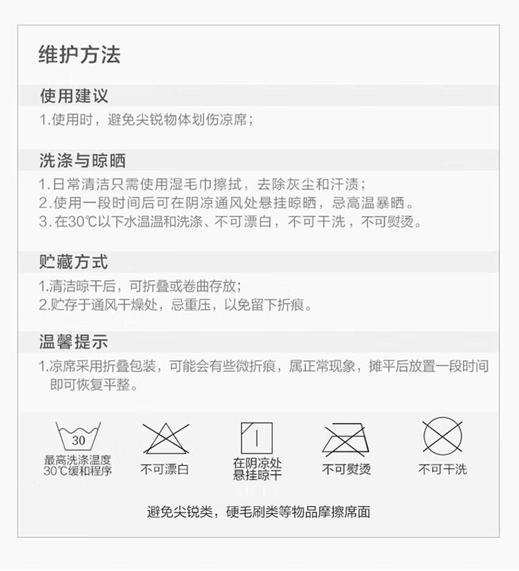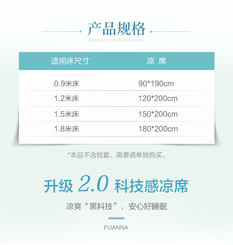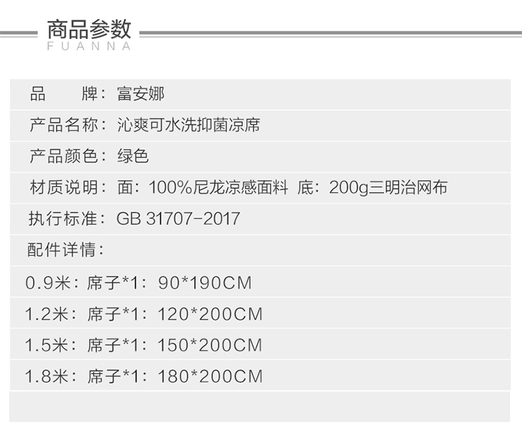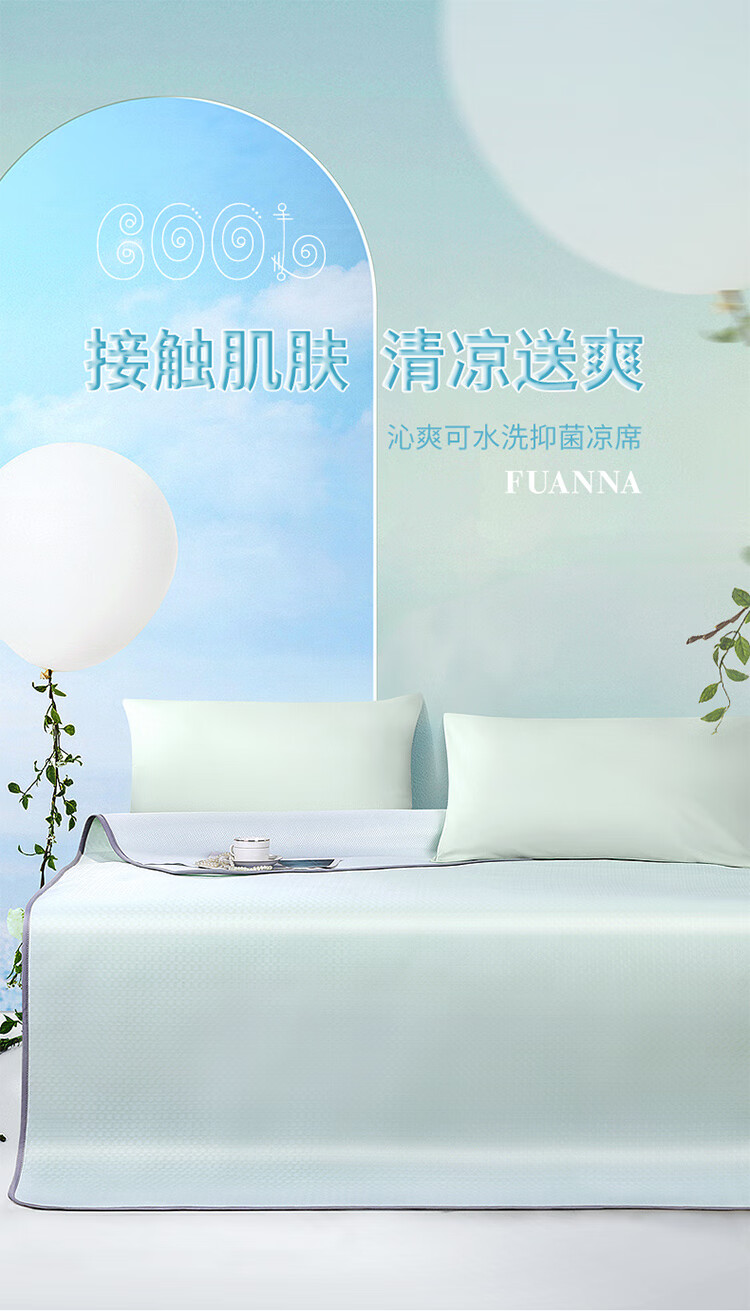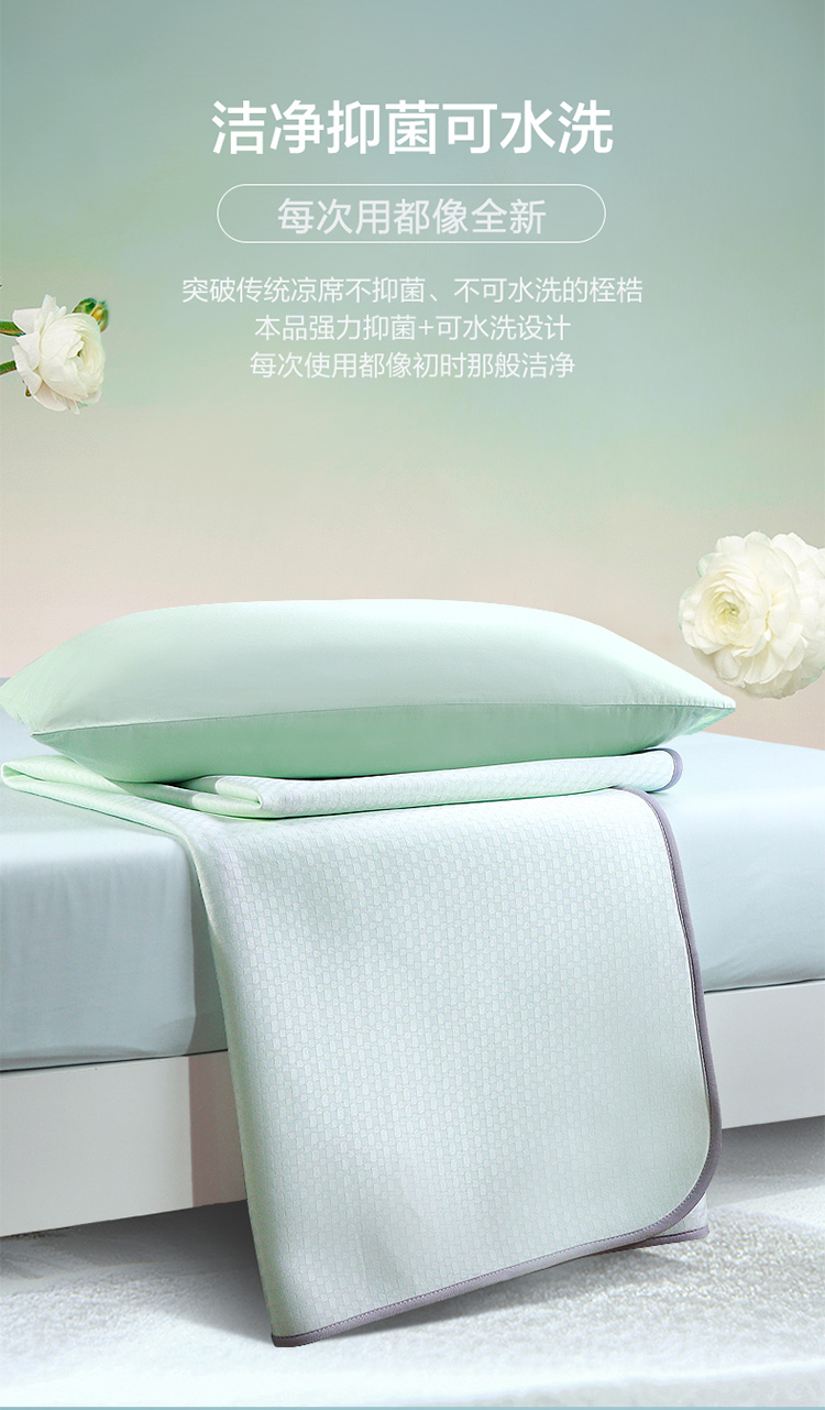 富安娜家纺凉席可水洗升级抑菌凉感席子夏季空调席 单件软席子1.5米床