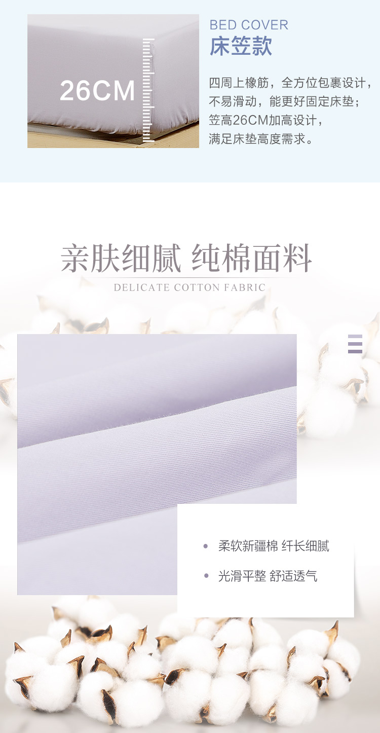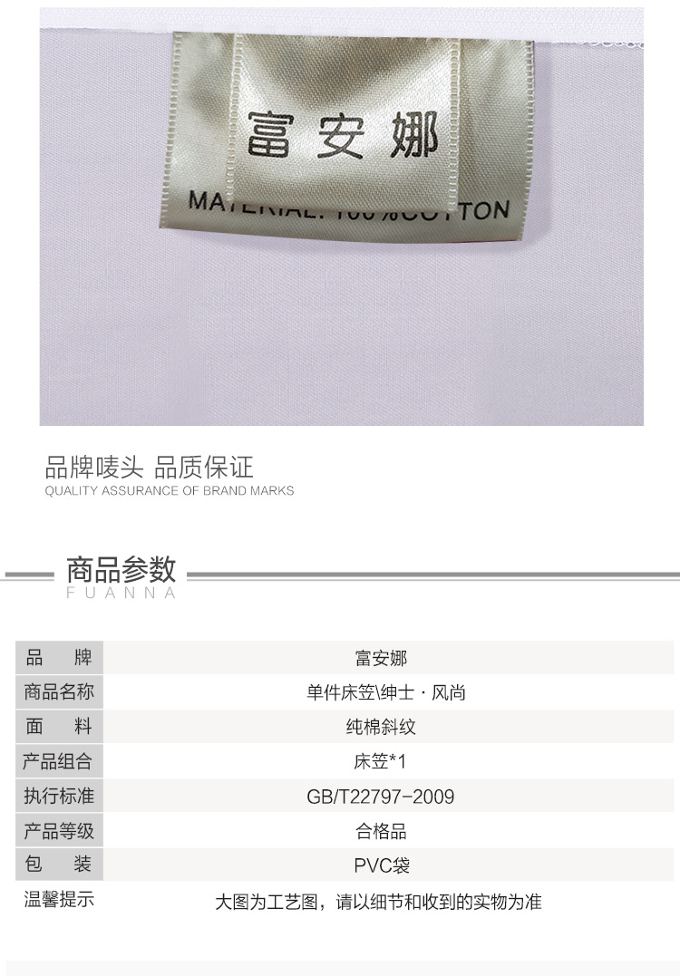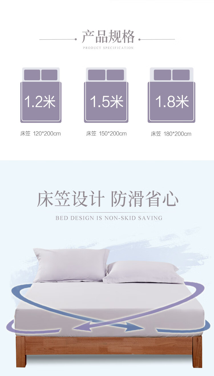富安娜家纺纯棉可水洗床笠单件防滑防脏床罩席梦思床垫保护罩1.5米床