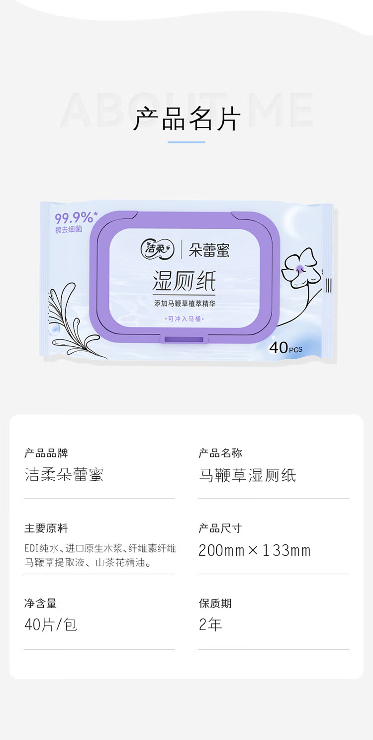 洁柔湿厕纸 朵蕾蜜 99.9%除菌40片*5包 富含马鞭草精华 私处卫生清洁