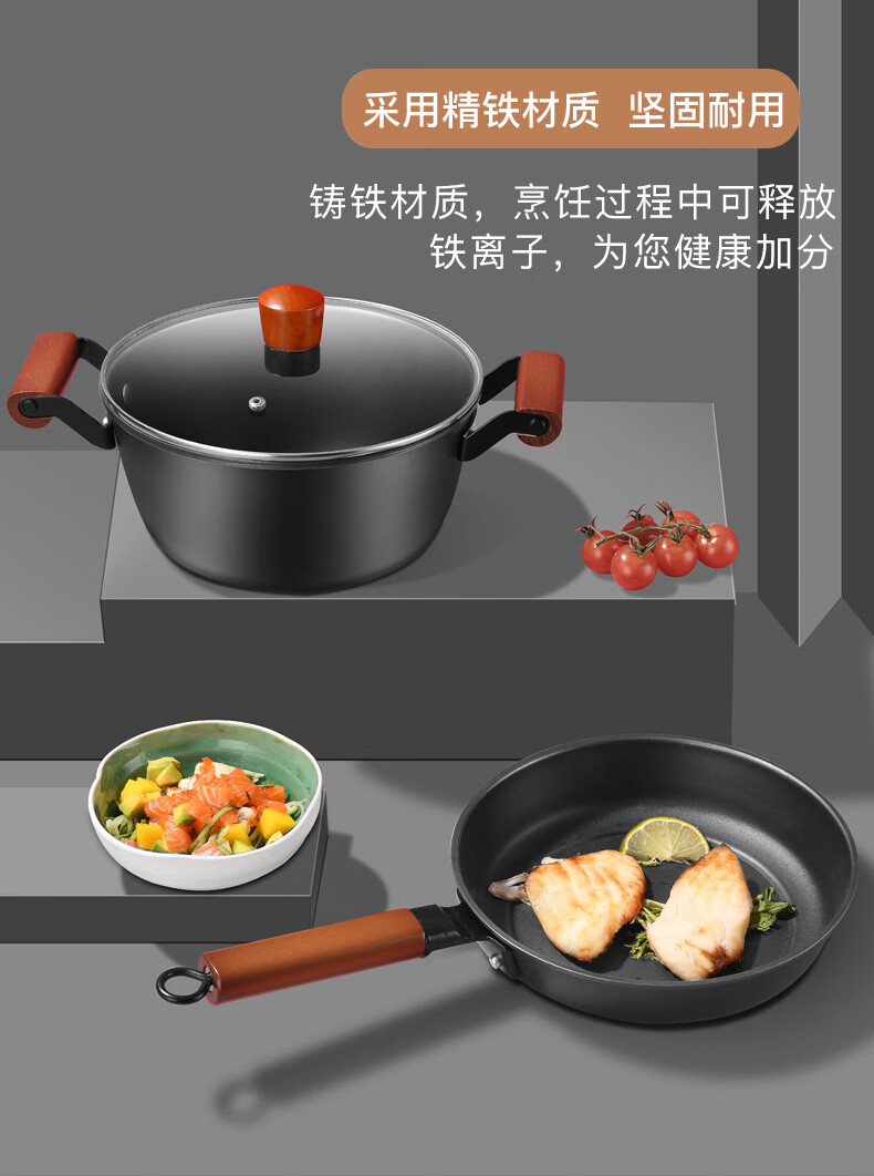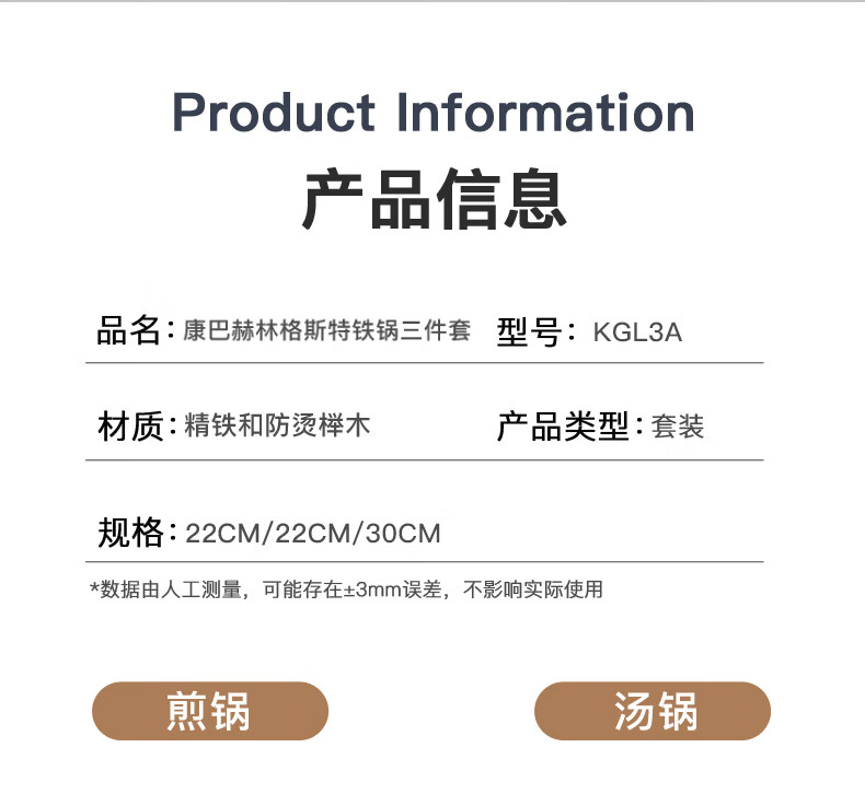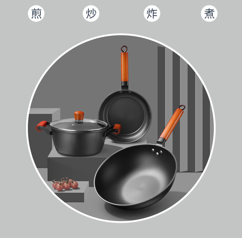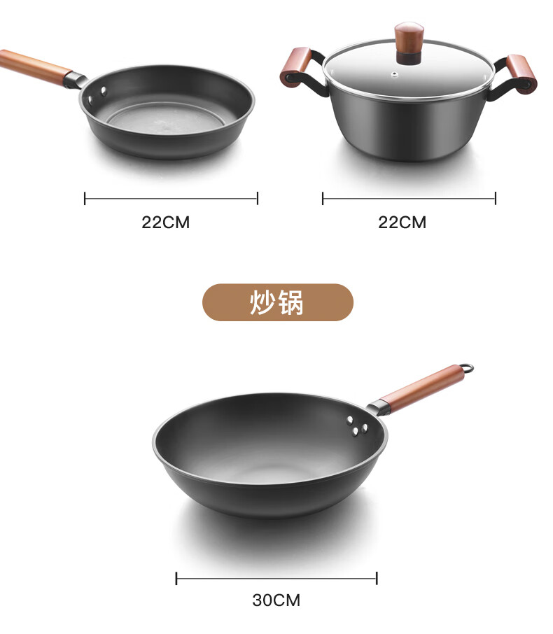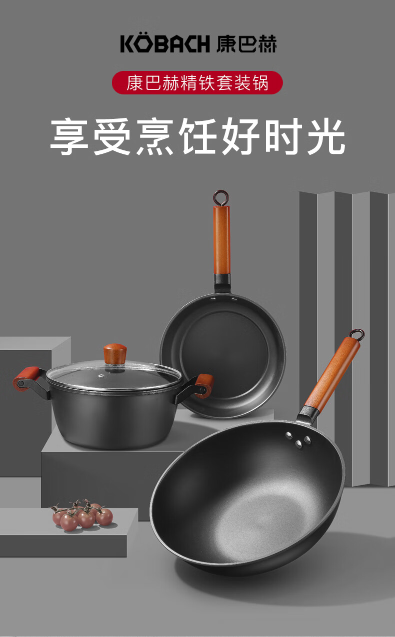 康巴赫 林格斯特精铁三件套炒锅厨具套装 炒锅30cm+汤锅22cm+煎锅22cm KGL3A