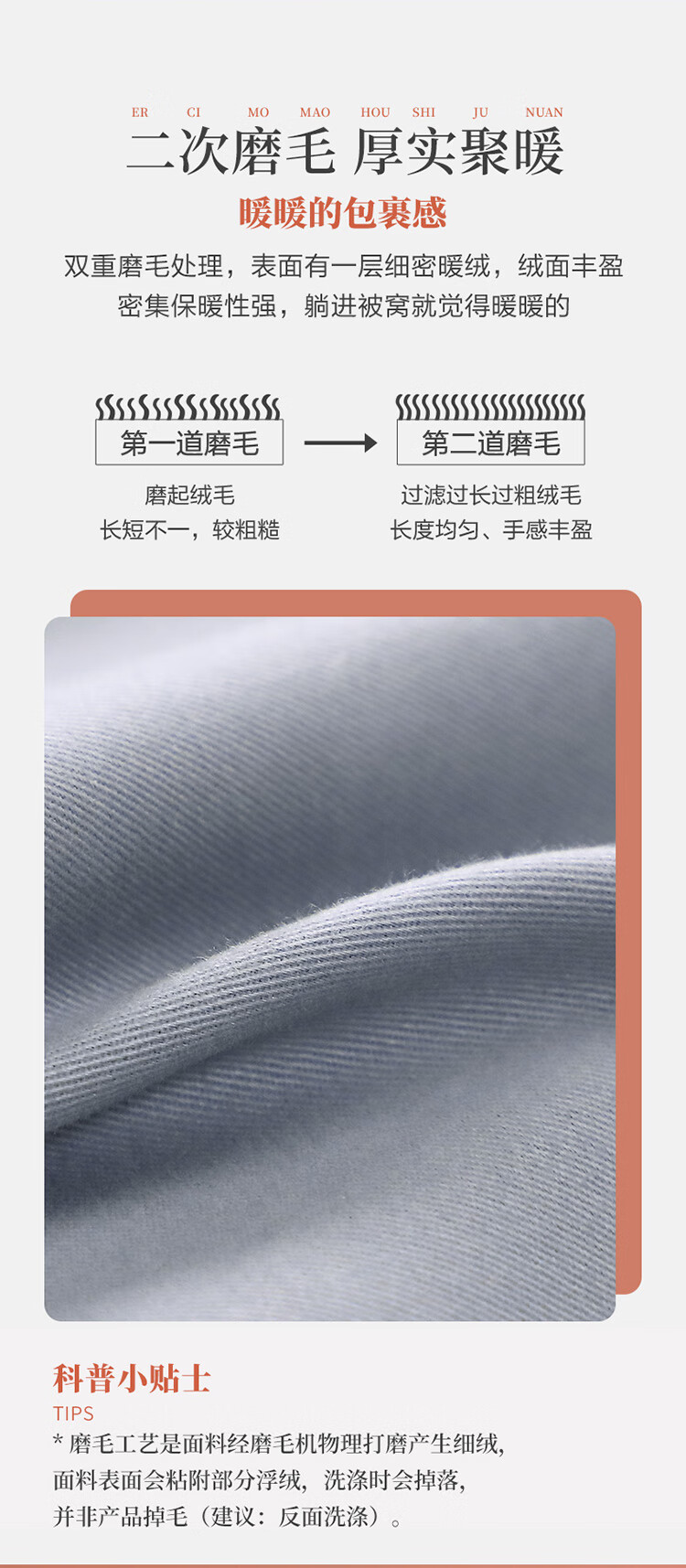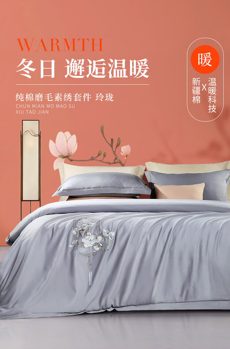 富安娜家纺磨毛三件套纯棉 单人100%全棉双面加厚套件 冬季保暖床品 宿舍床单 (被套152*210cm)