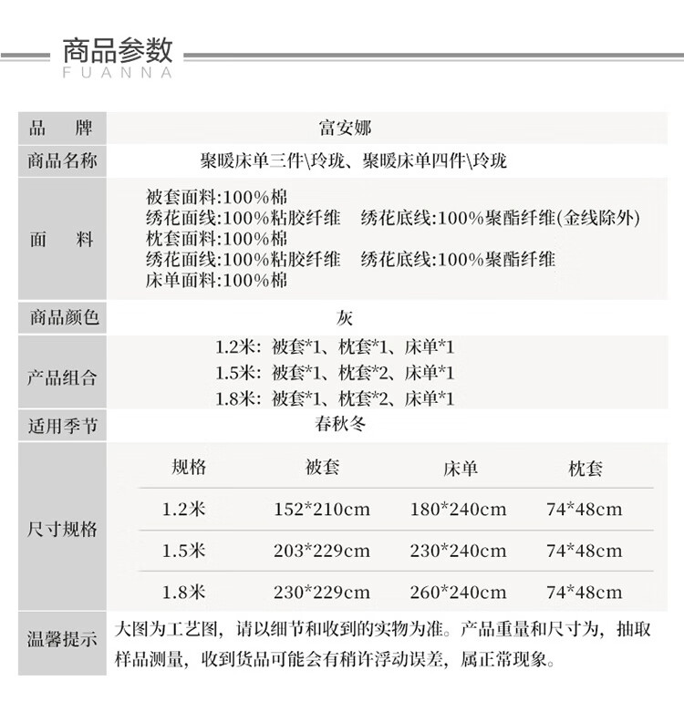 富安娜家纺磨毛三件套纯棉 单人...