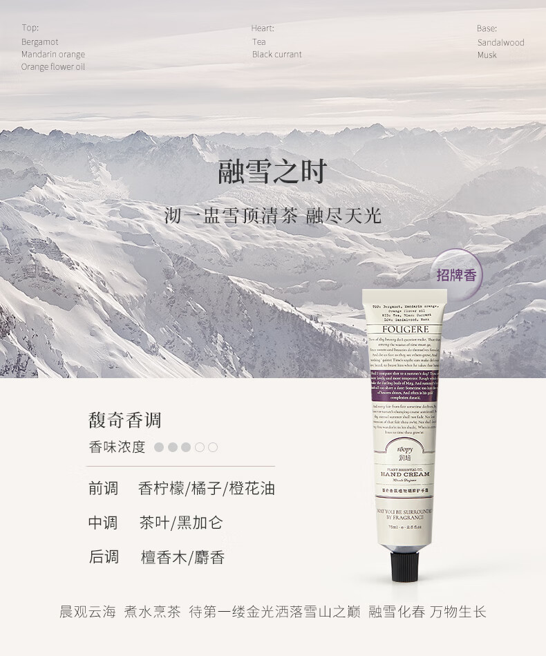 润培护手霜香氛保湿滋养护手霜清爽植物精粹补水便携装 融雪之时-75ml