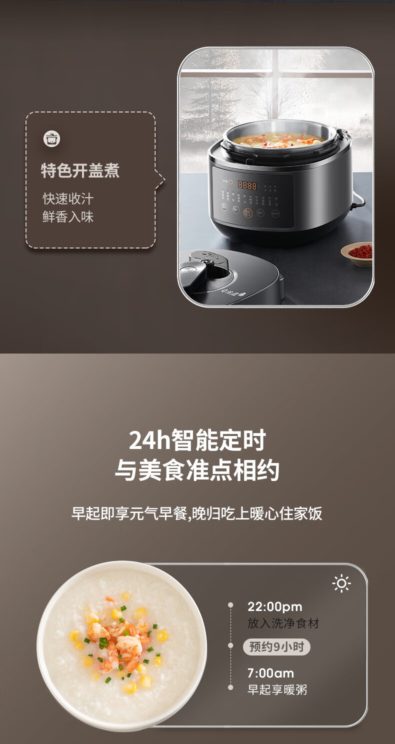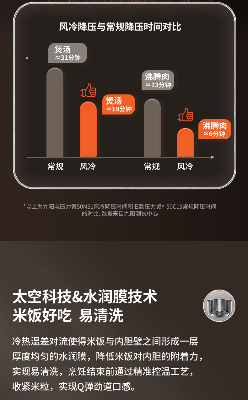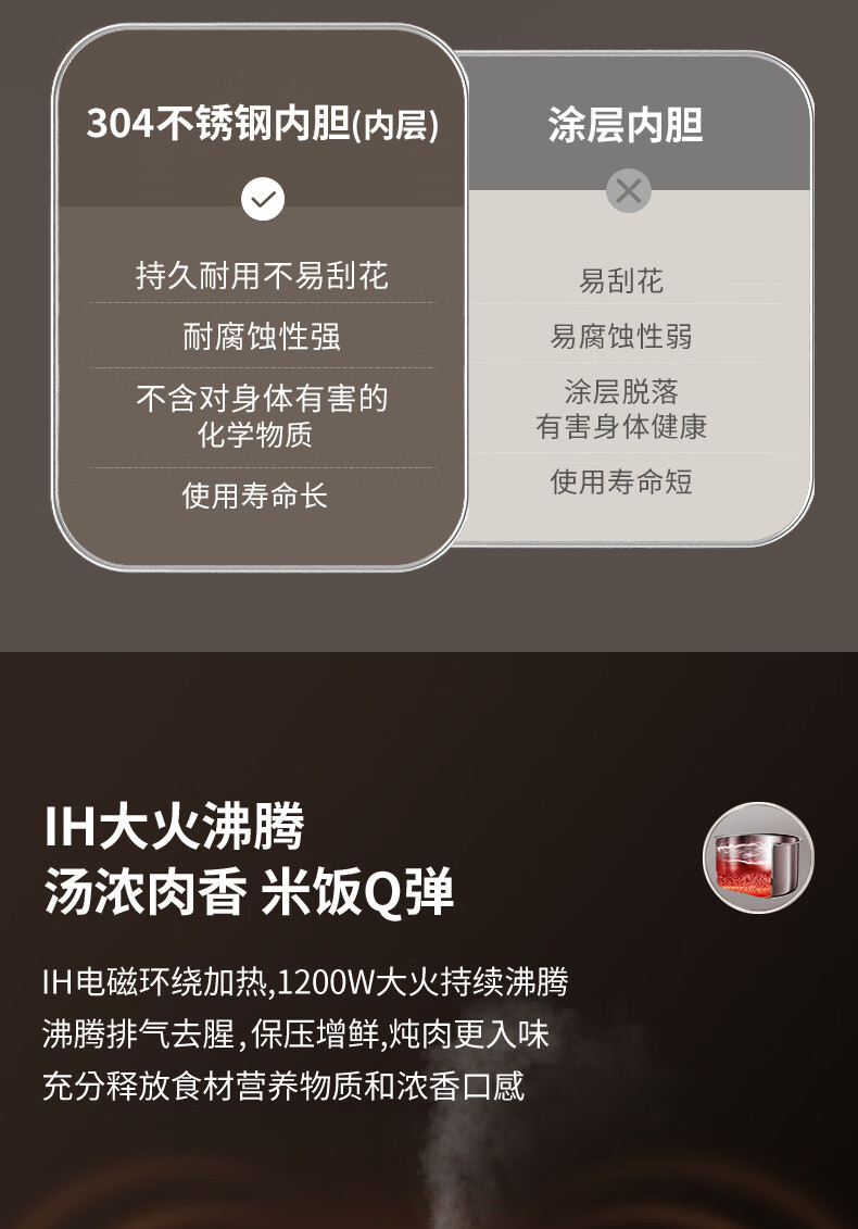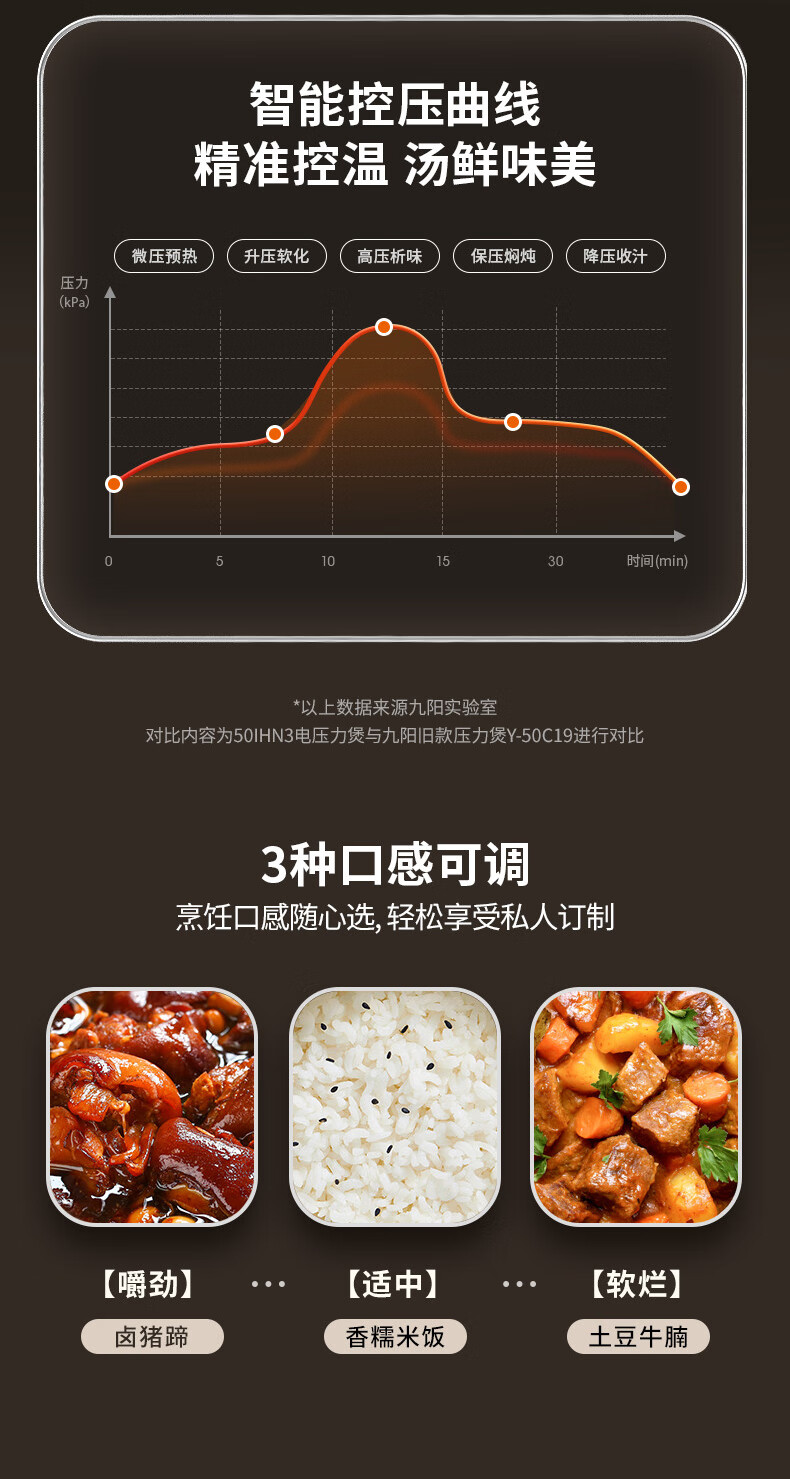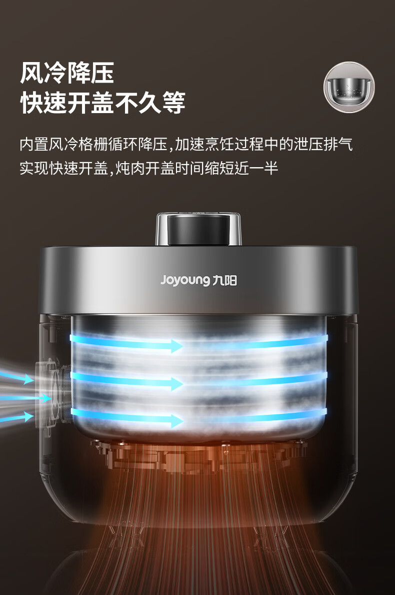 九阳(Joyoung)【0涂层】不锈钢双钢釜太空系列5升3-10人电压力锅高压锅无涂层1200WIH电磁加热5L压力煲50IHN3