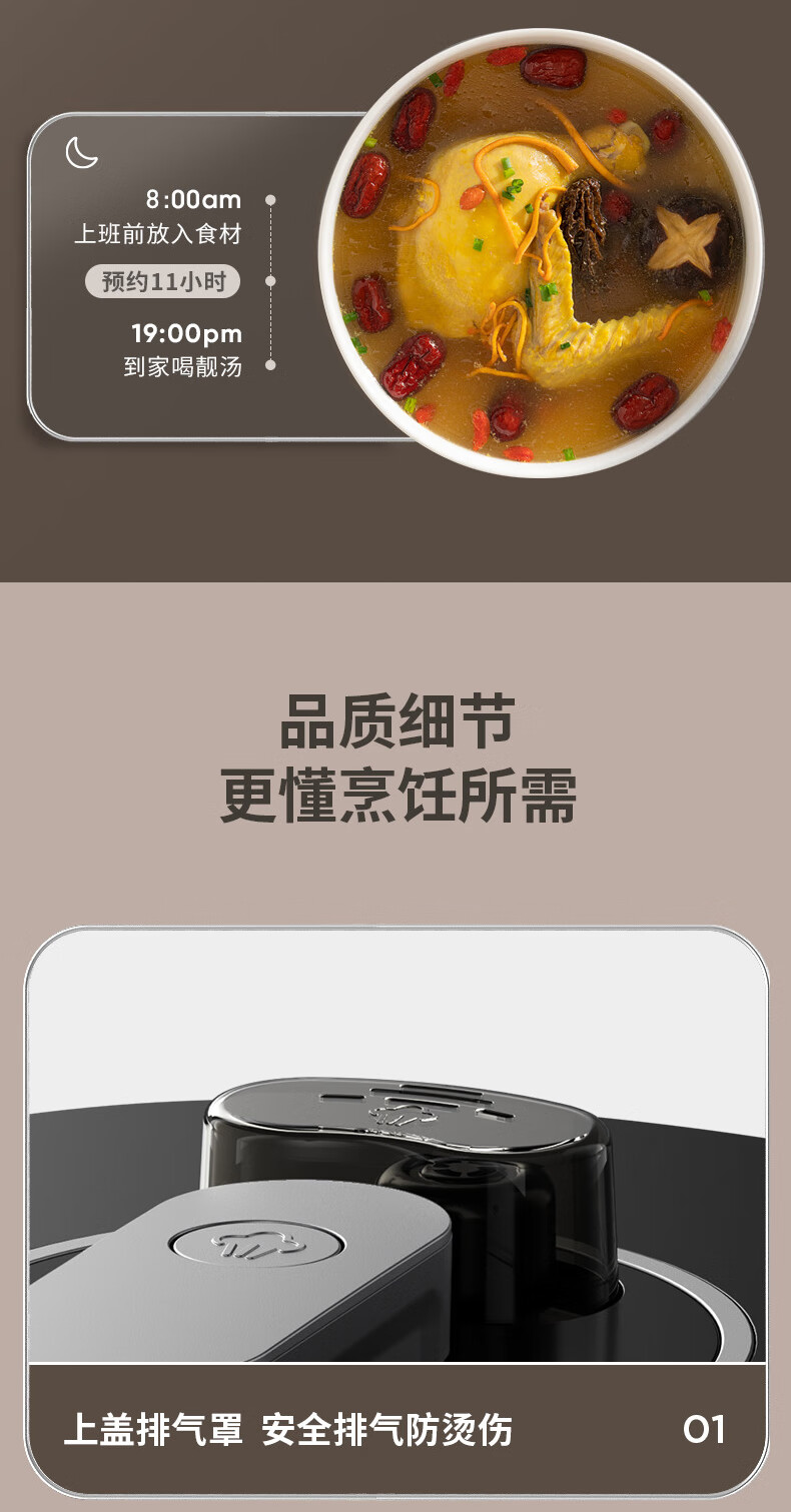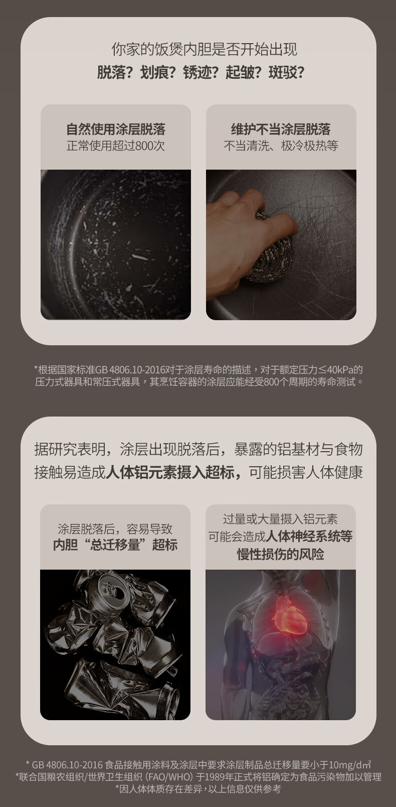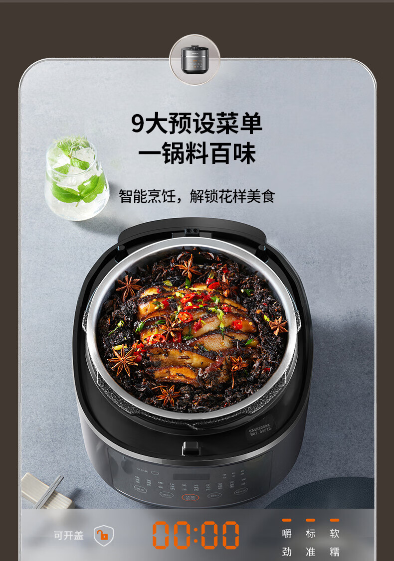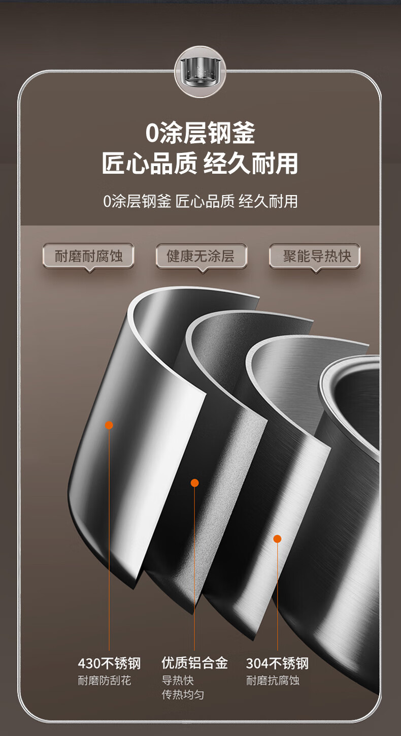 九阳(Joyoung)【0涂层】不锈钢双钢釜太空系列5升3-10人电压力锅高压锅无涂层1200WIH电磁加热5L压力煲50IHN3