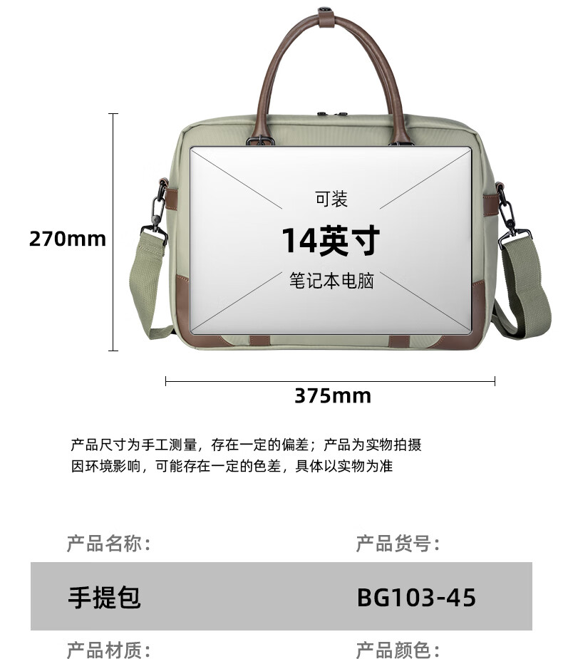 得力(deli)加厚立体办公手提袋/会议包/事务包/商务拉链袋电脑公文包便携 灰色BG103-45