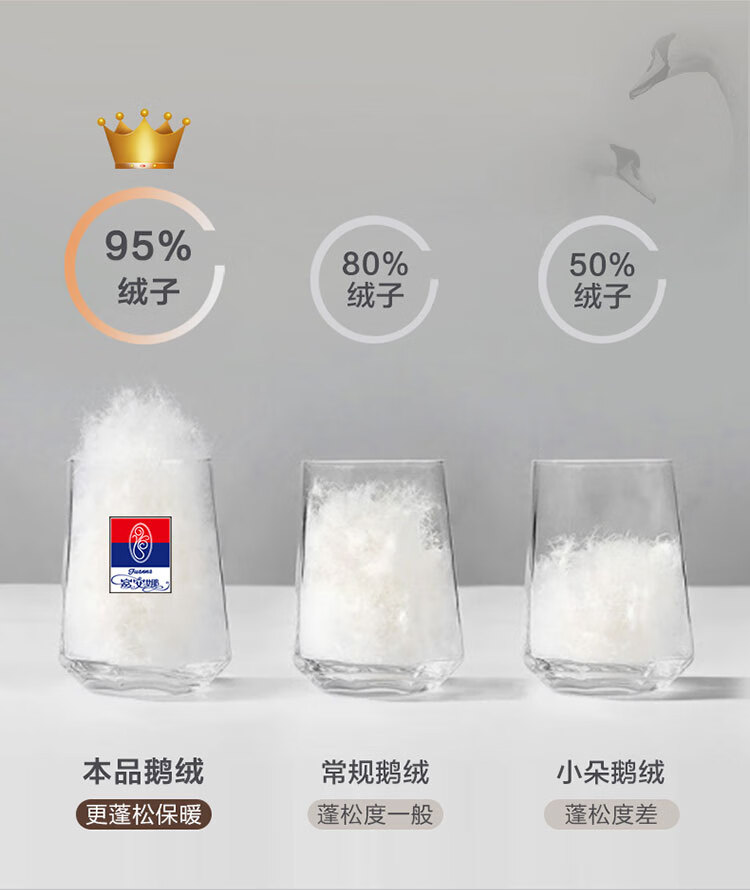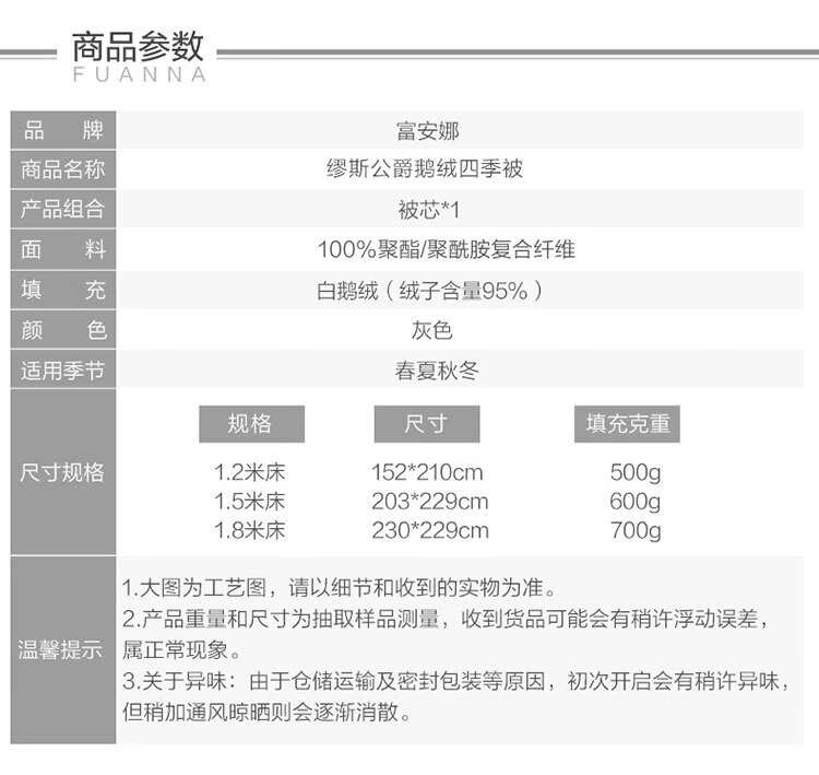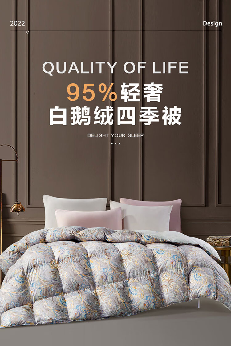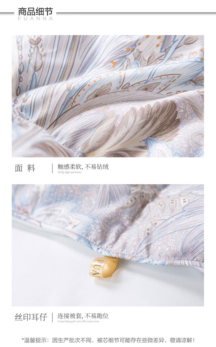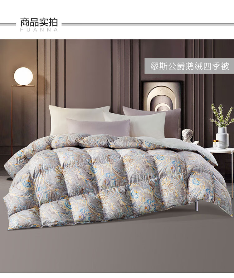 富安娜家纺羽绒被冬被 95%白鹅绒被子四季被芯 冬季保暖单人盖被 缪斯 1.2米床(152*210cm)