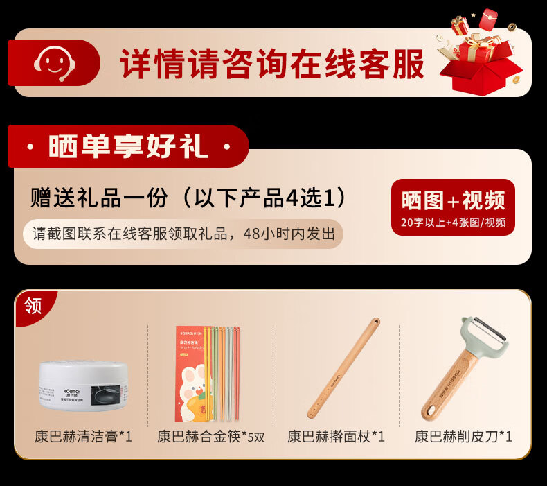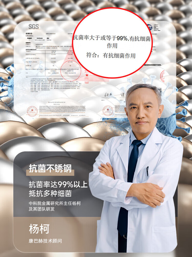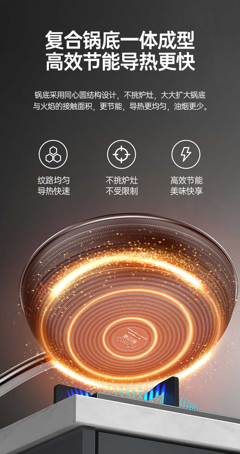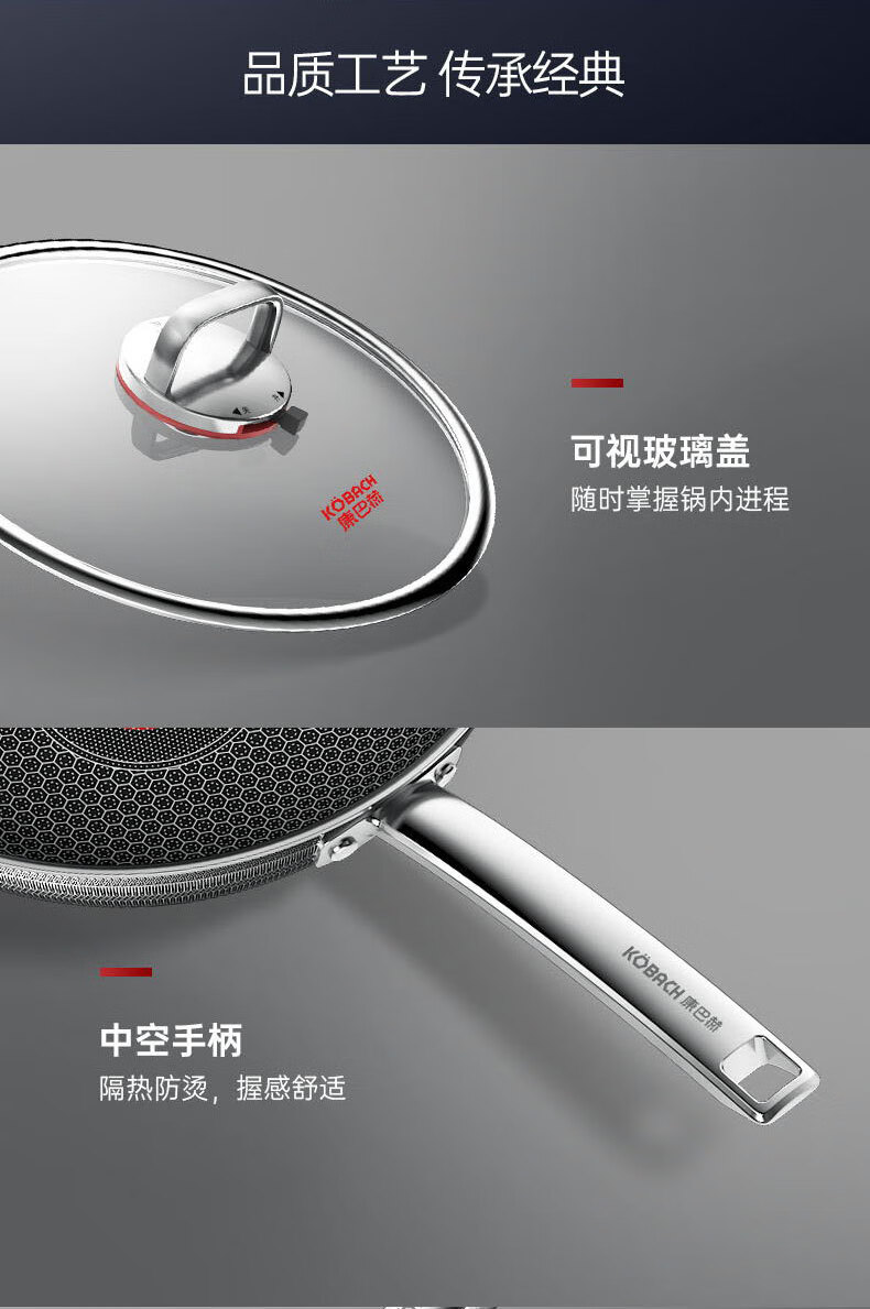 康巴赫第六代炒锅不粘锅抗菌不锈...