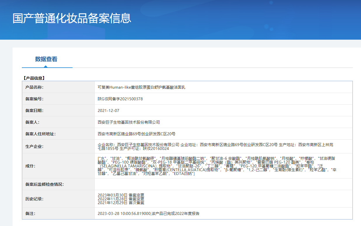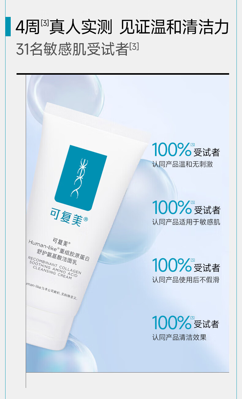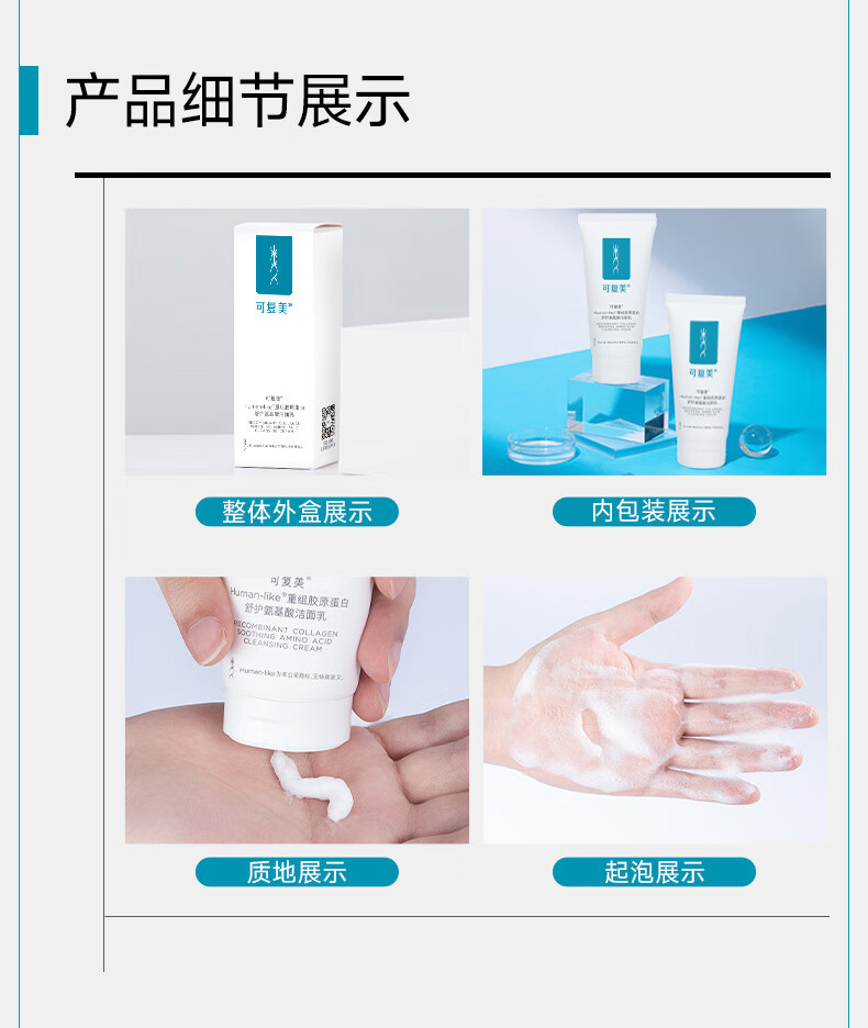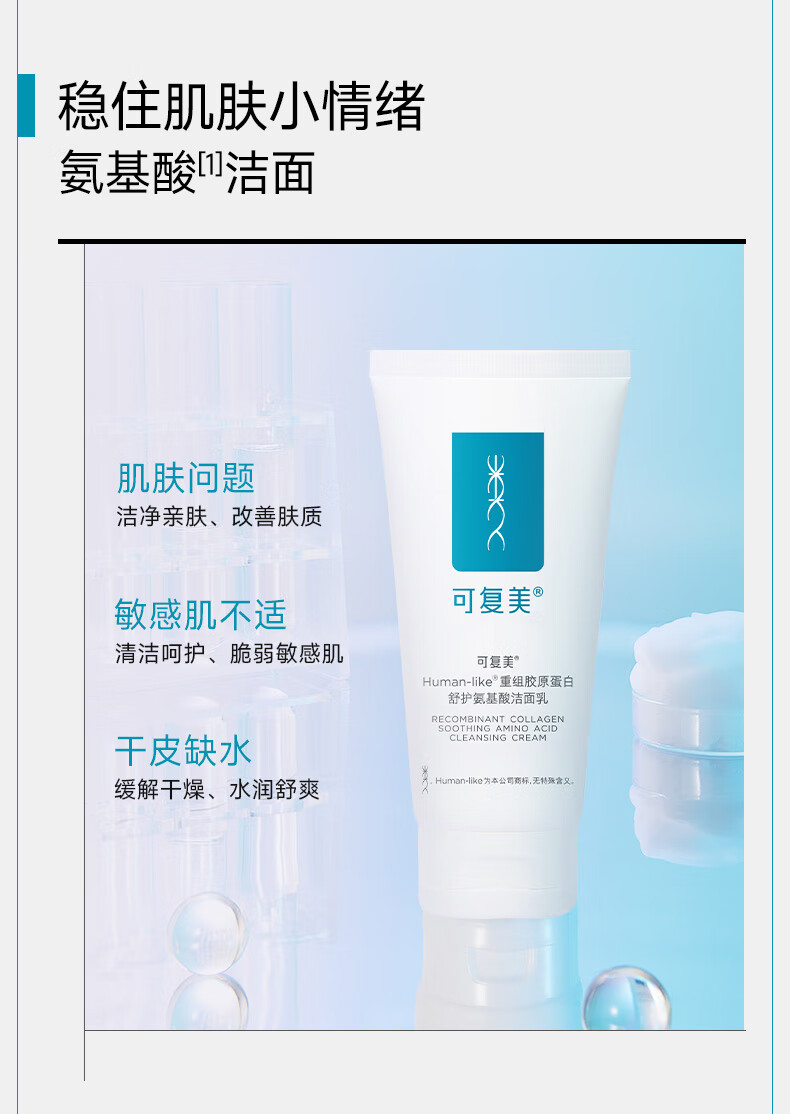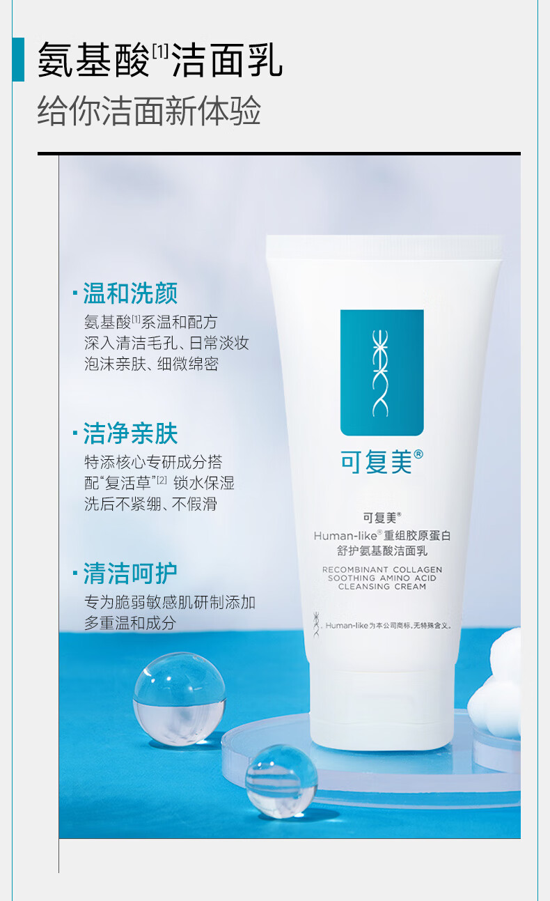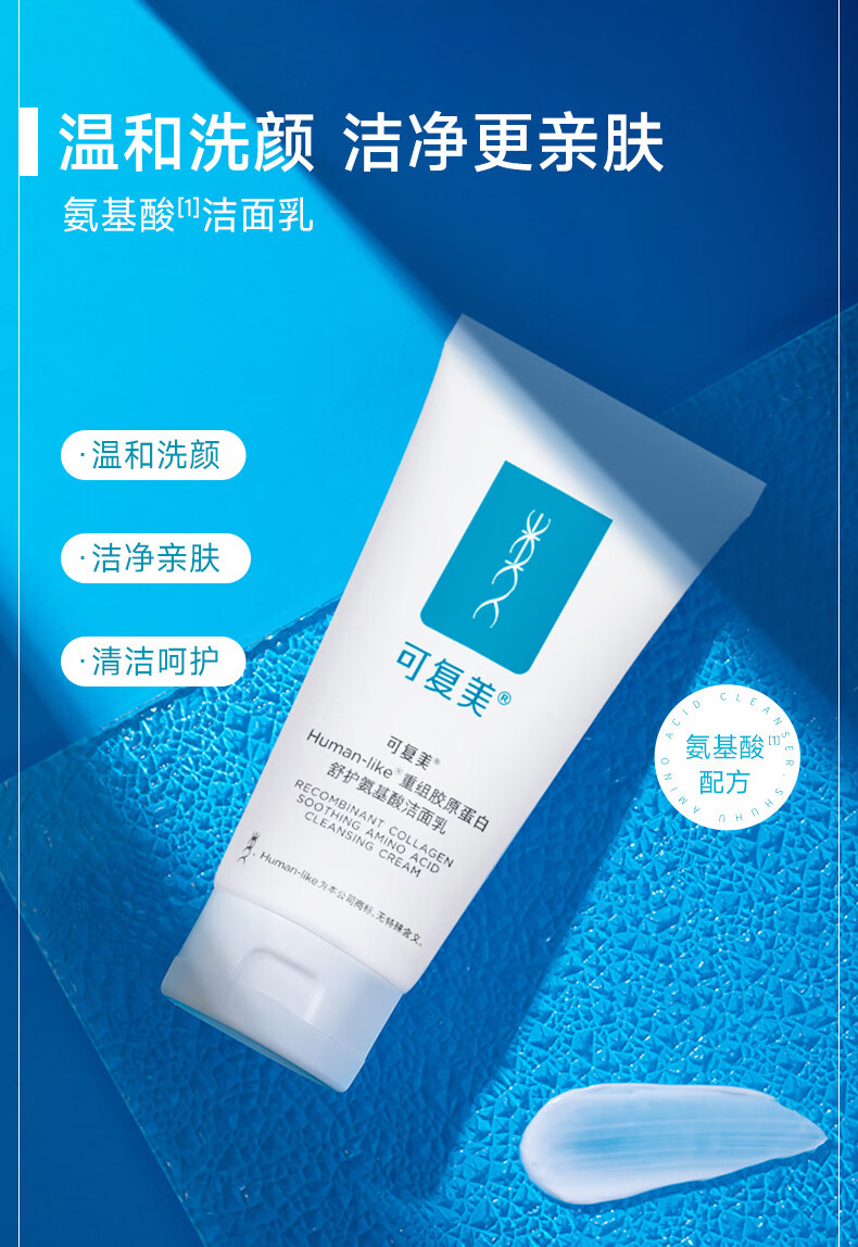 可复美Human-like重组胶原蛋白舒护氨基酸洁面乳120g控油男女洗面奶 敏感肌肤护肤品深层清洁补水保湿
