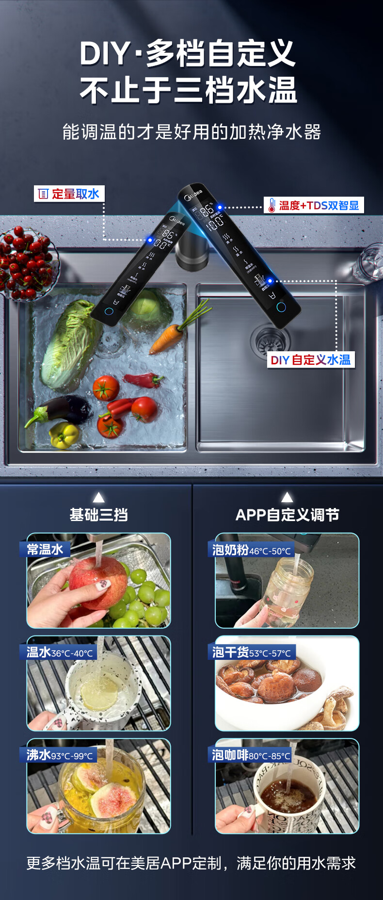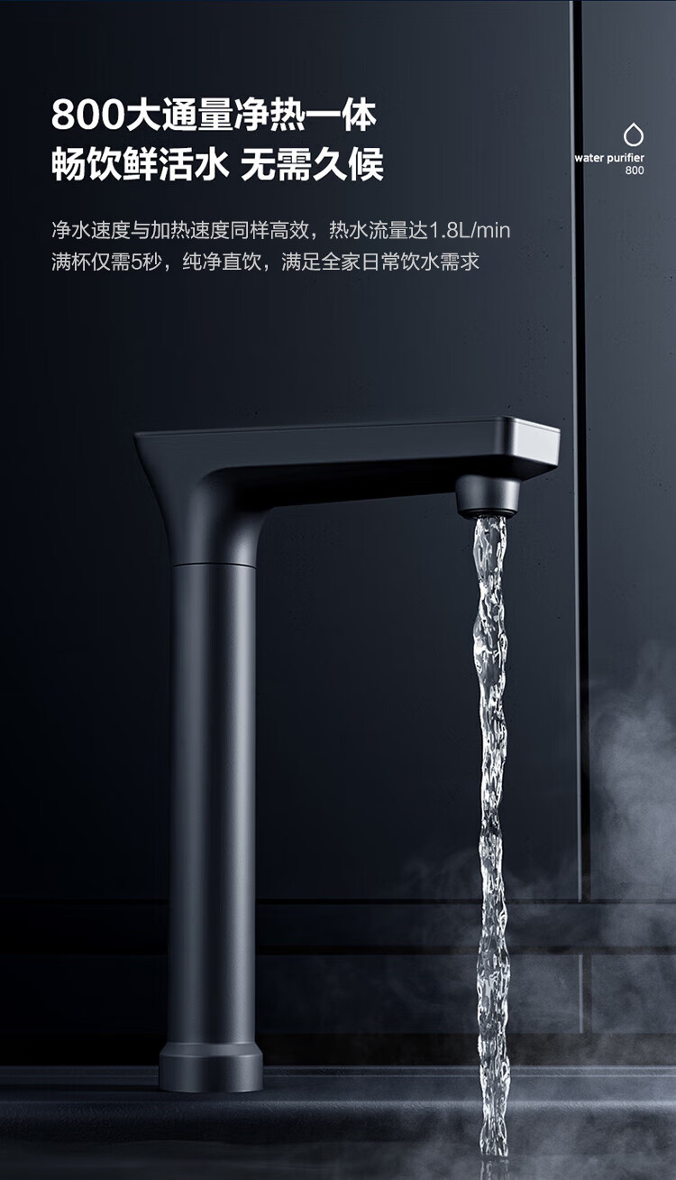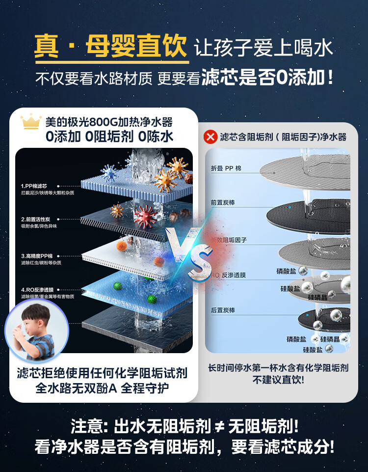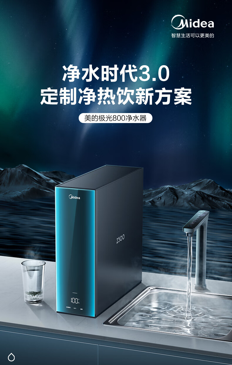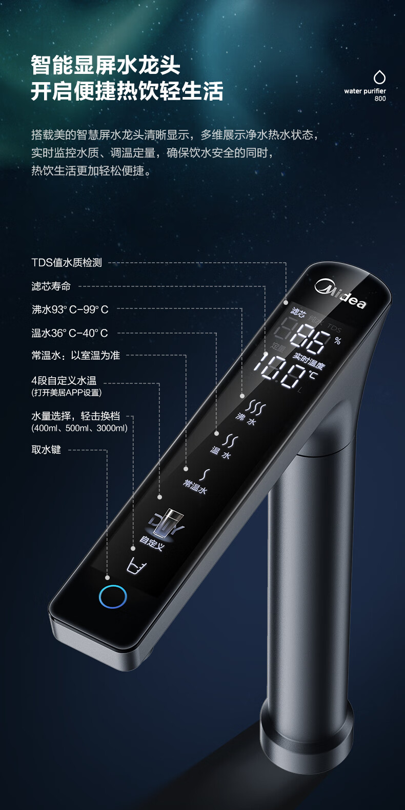 美的(Midea)极光800G加热净水器 多档控温TDS双数显龙头 流速2.0L/min 家用直饮厨下即滤净饮一体机MRO815-R