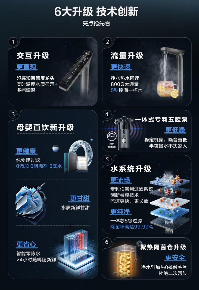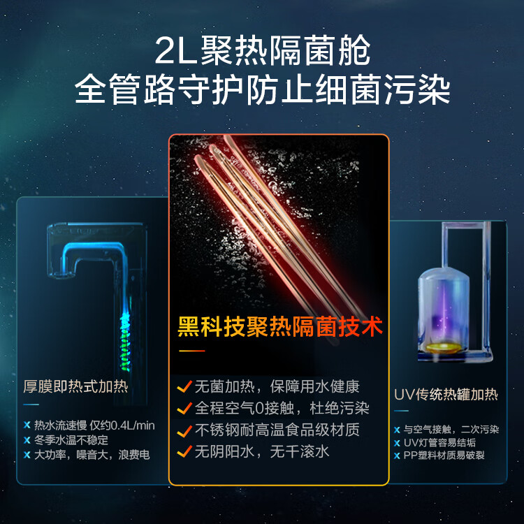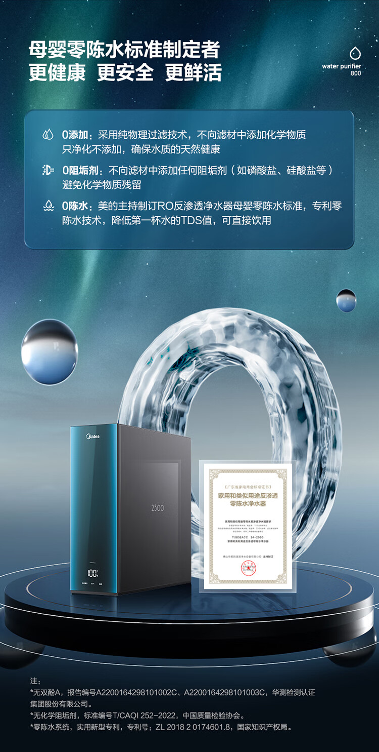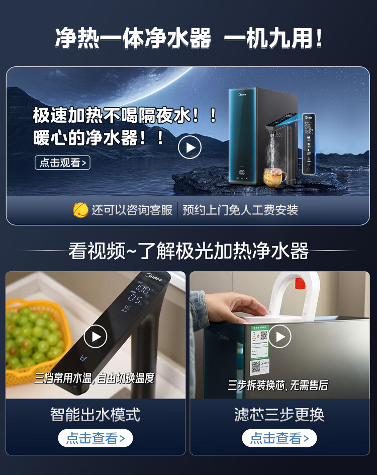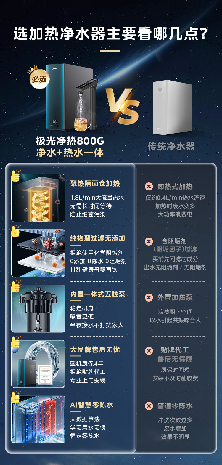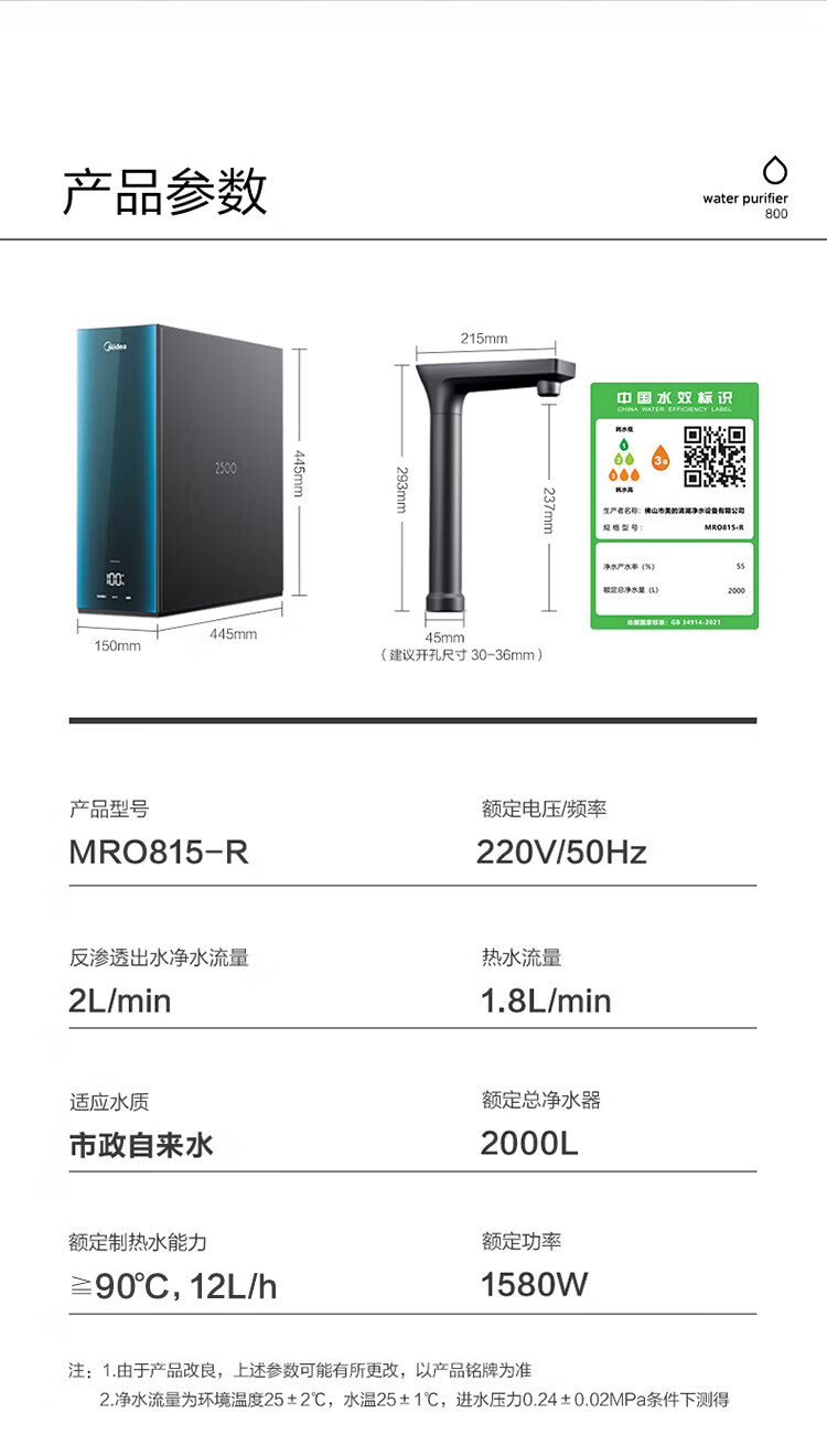 美的(Midea)极光800G加热净水器 多档控温TDS双数显龙头 流速2.0L/min 家用直饮厨下即滤净饮一体机MRO815-R