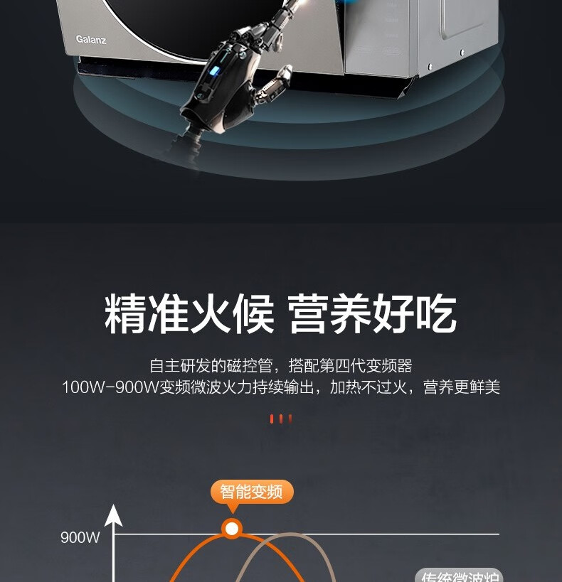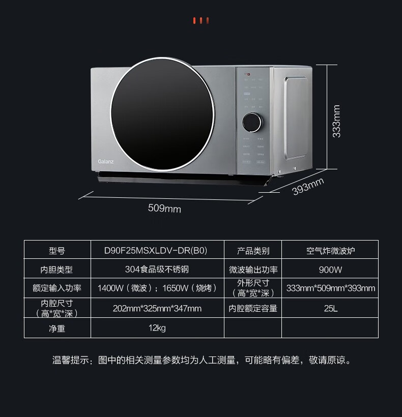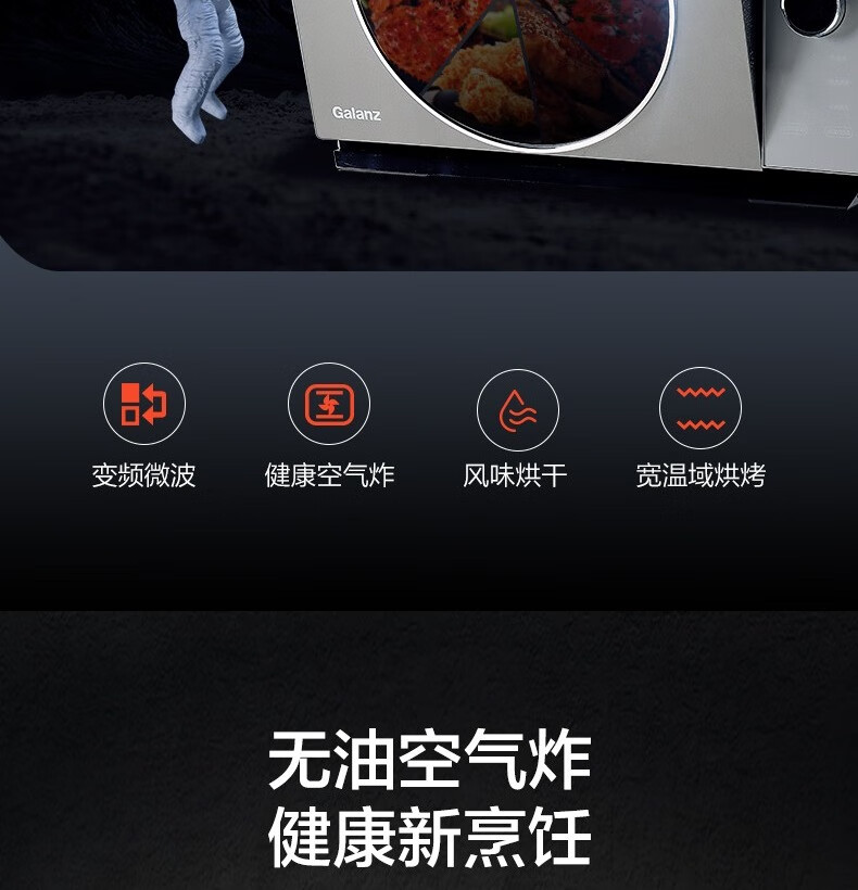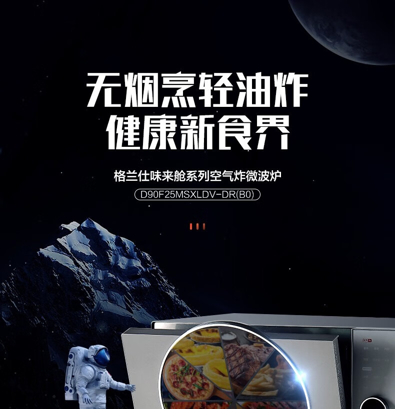 格兰仕 (Galanz) 空气炸微波炉 不锈钢内胆 多功能 自动烘干光波烧烤 D90F25MSXLDV-DR(B0)