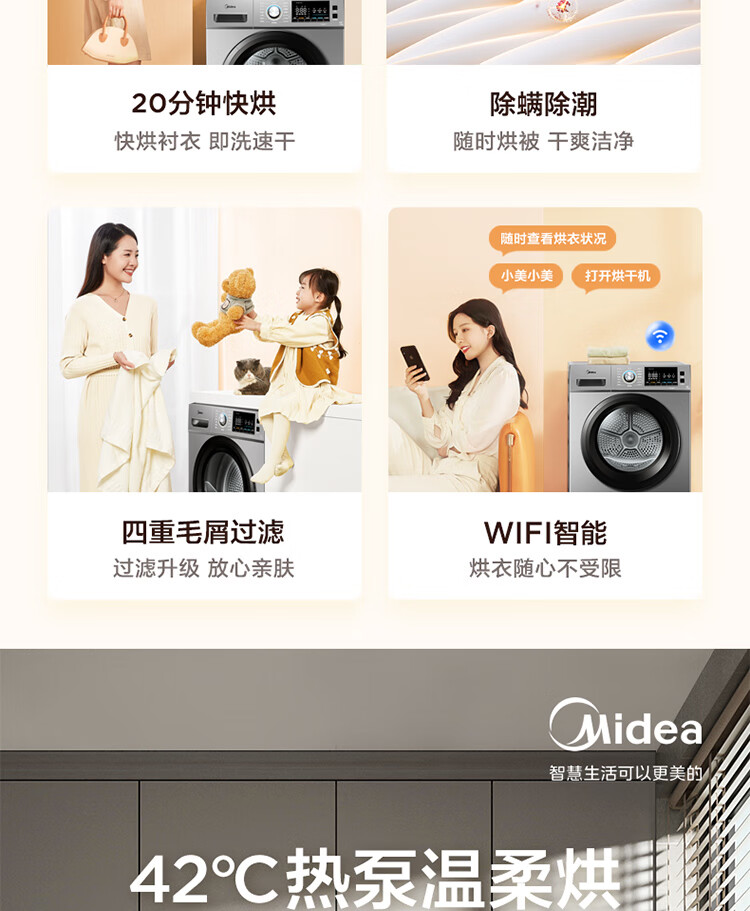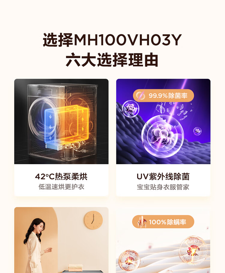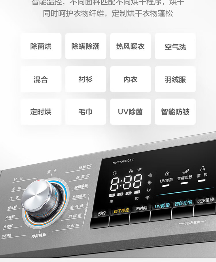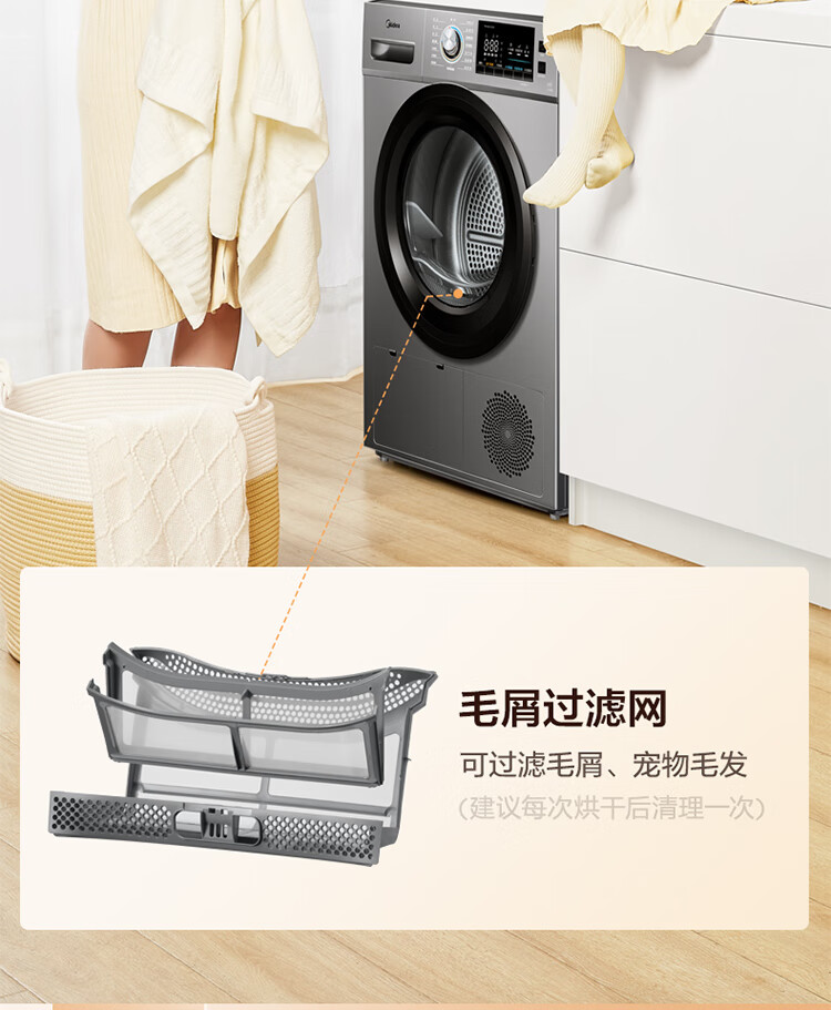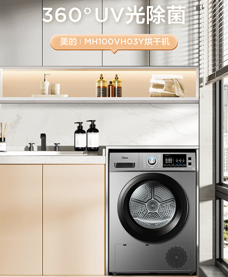 美的(Midea)烘干机 家用热泵式干衣机 10公斤 紫外线除菌 除螨除潮 祛除宠物毛发 MH100VH03Y