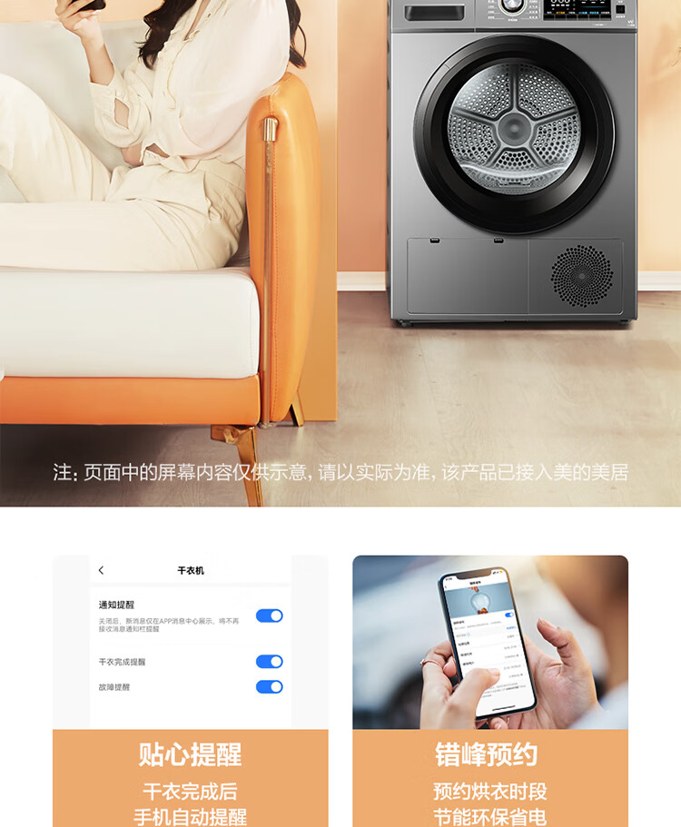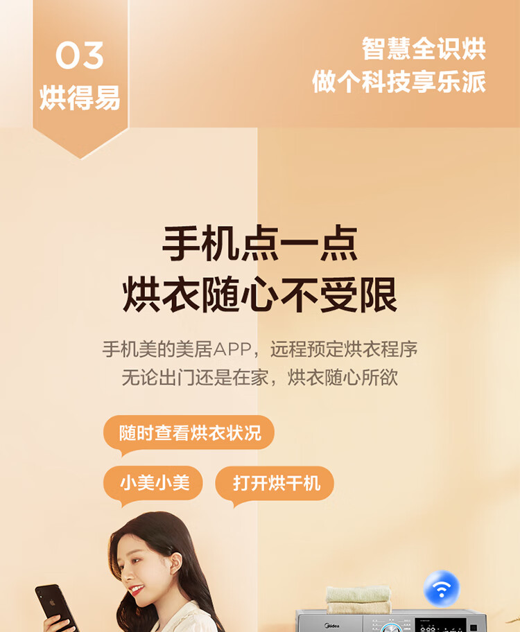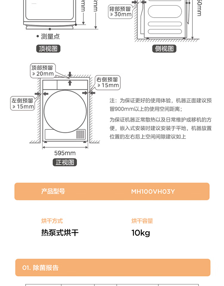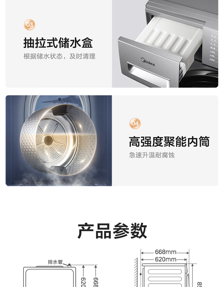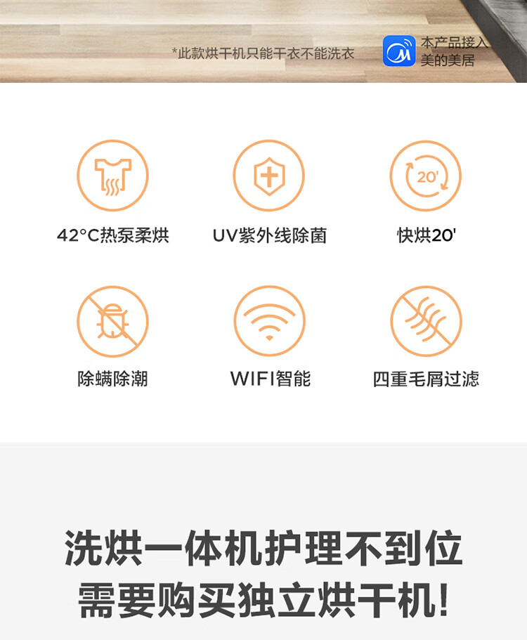 美的(Midea)烘干机 家用热泵式干衣机 10公斤 紫外线除菌 除螨除潮 祛除宠物毛发 MH100VH03Y