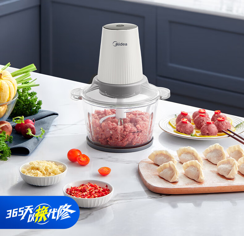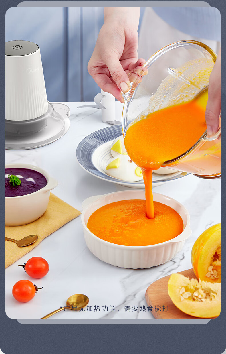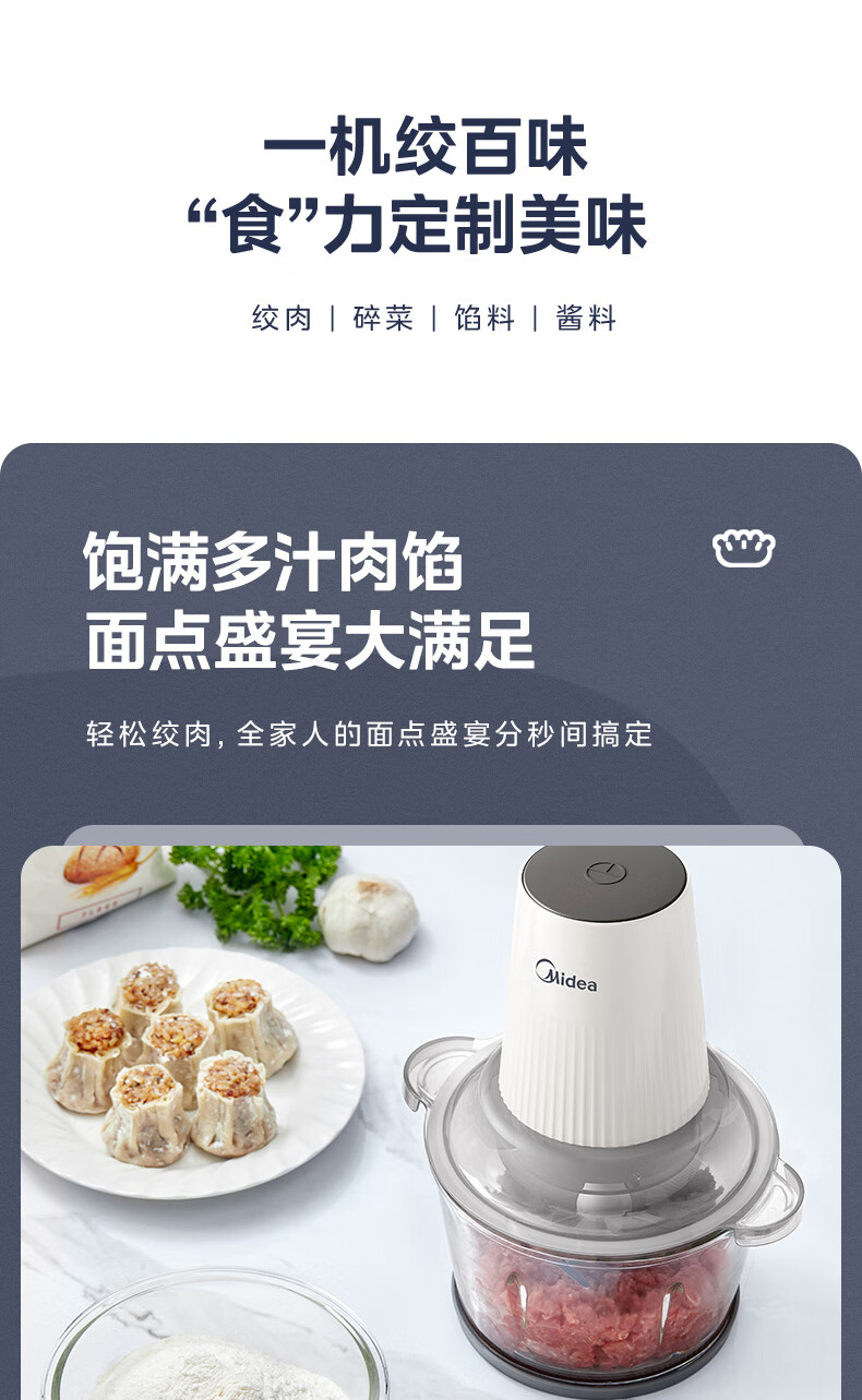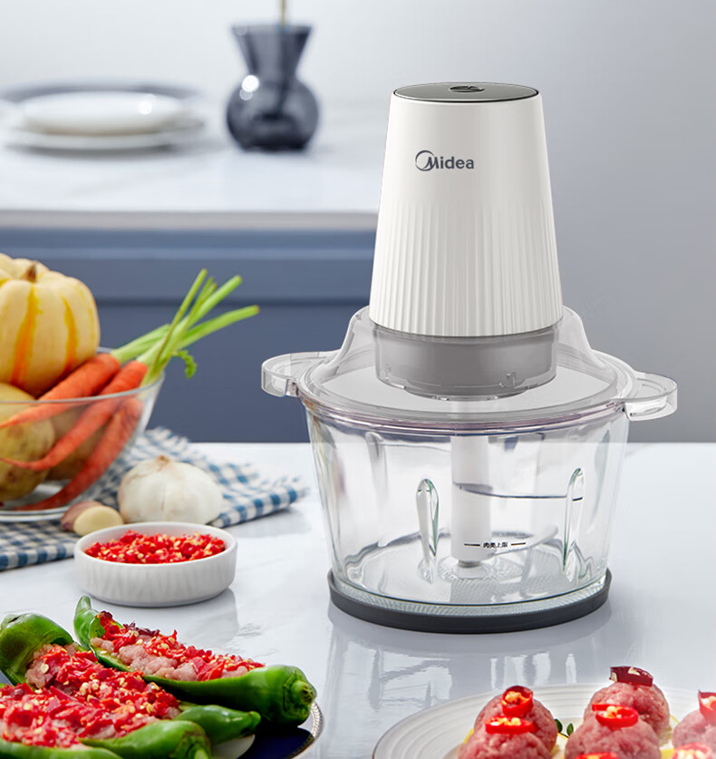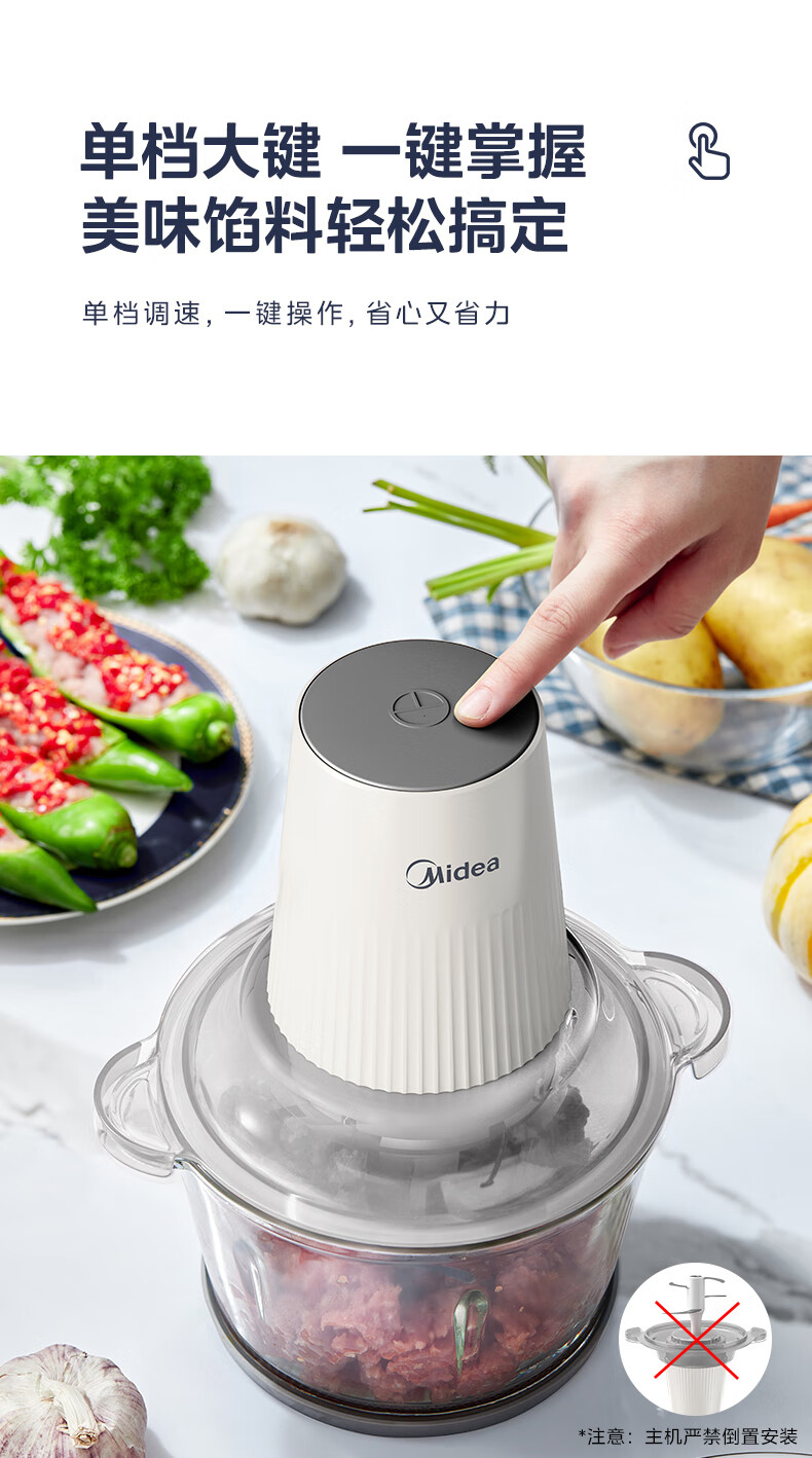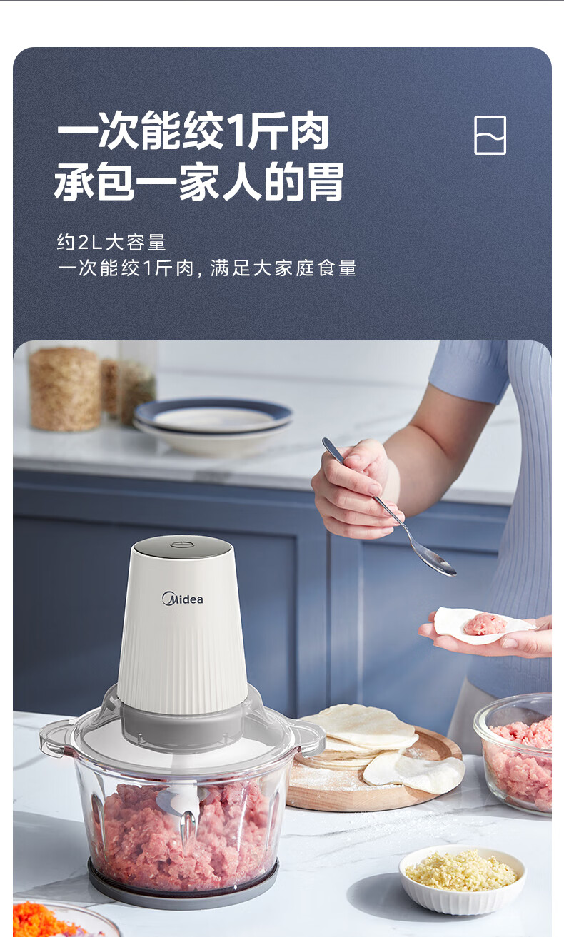 美的(Midea)绞肉机2升切菜母婴辅食四叶刀分体设计易拆洗加厚玻璃杯体防塞肉MJ- BL30J03(线下同款)