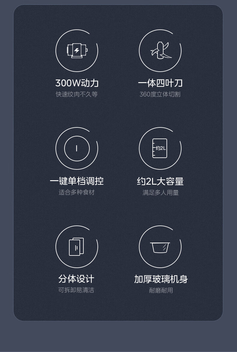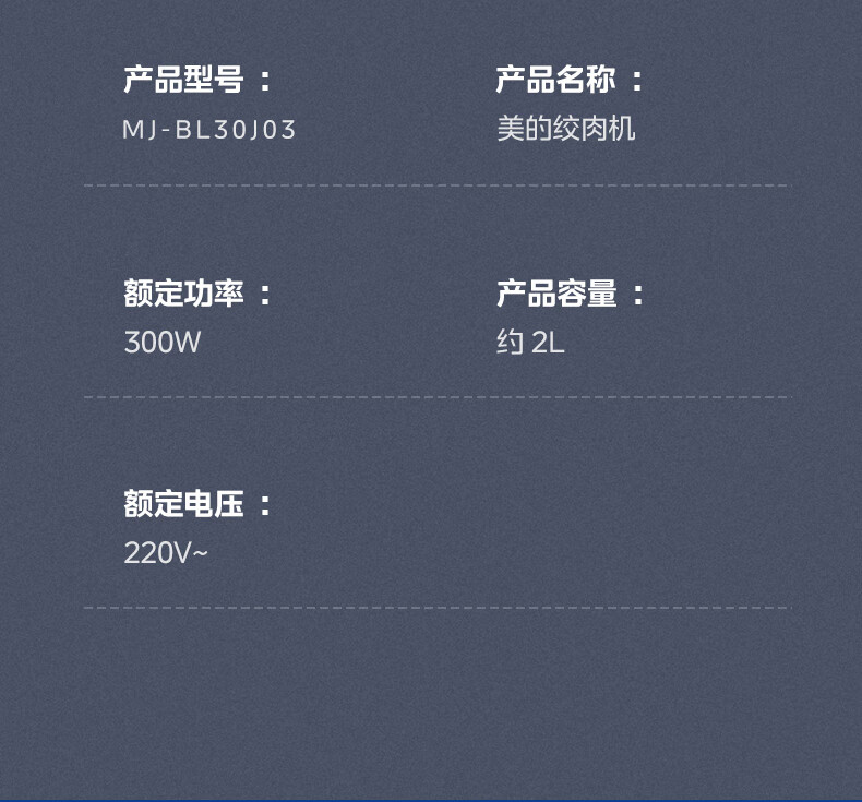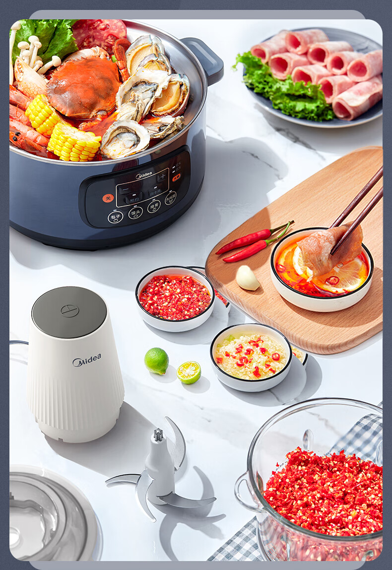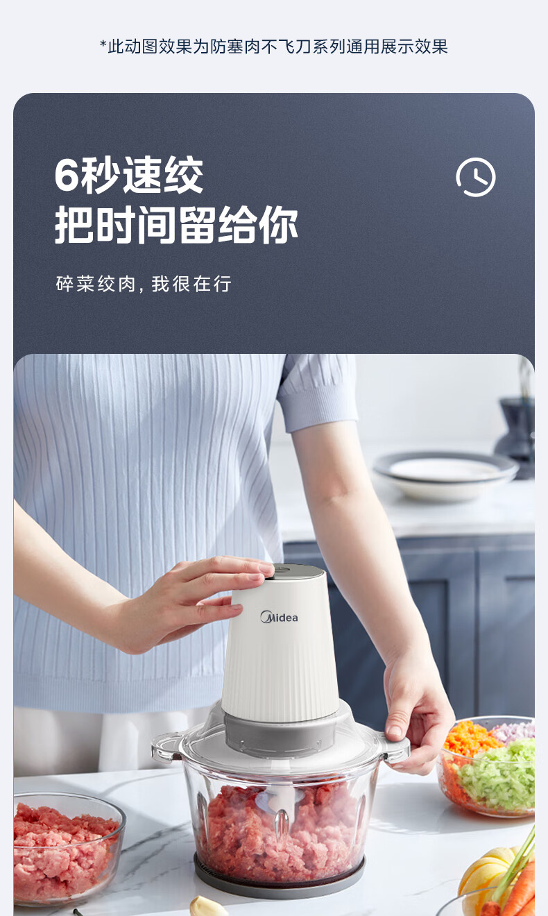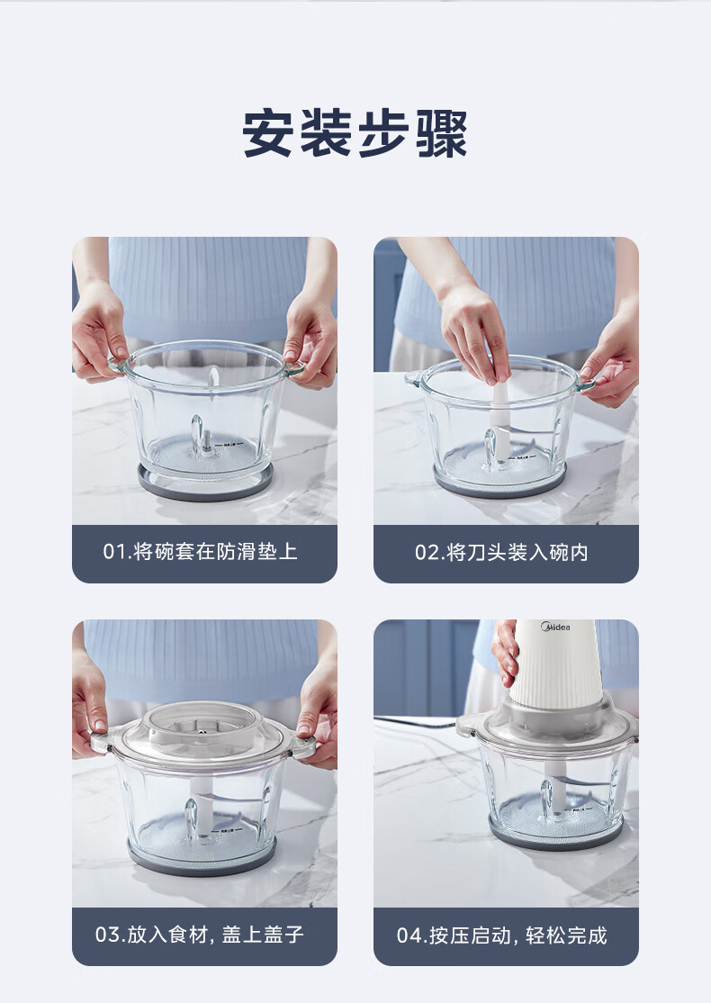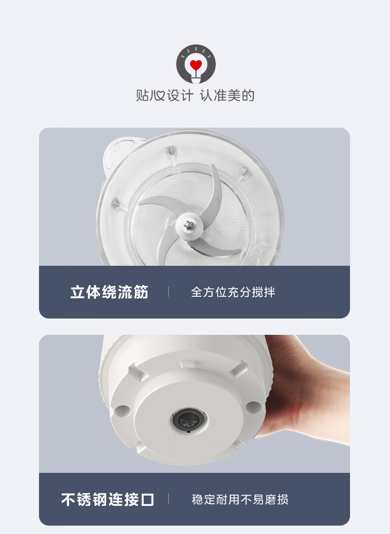 美的(Midea)绞肉机2升切菜母婴辅食四叶刀分体设计易拆洗加厚玻璃杯体防塞肉MJ- BL30J03(线下同款)