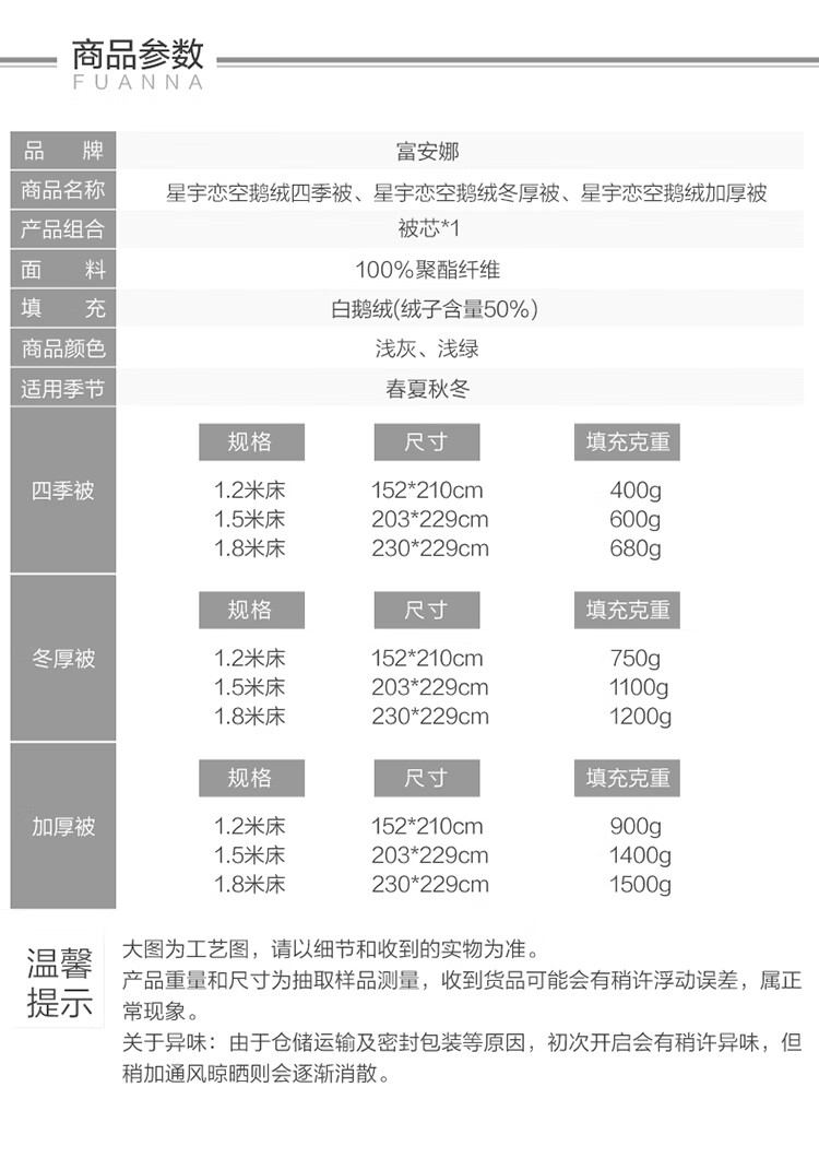 富安娜加厚特厚羽绒被子白鹅绒被...