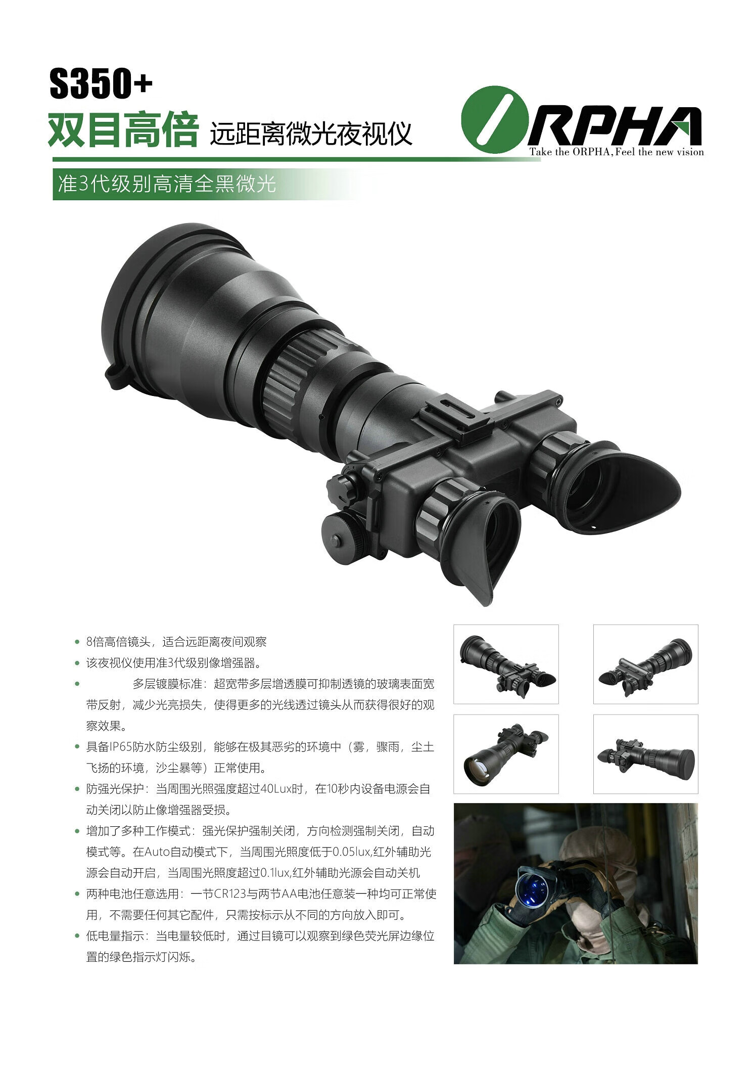 奥尔法(ORPHA)双目红外夜视仪望远镜高清微光手持式单筒高倍大视野 S350+ 准3代