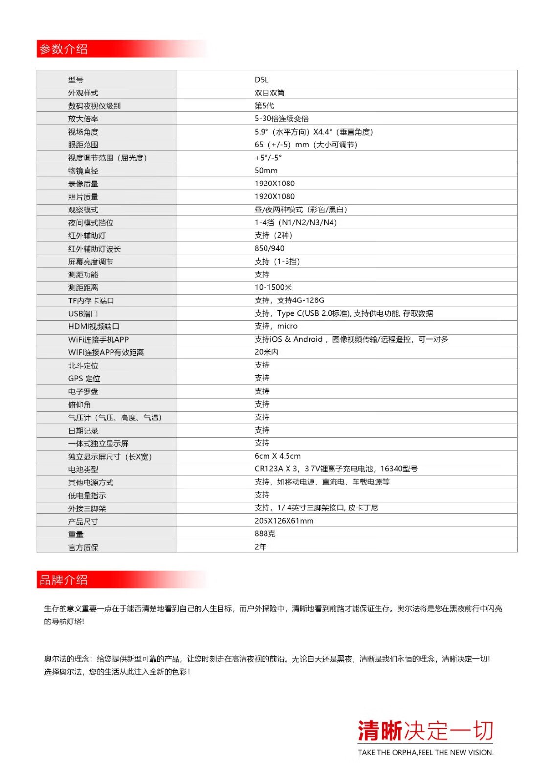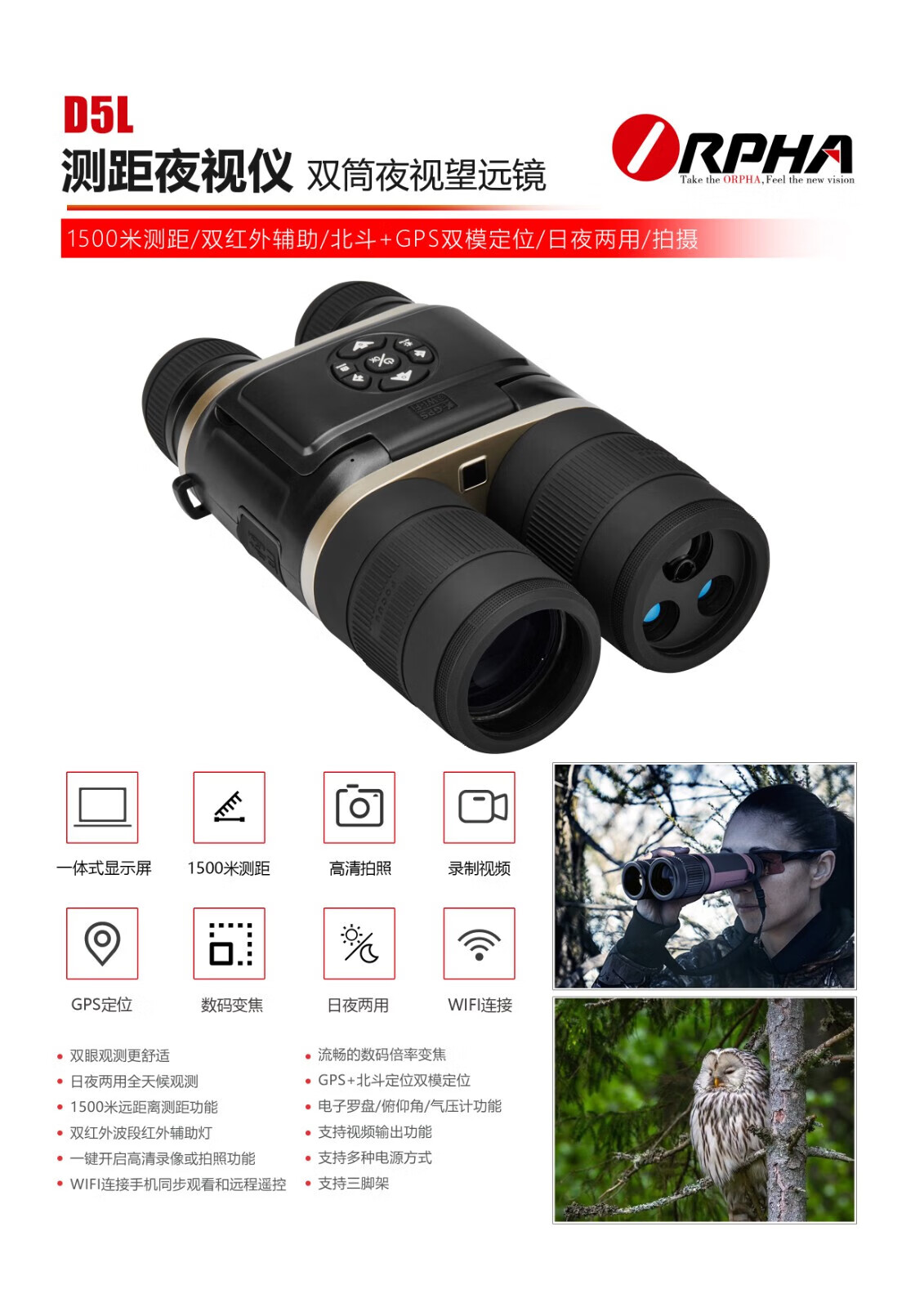 奥尔法(ORPHA)D5L第五代多功能红外激光测距夜视一体屏录像夜视仪手机/APP遥控