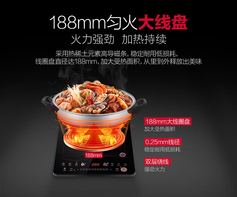 美的(Midea) C21-RT2170智能电磁炉超薄触摸爆炒大火力火锅匀火大线圈多功能2100W