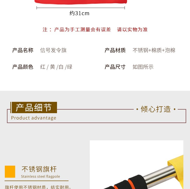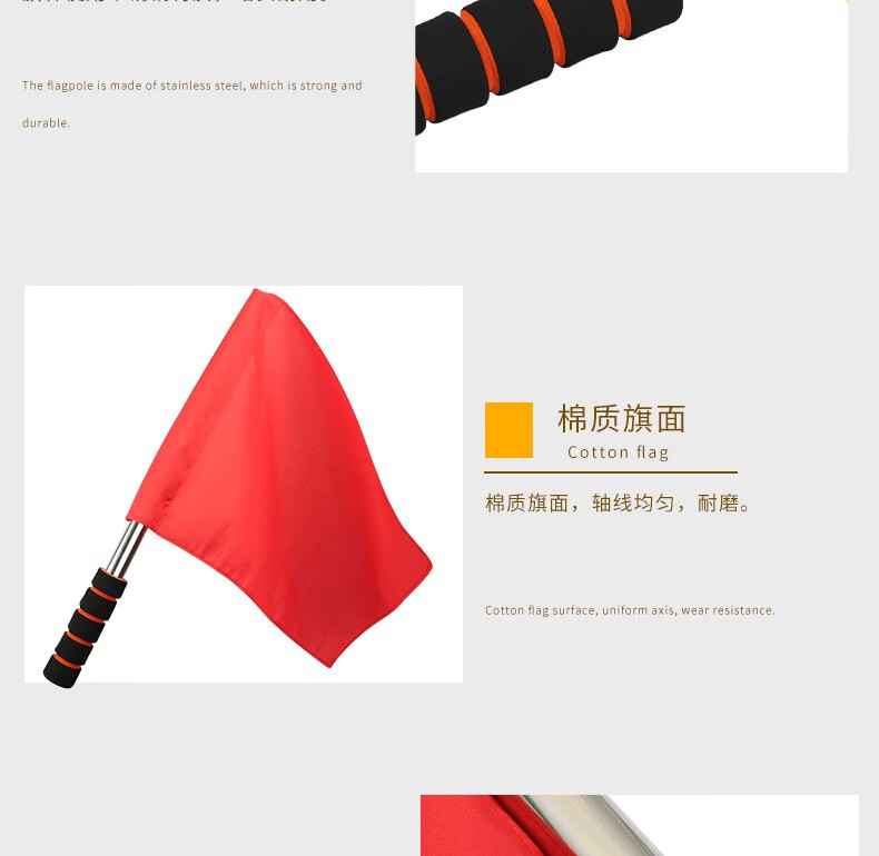 军凯鹏飞发令旗信号旗不锈钢杆交通指挥旗指令旗运动会手旗裁判旗警示旗 红色手旗