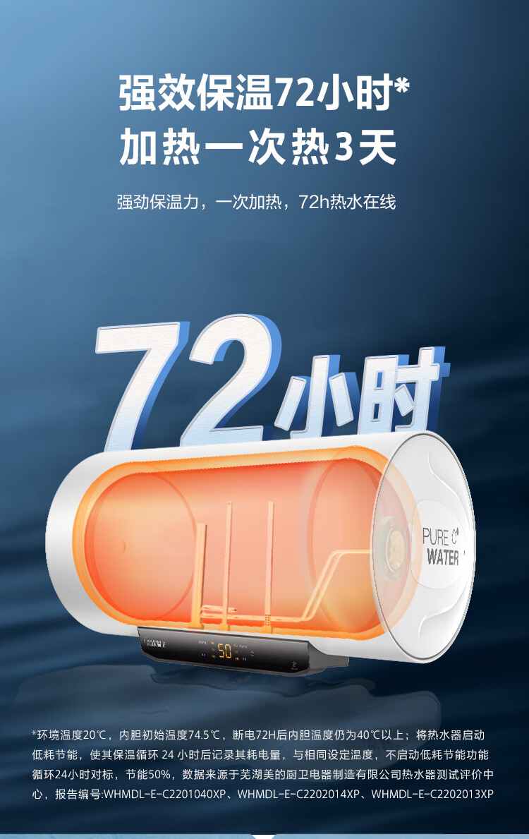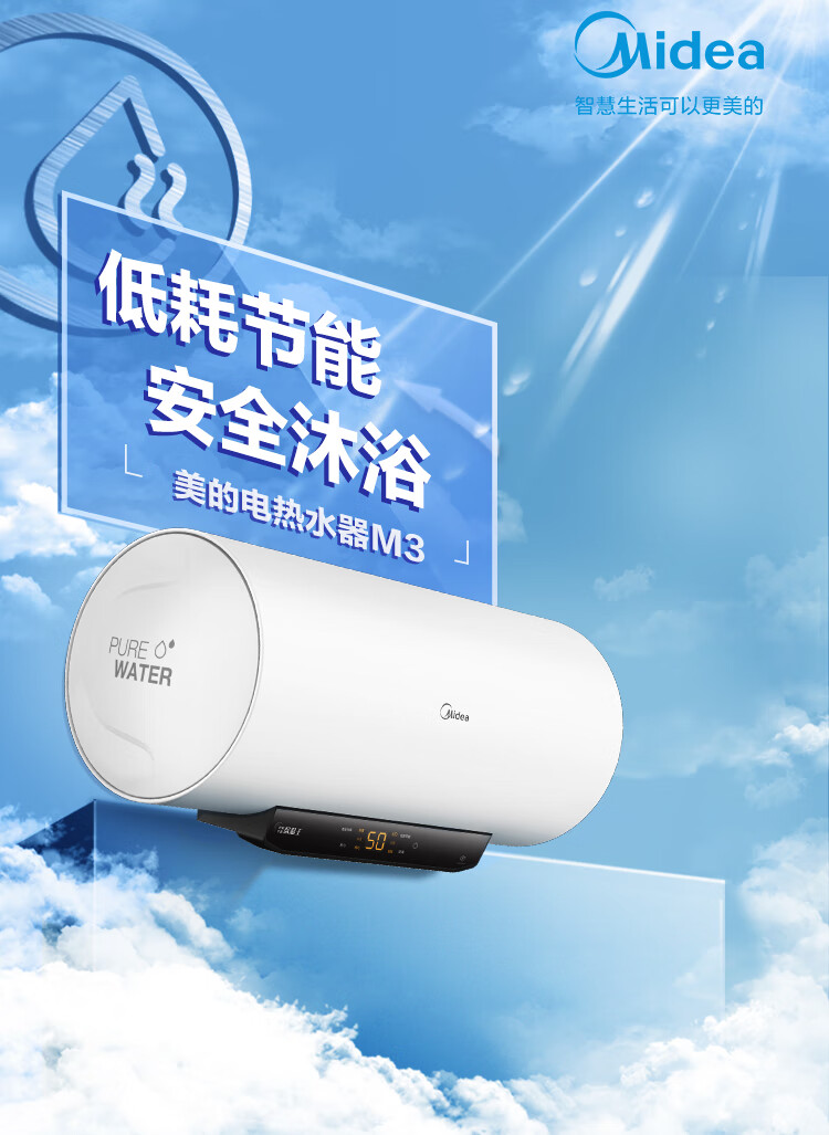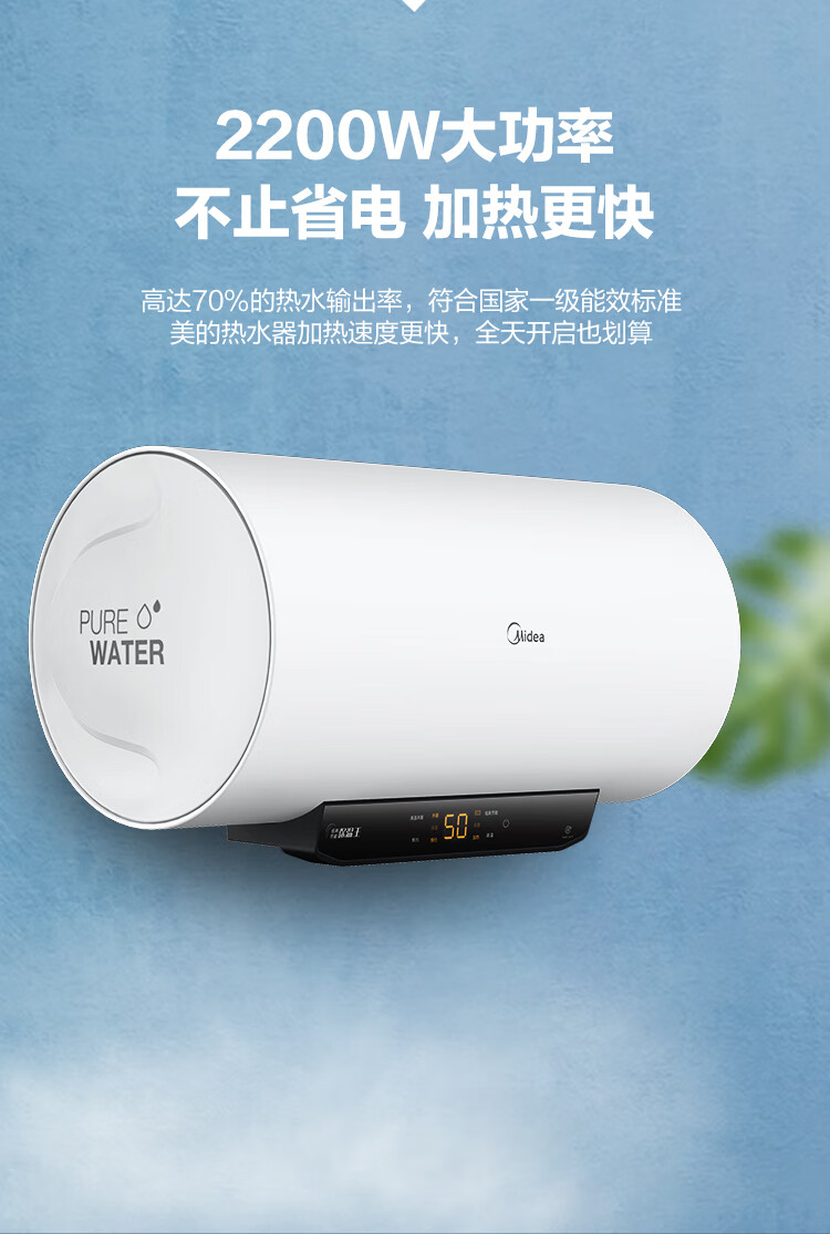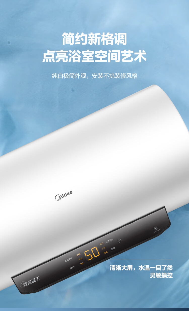 美的(Midea)热水器家用2200W速热可预约低耗节能72小时保温6重安防50升储水式电热水器F5022-M3(H)