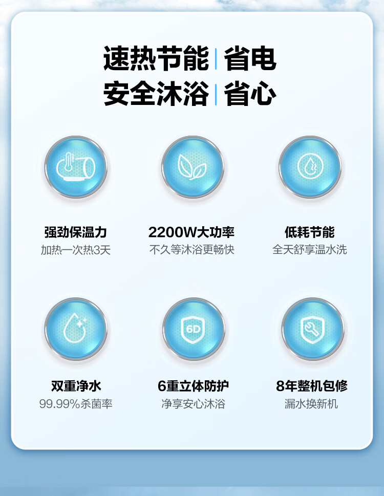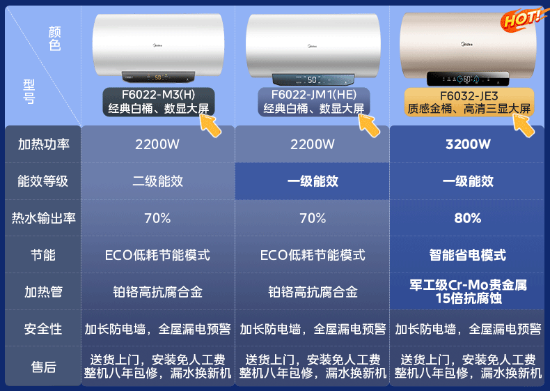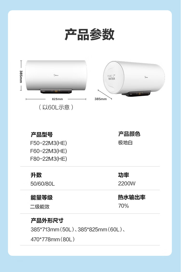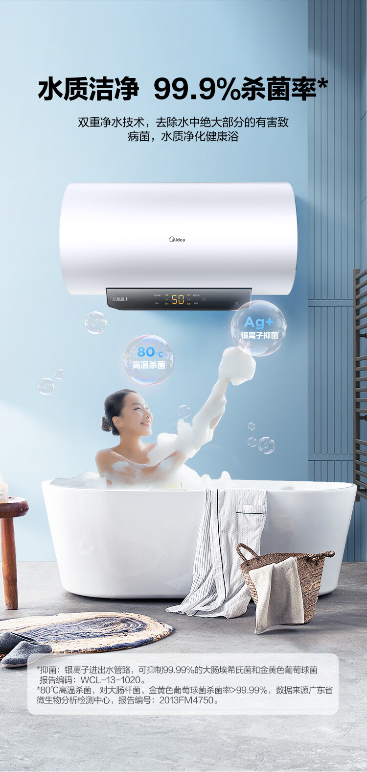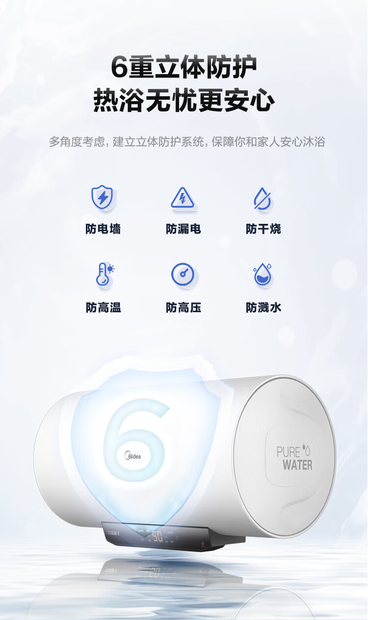 美的(Midea)热水器家用2200W速热可预约低耗节能72小时保温6重安防50升储水式电热水器F5022-M3(H)