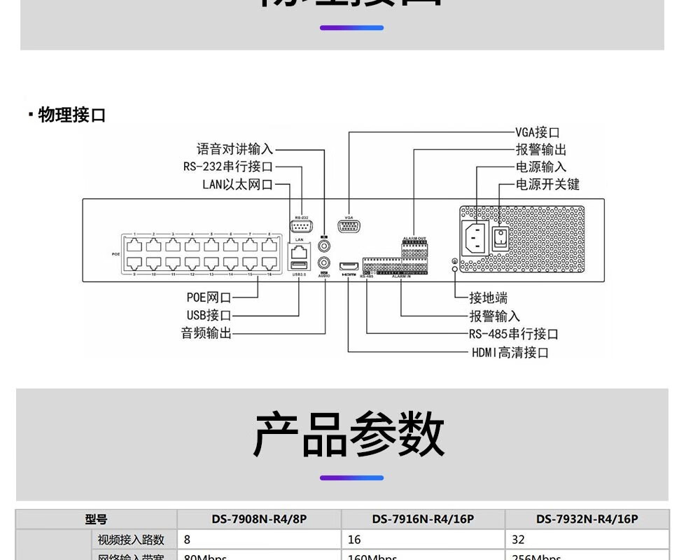 海康威视(HIKVISION)海康威视网络硬盘录像机4盘位监控主机H265支持4K输出800万像素接入
