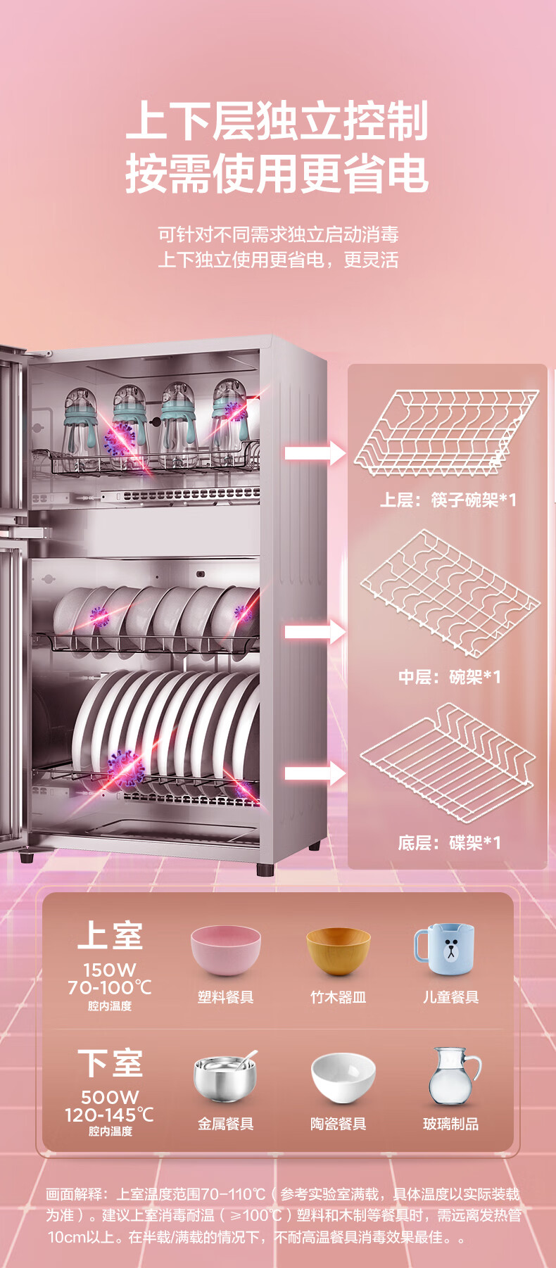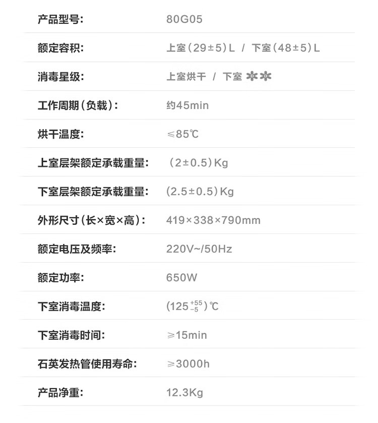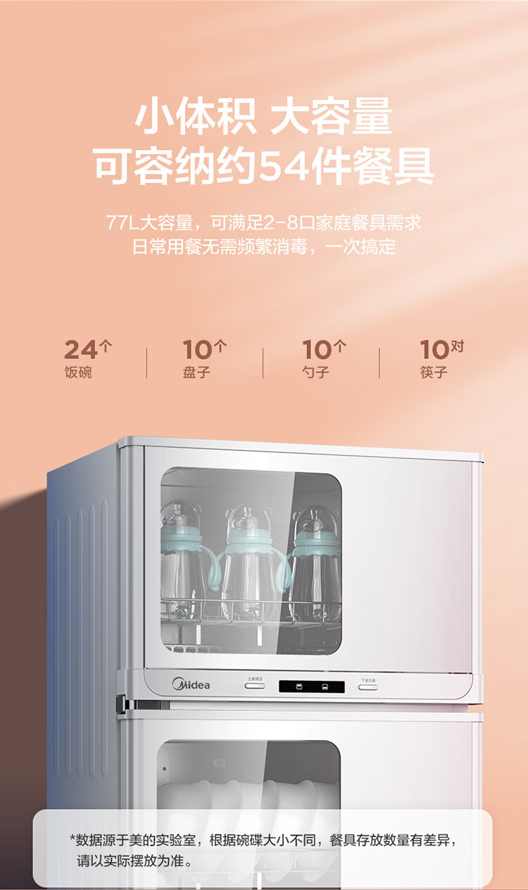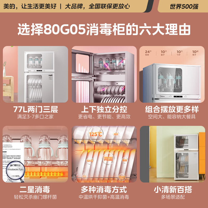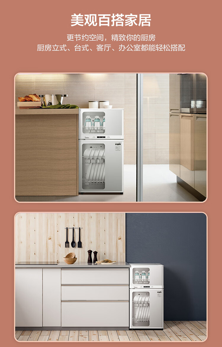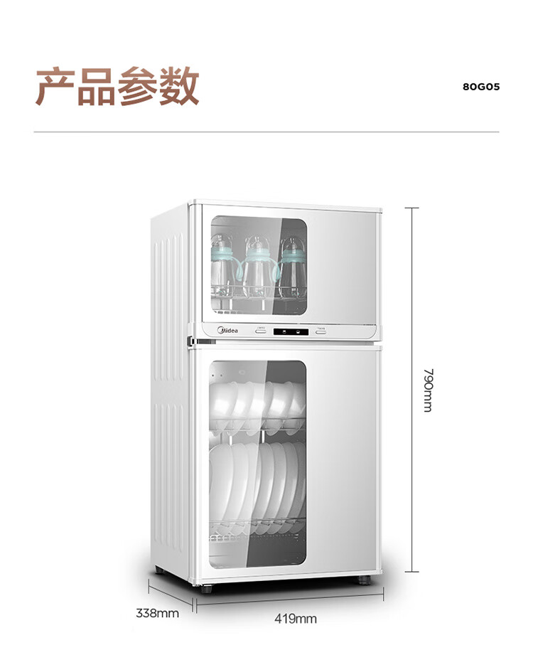 美的(Midea)消毒柜家用 小型立式自营 婴儿奶瓶母婴 高温厨房餐具茶杯碗筷碗柜 二星级 80G05