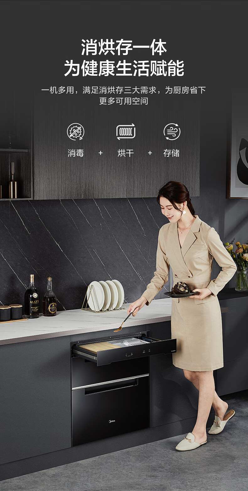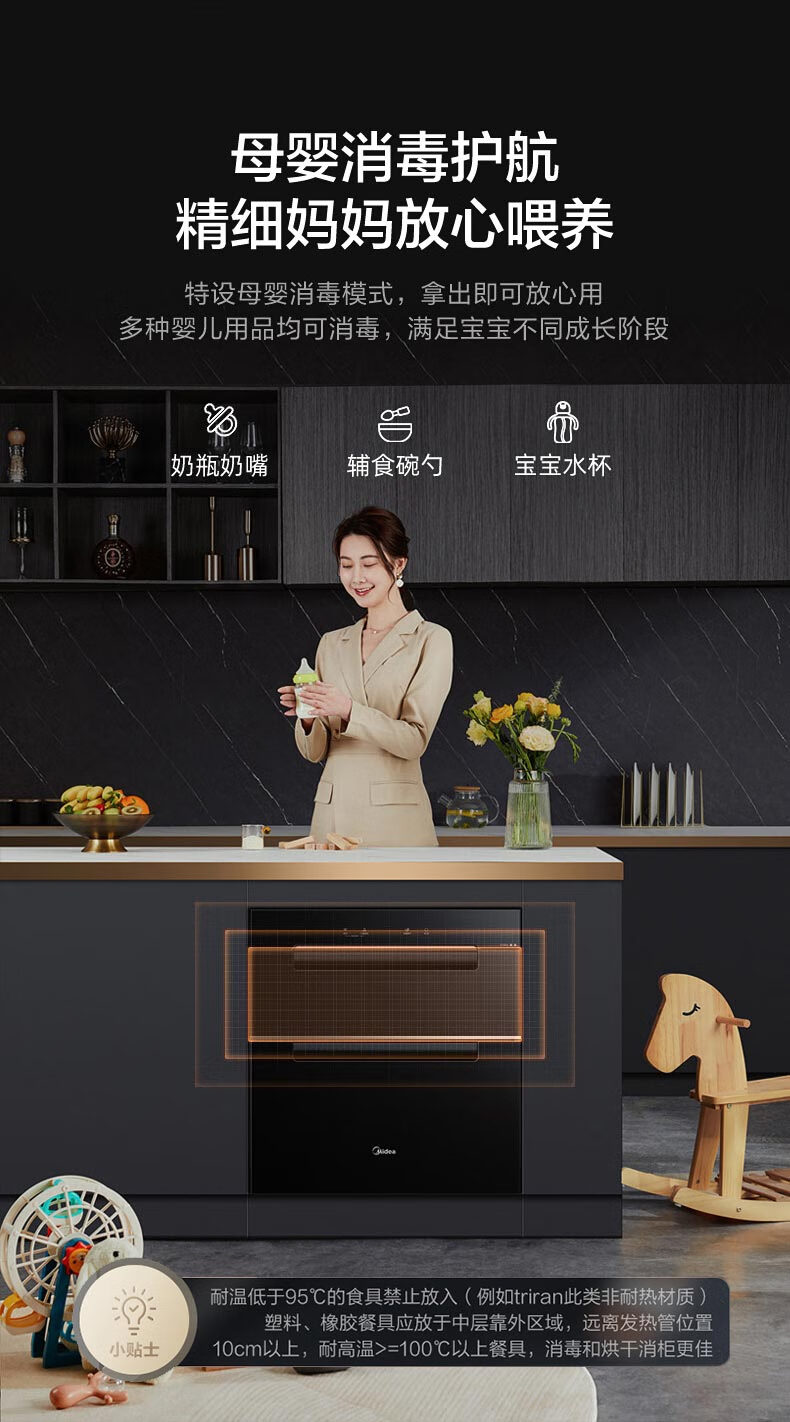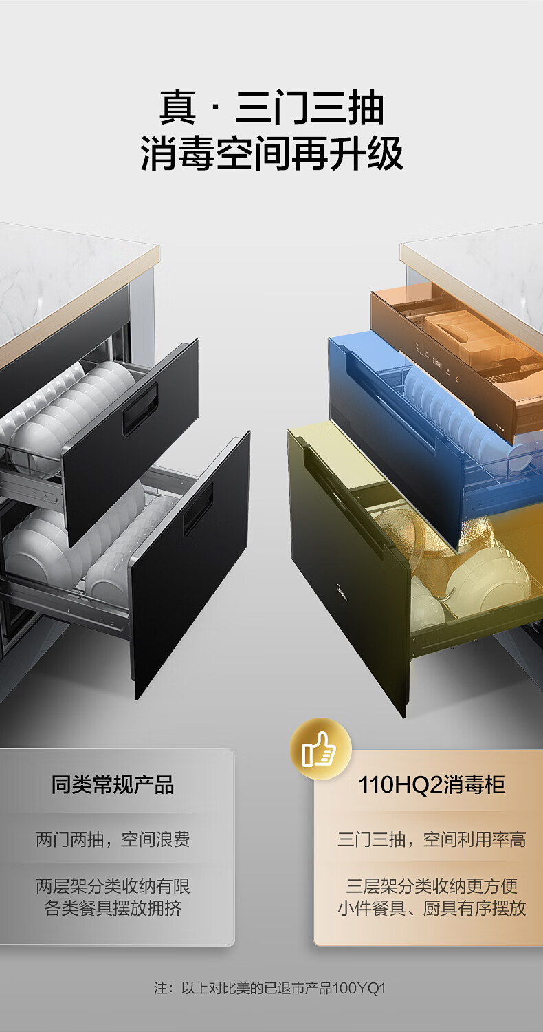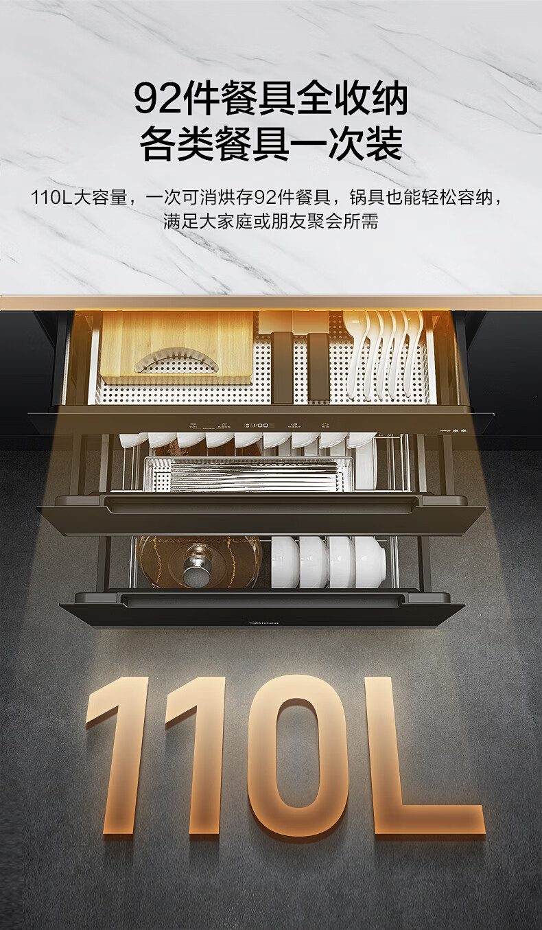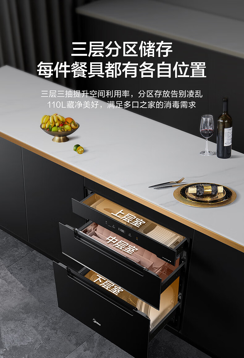 美的(Midea)110L三层 消毒柜嵌入式小型一体 家用紫外线 厨房餐具碗筷婴儿奶瓶 不锈钢 碗柜 110HQ2 母婴
