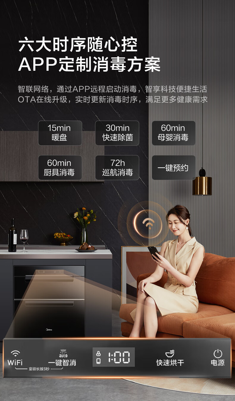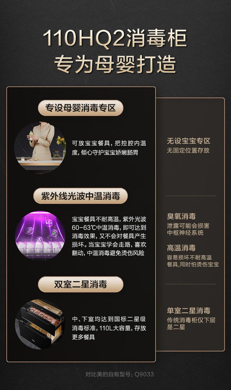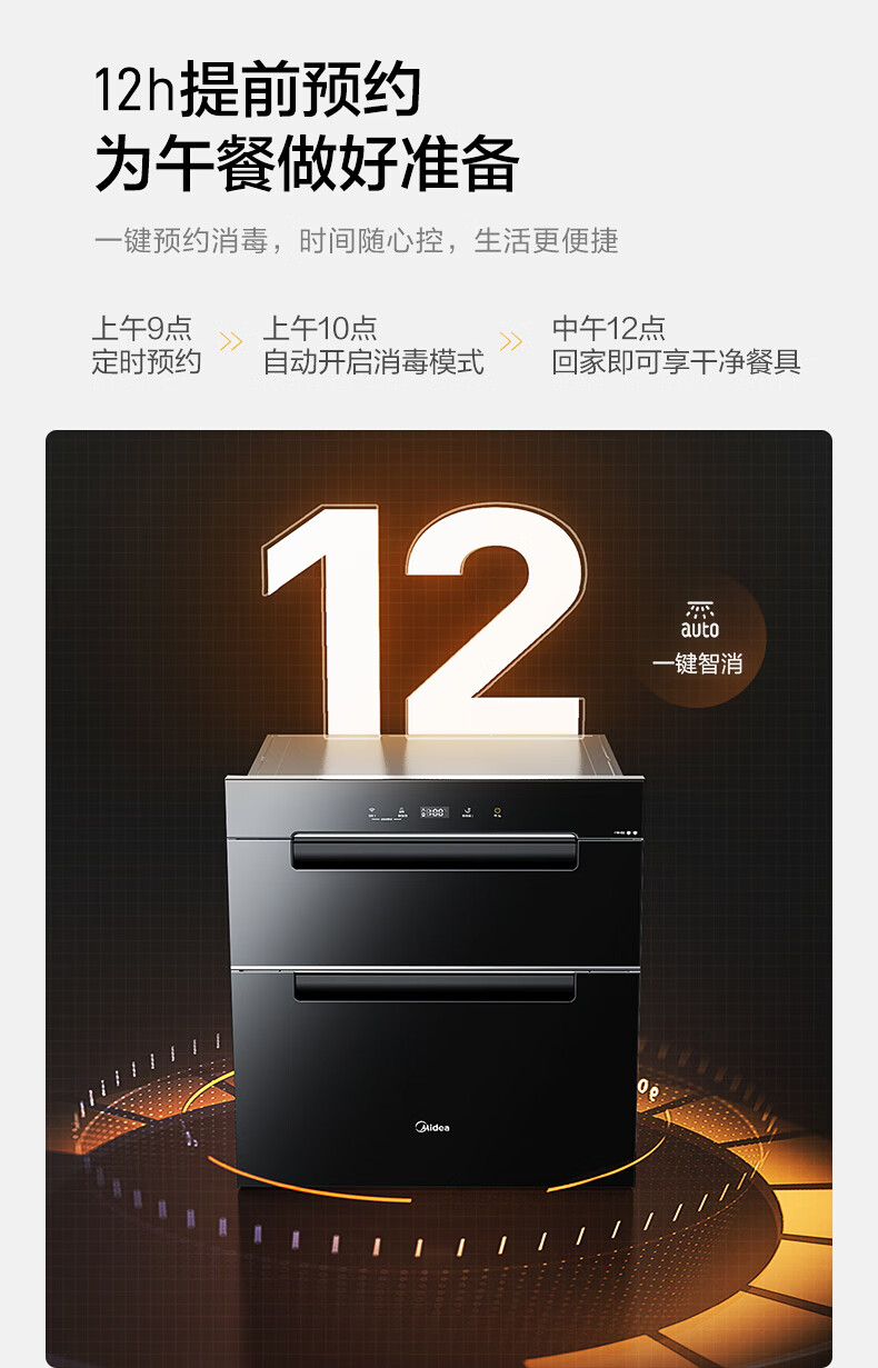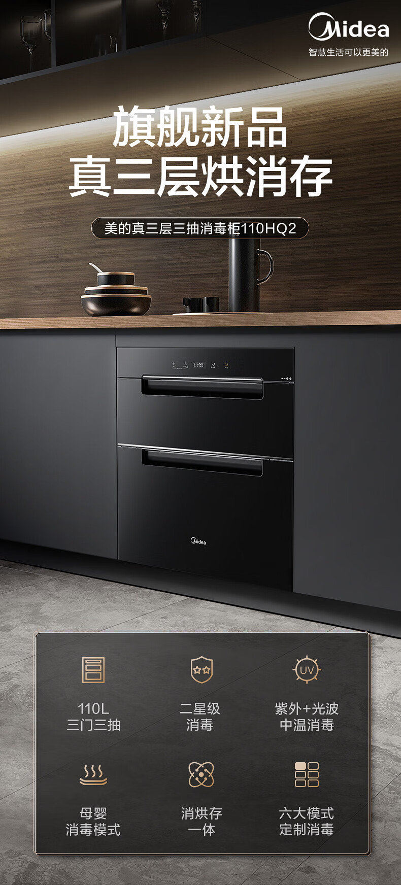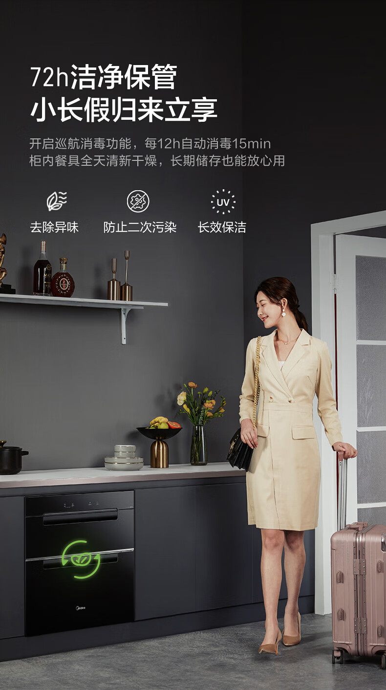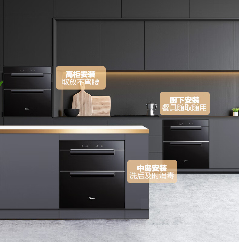 美的(Midea)110L三层 消毒柜嵌入式小型一体 家用紫外线 厨房餐具碗筷婴儿奶瓶 不锈钢 碗柜 110HQ2 母婴