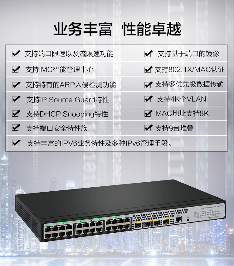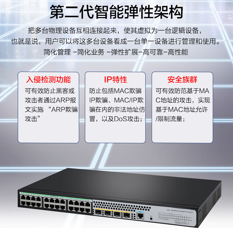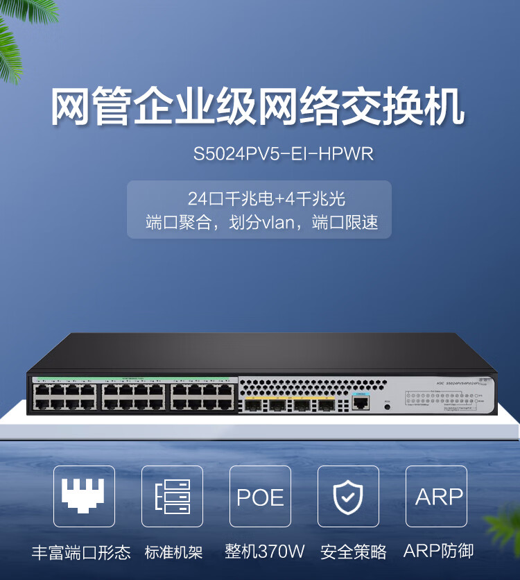 海康威视(HIKVISION))24千兆POE交换机即插即用网络监控分线器 S5024PV5-EI-HPWR