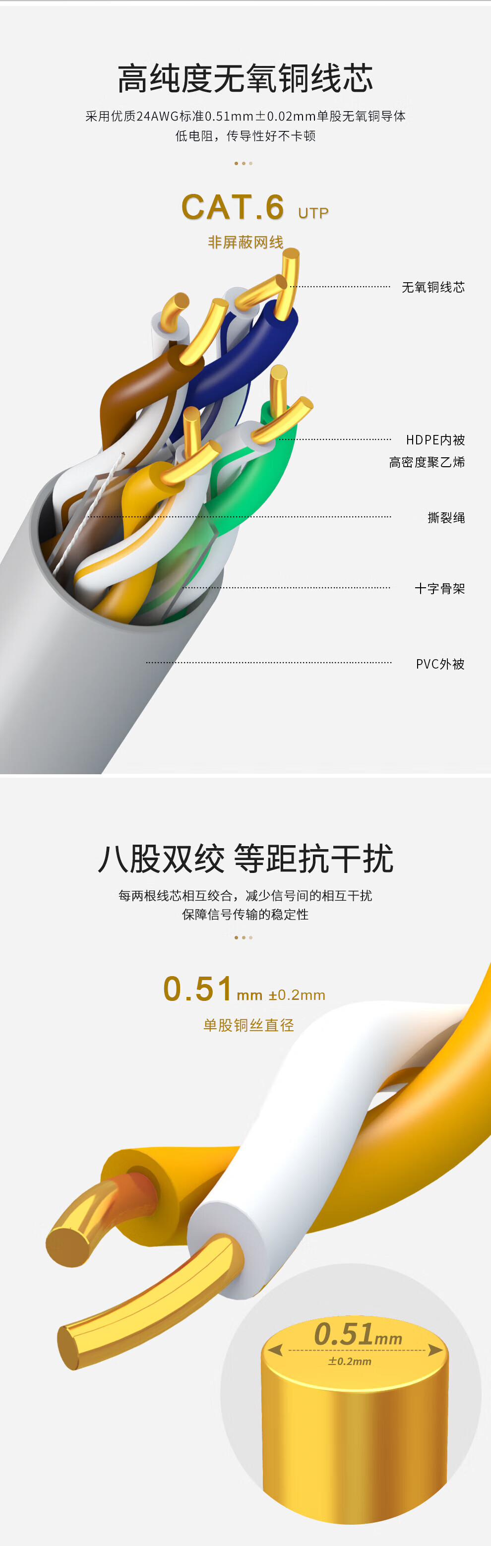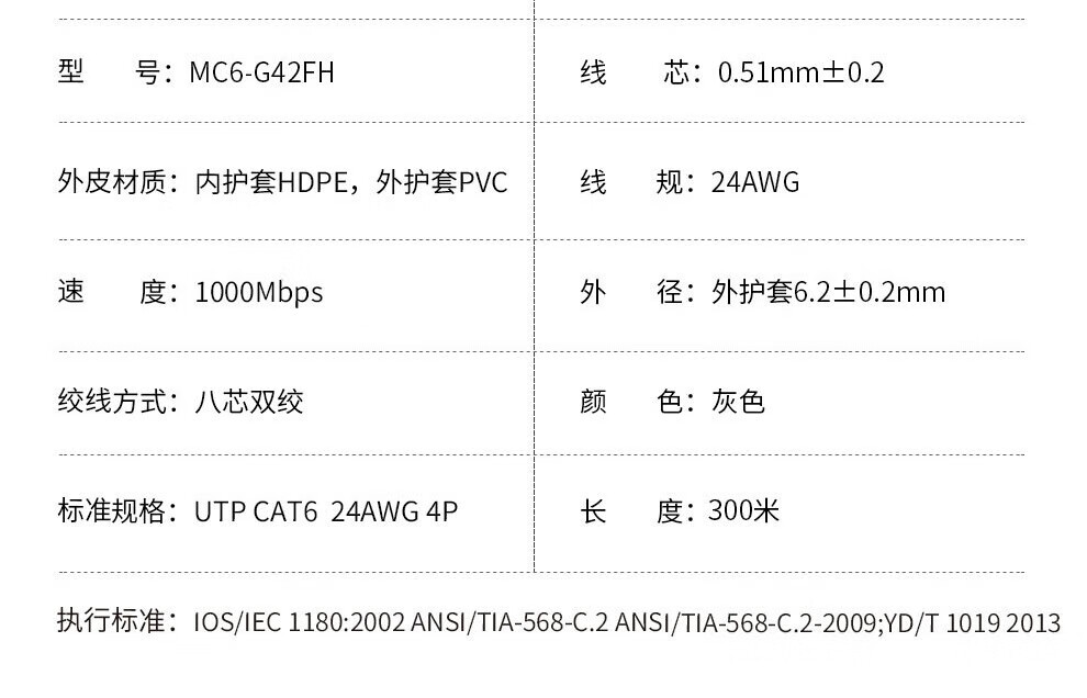 伯朗西蒙(BRUNSMEN)六类网线 CAT6类非屏蔽0.51mm 家装商用无氧铜箱线300米 网络监控布线 MC6-G42FH
