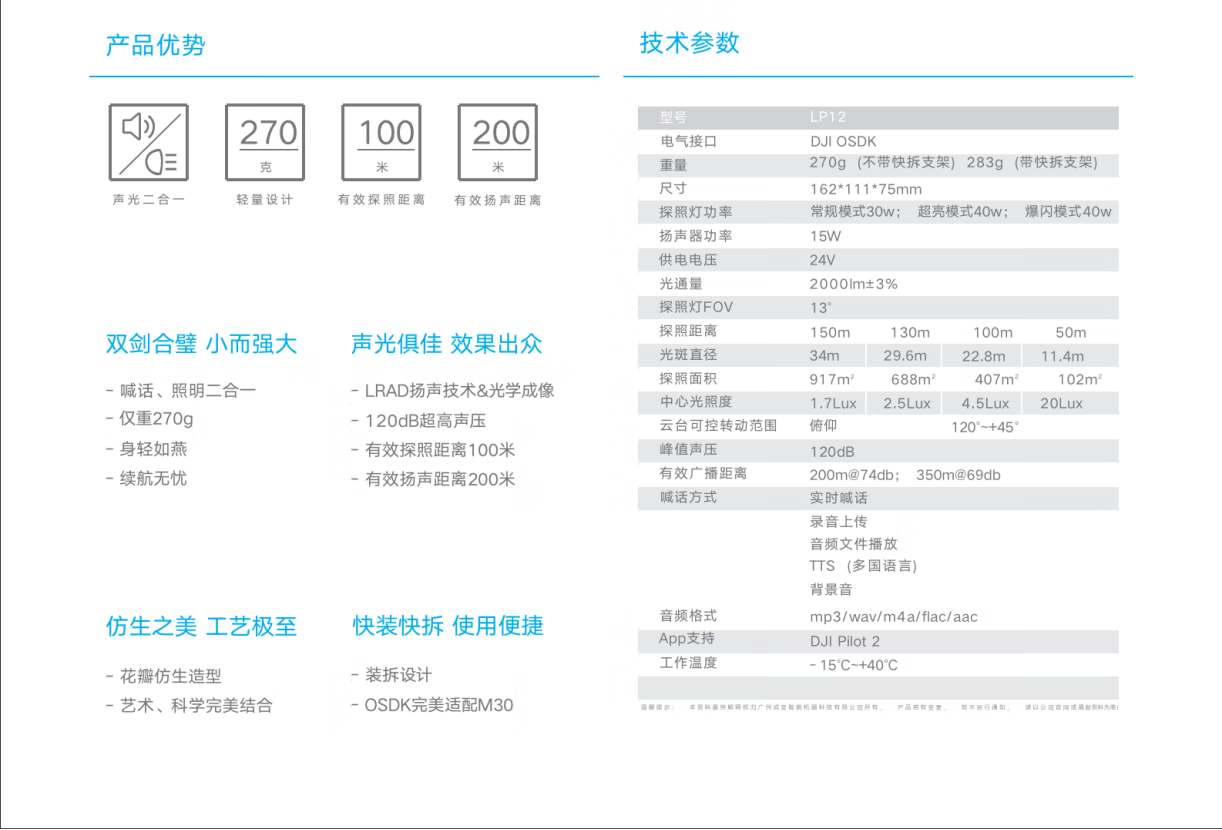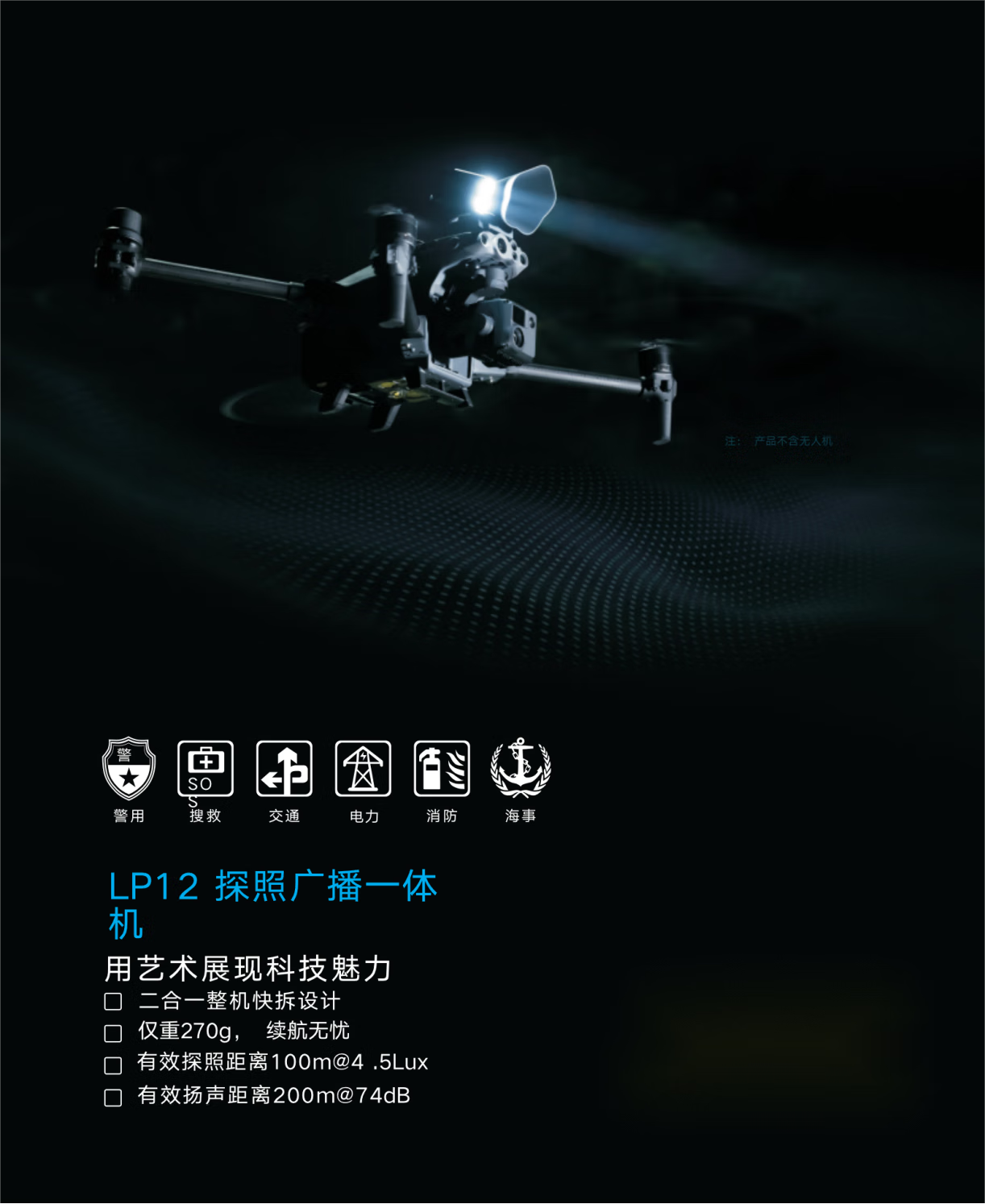 DJI适用大疆成至智能 LP12探照广播一体机 扩音器喊话器